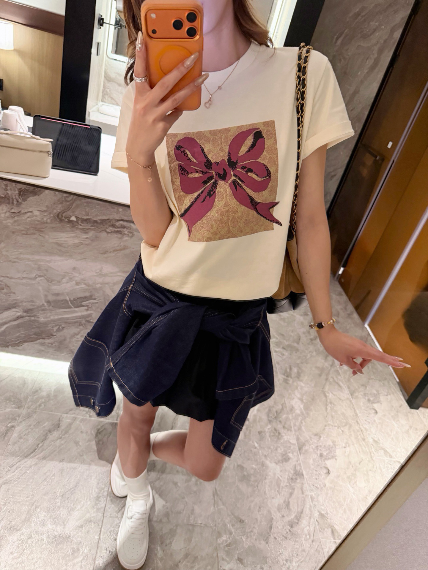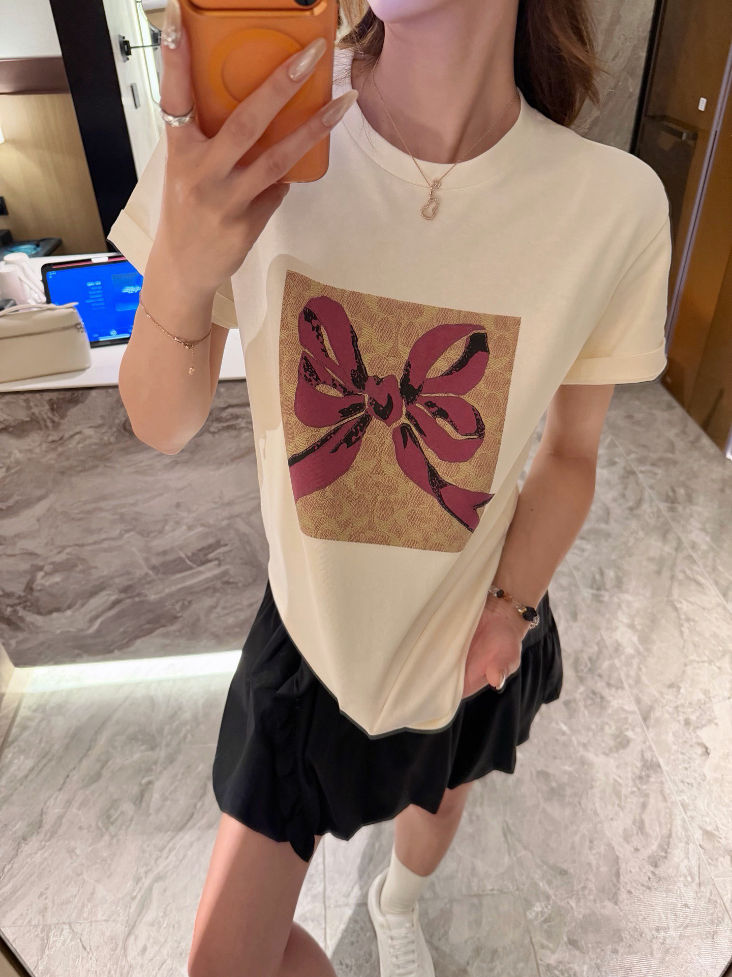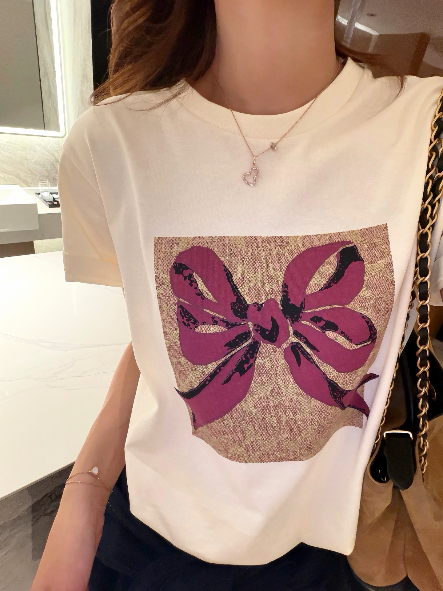 🔺 蝴蝶结T模特图➕尺码表🔻🔻模特170 108斤 试穿M号效果👇🏻