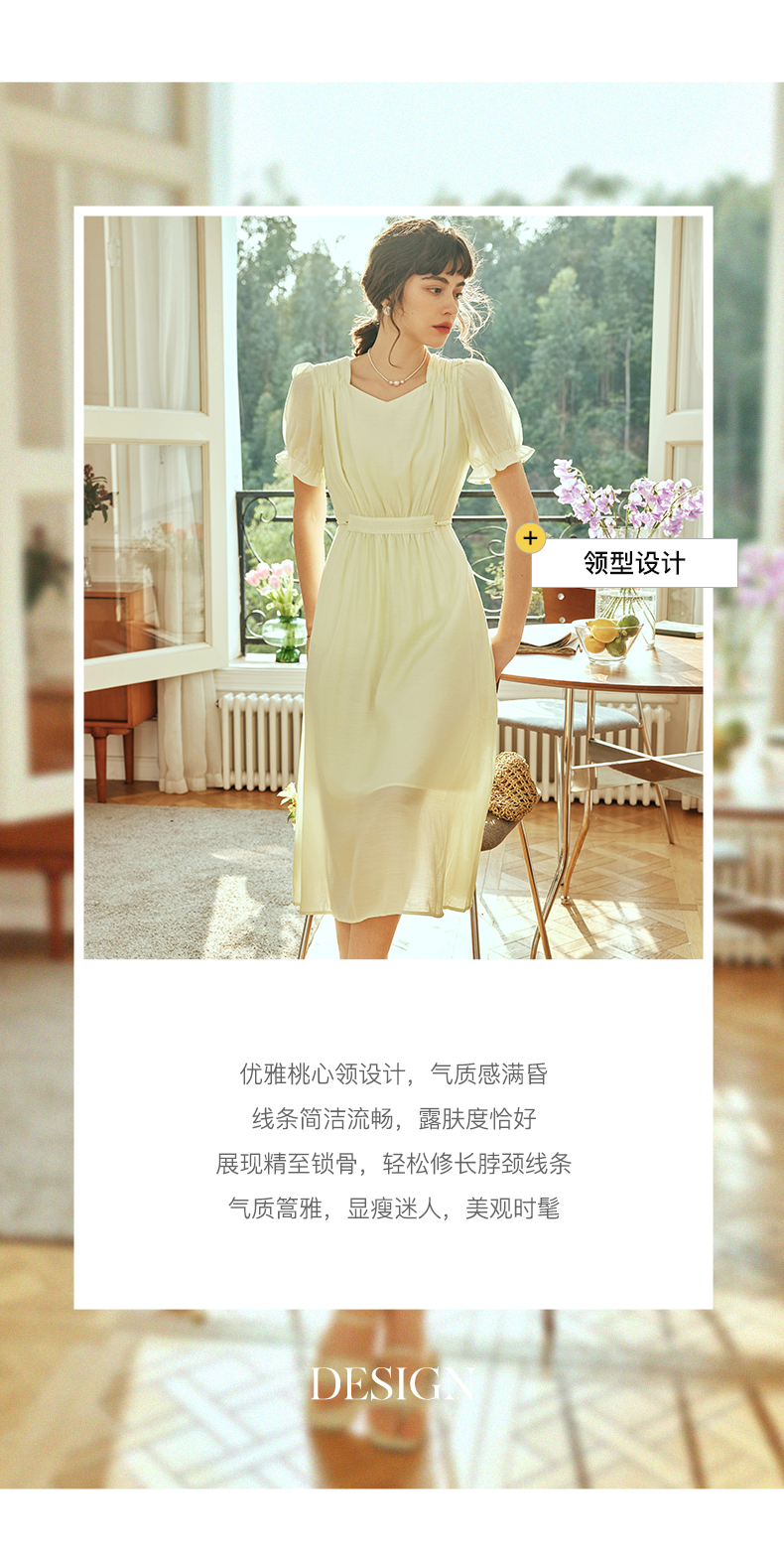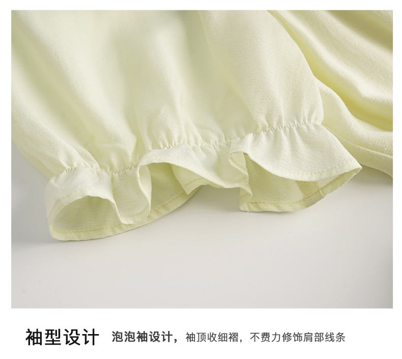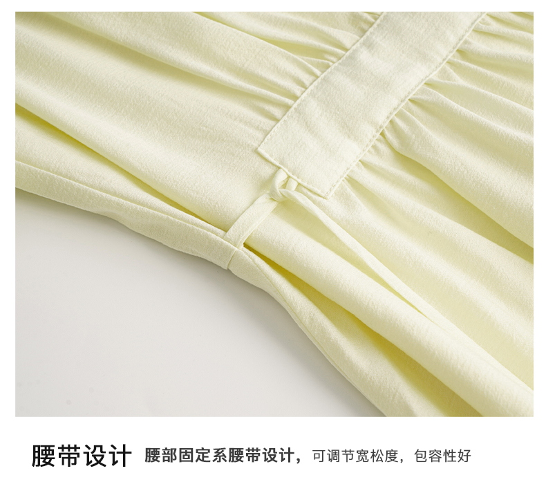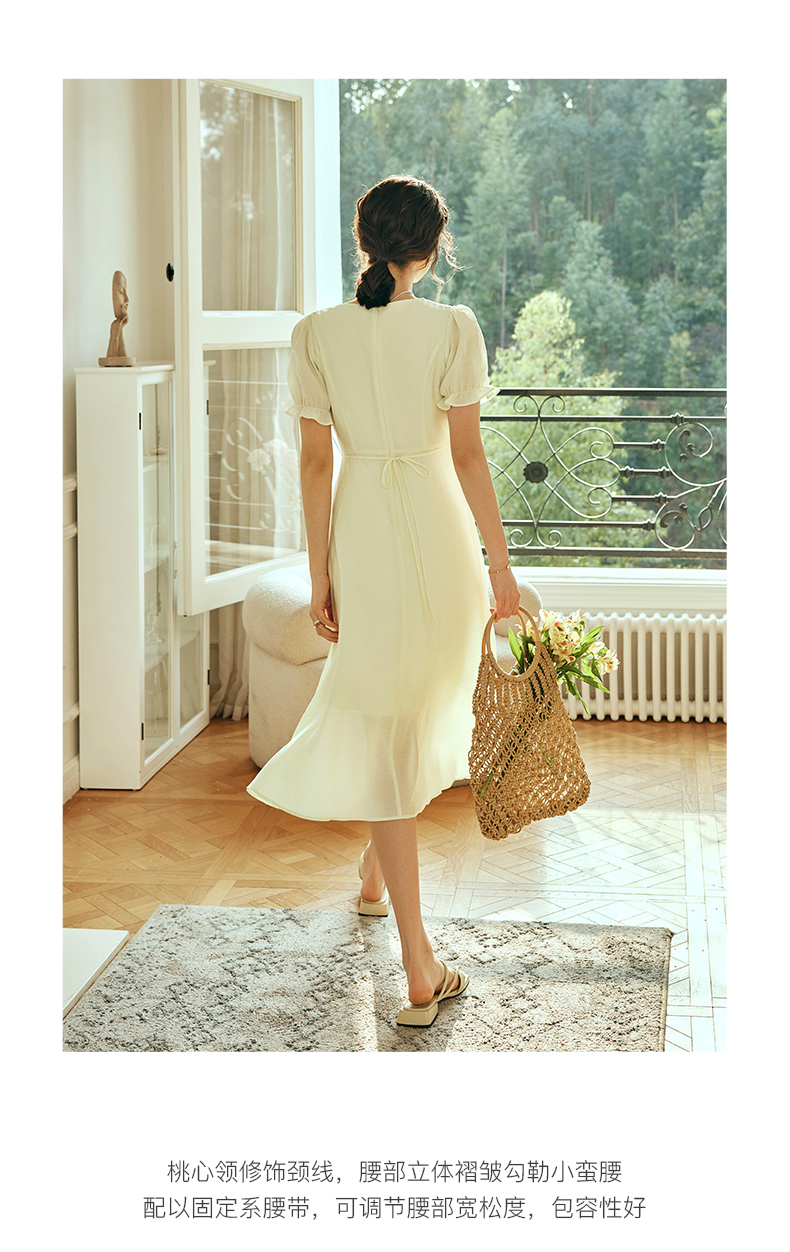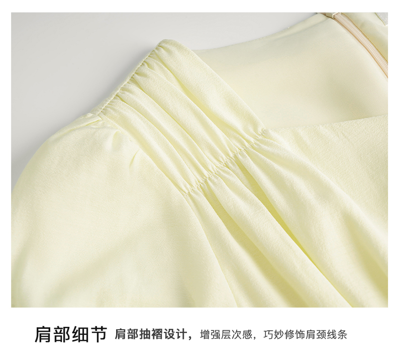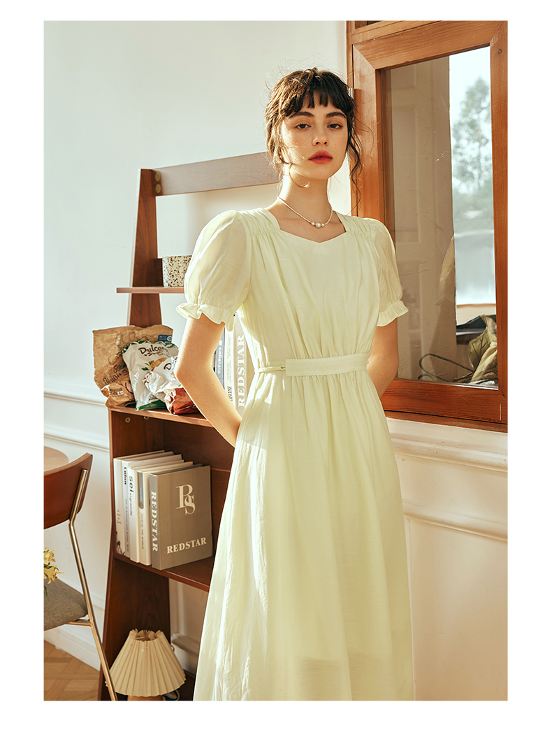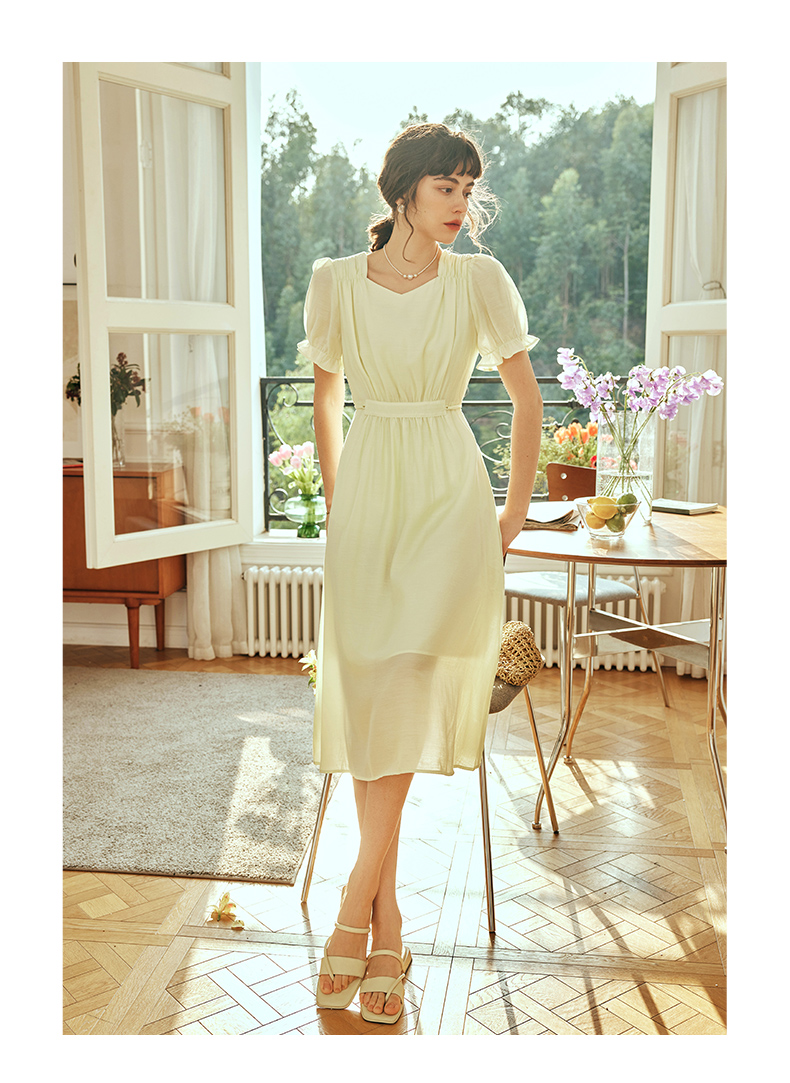 OLrain欧芮儿法式浅黄色连衣裙女夏季2023年新款收腰泡泡袖茶歇裙