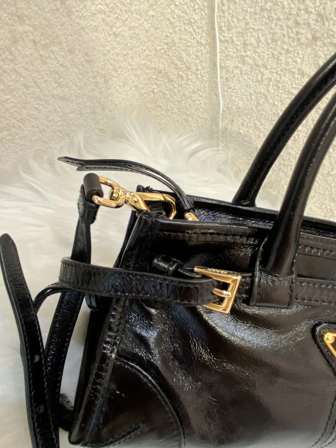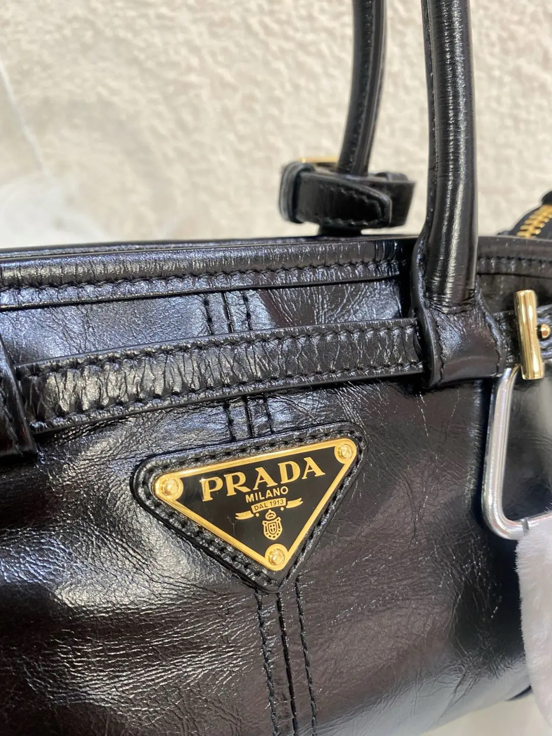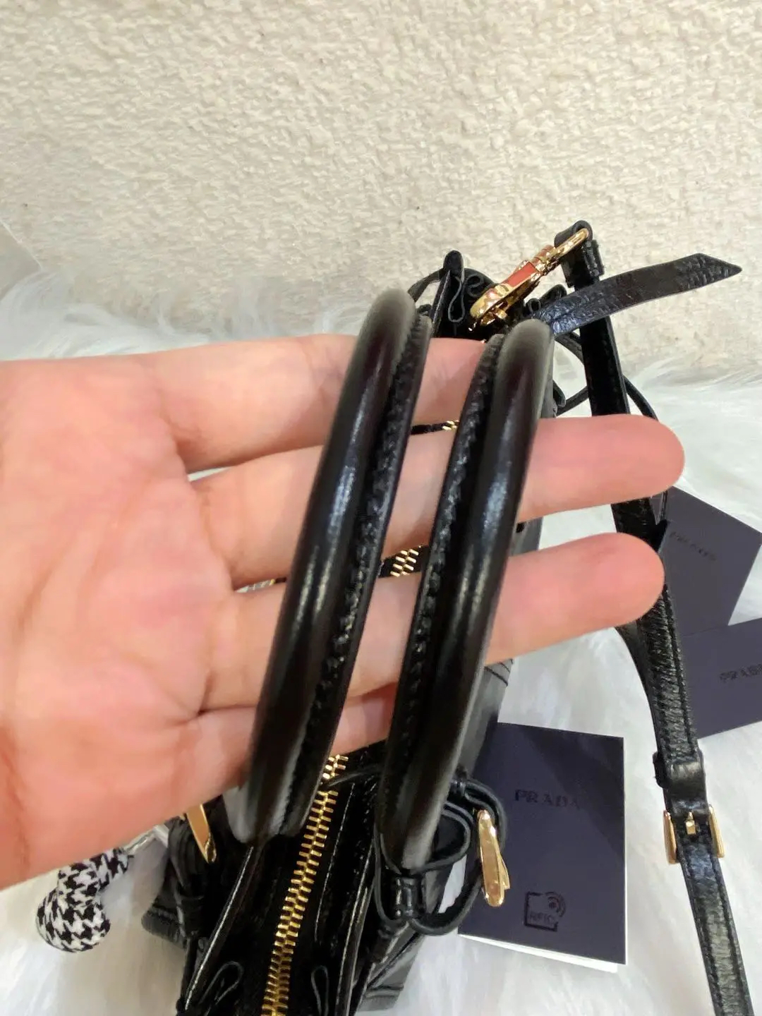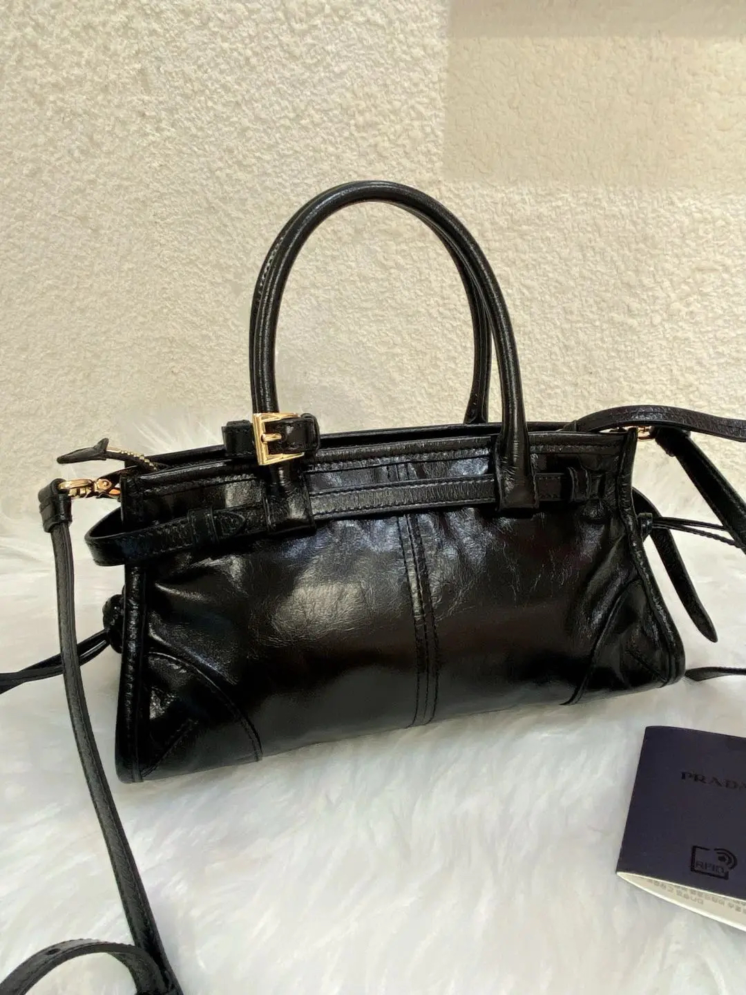 Prada Bonnie mini 黑金油蜡牛皮 斜挎包