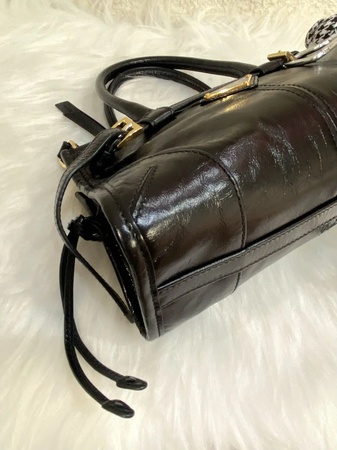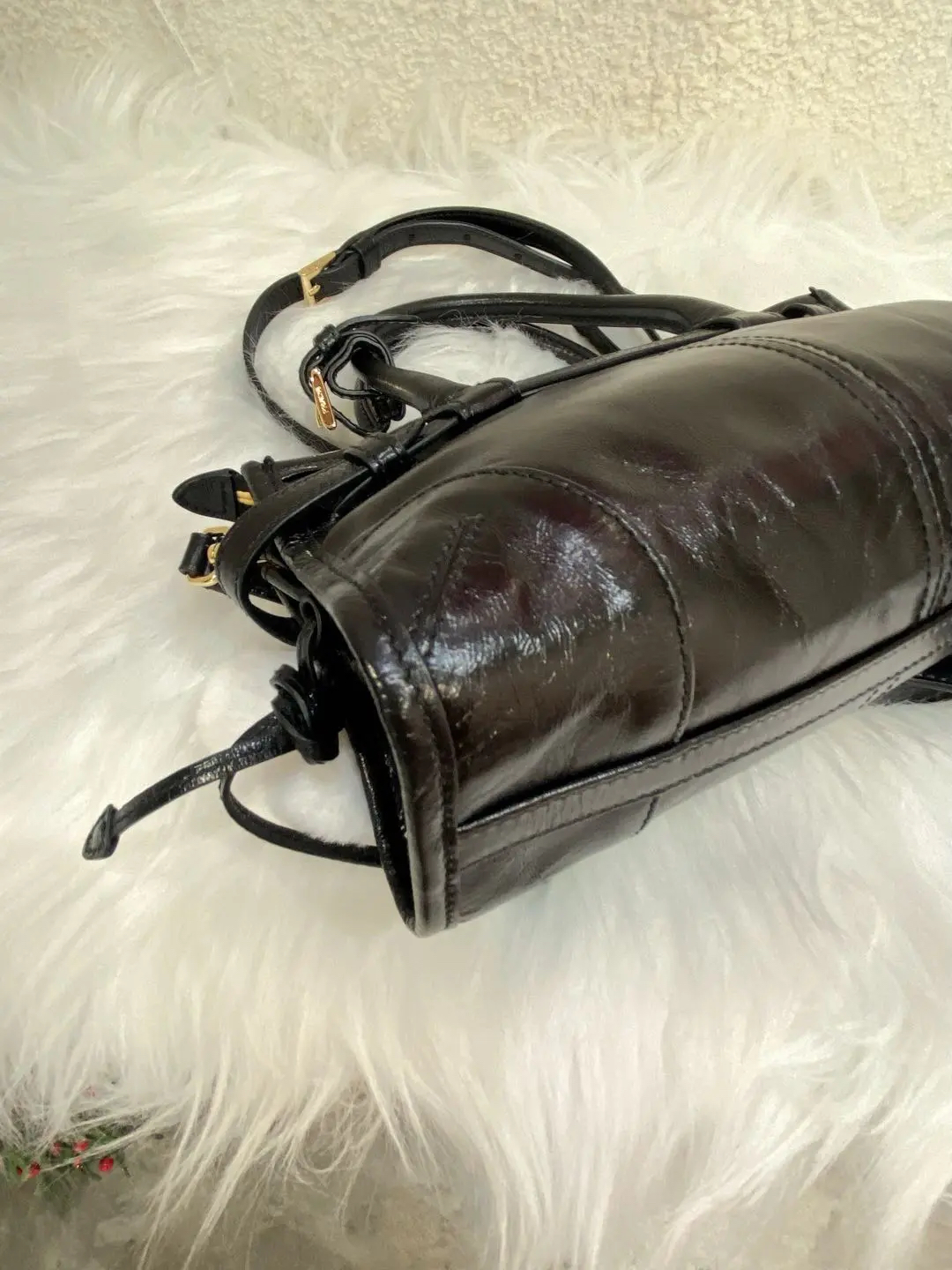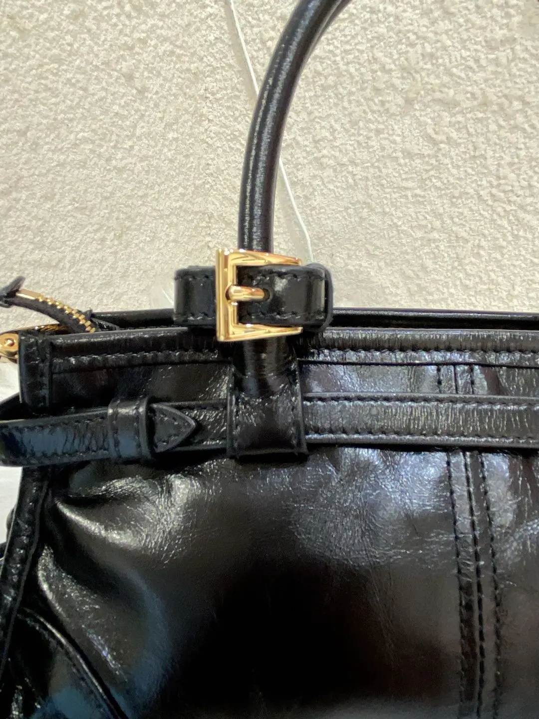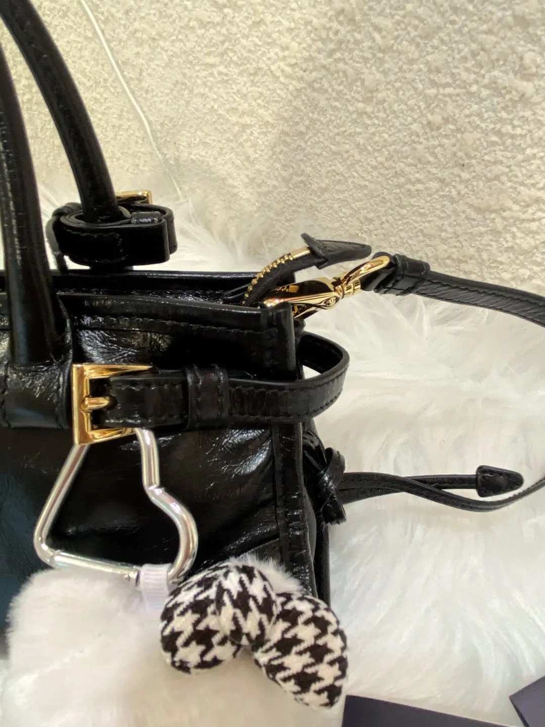 Prada Bonnie mini 黑金油蜡牛皮 斜挎包