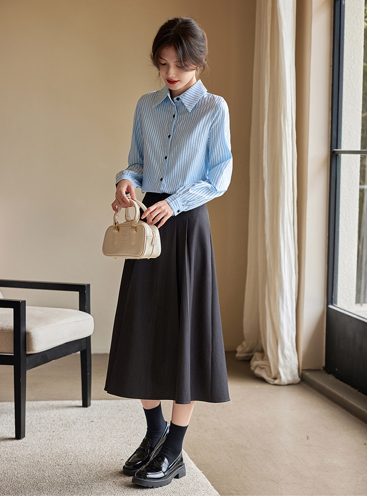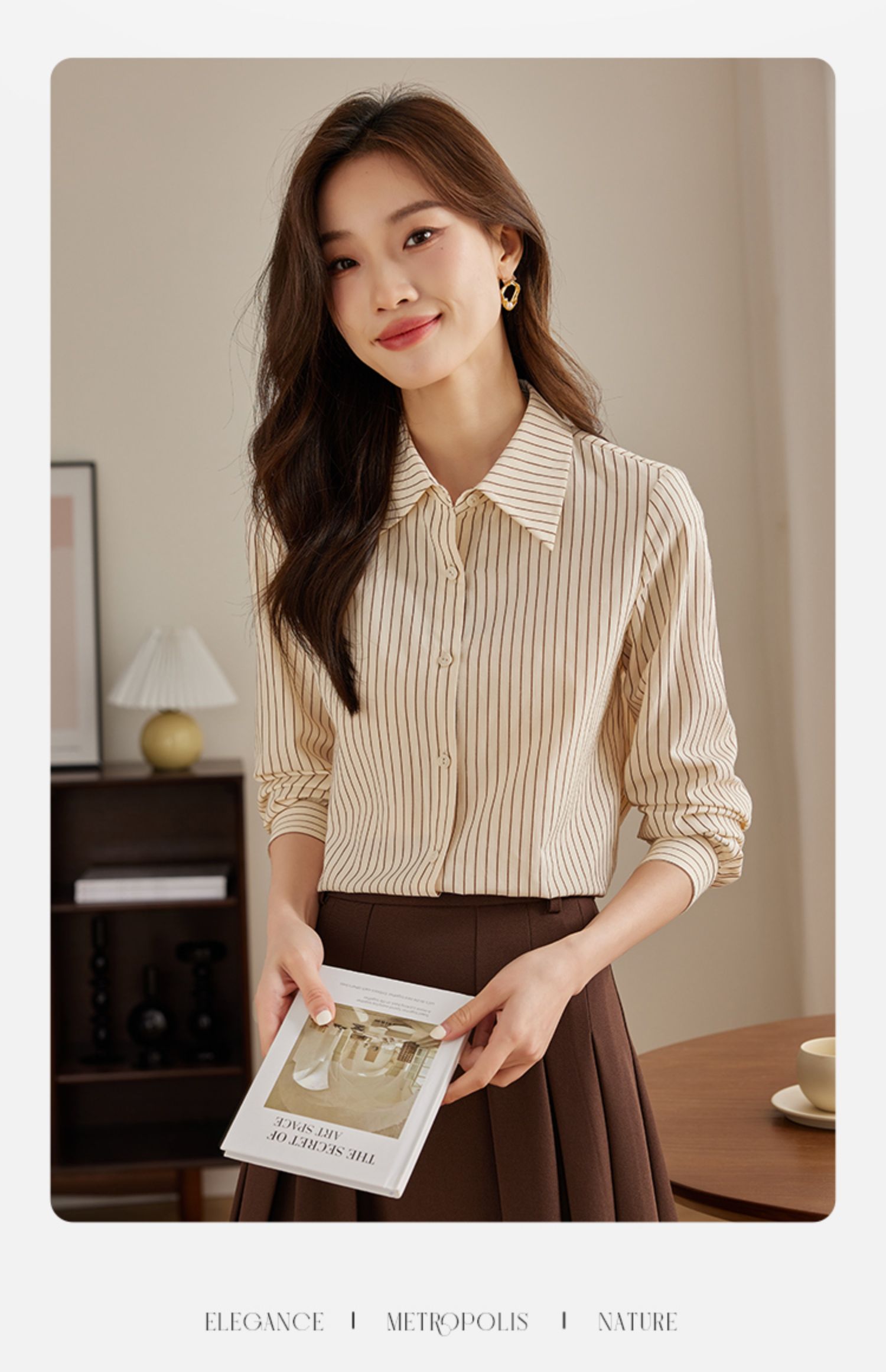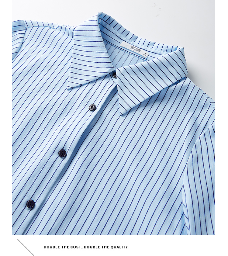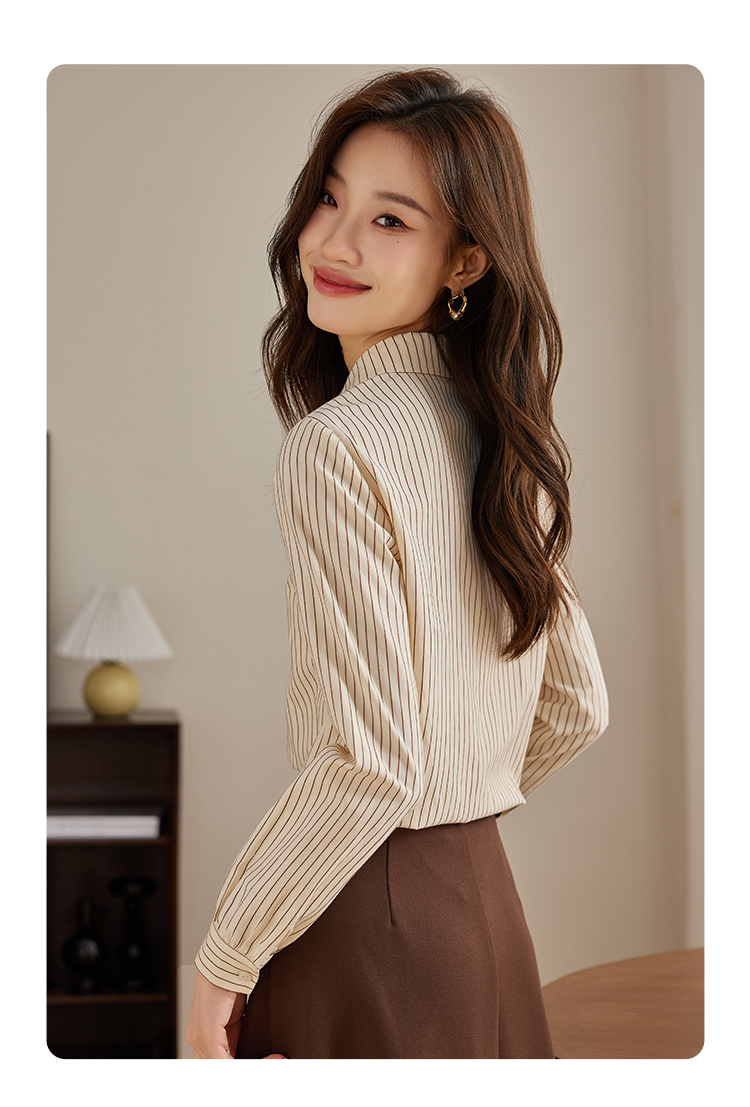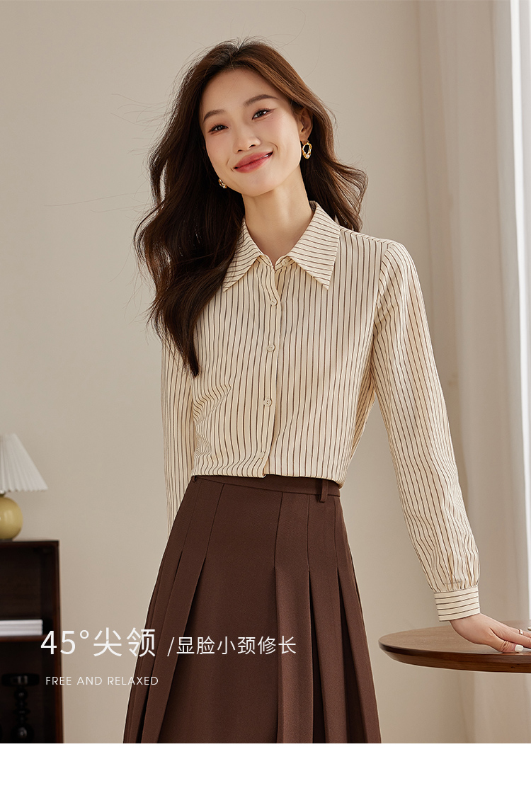 【专属特价】熙世界设计感蓝色竖条纹衬衫女春秋2025年新款法式通勤长袖气质衬衣
