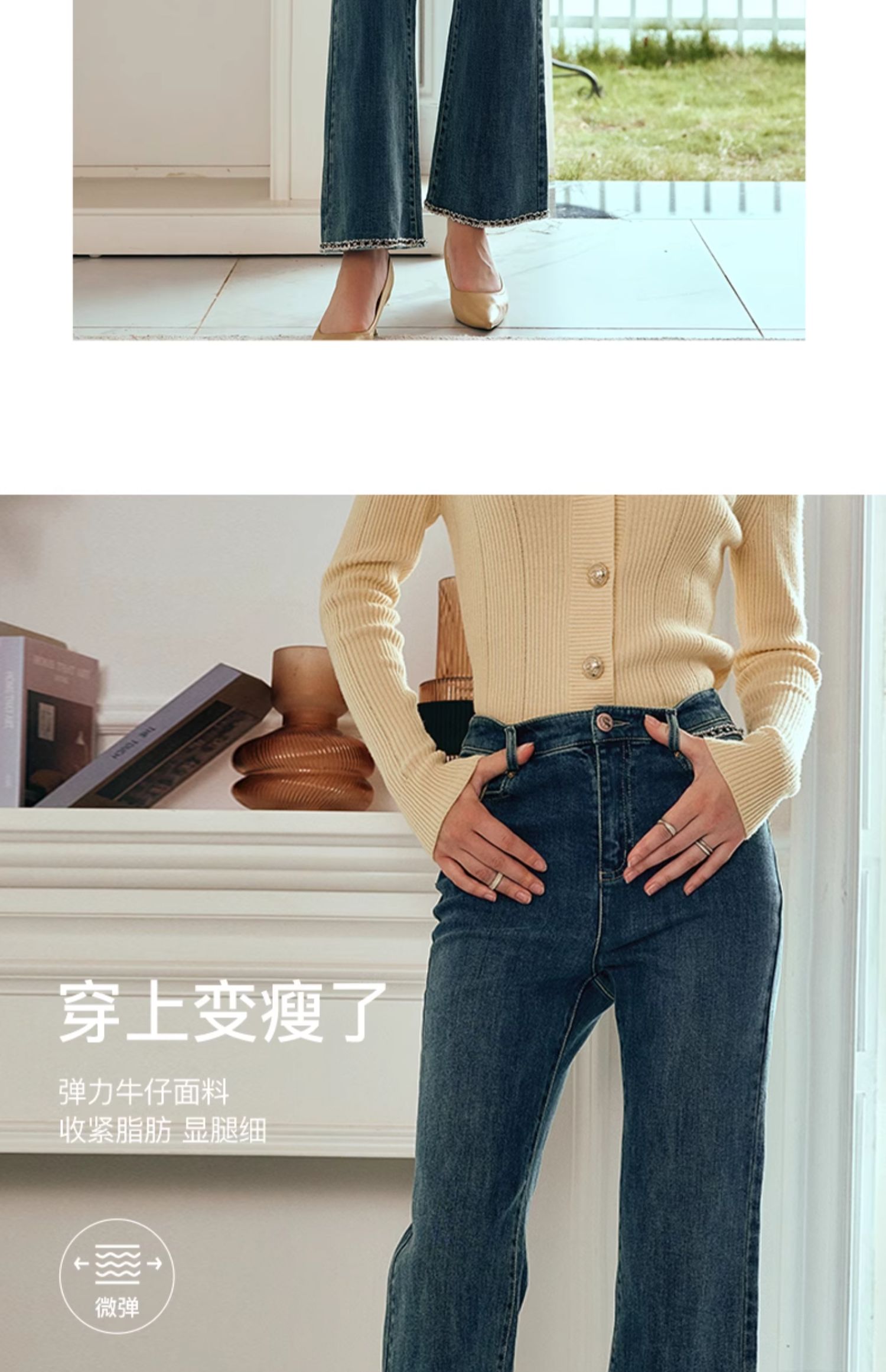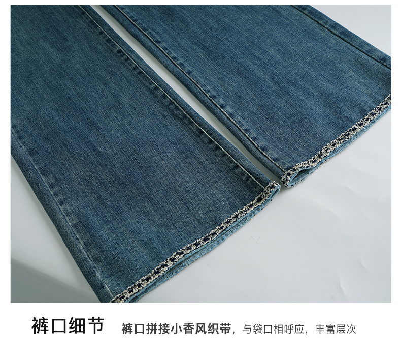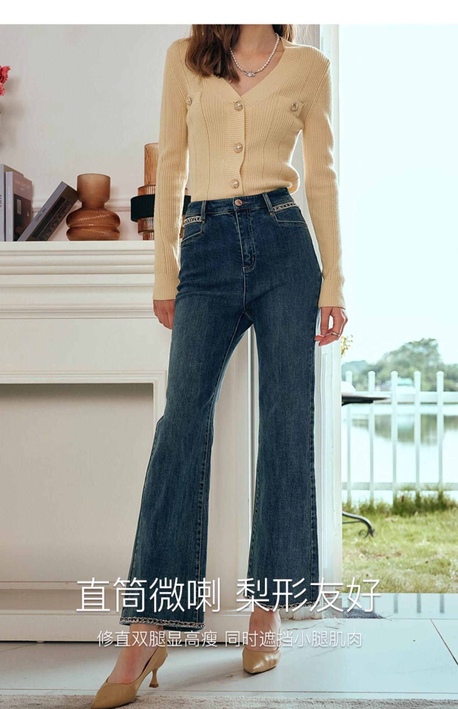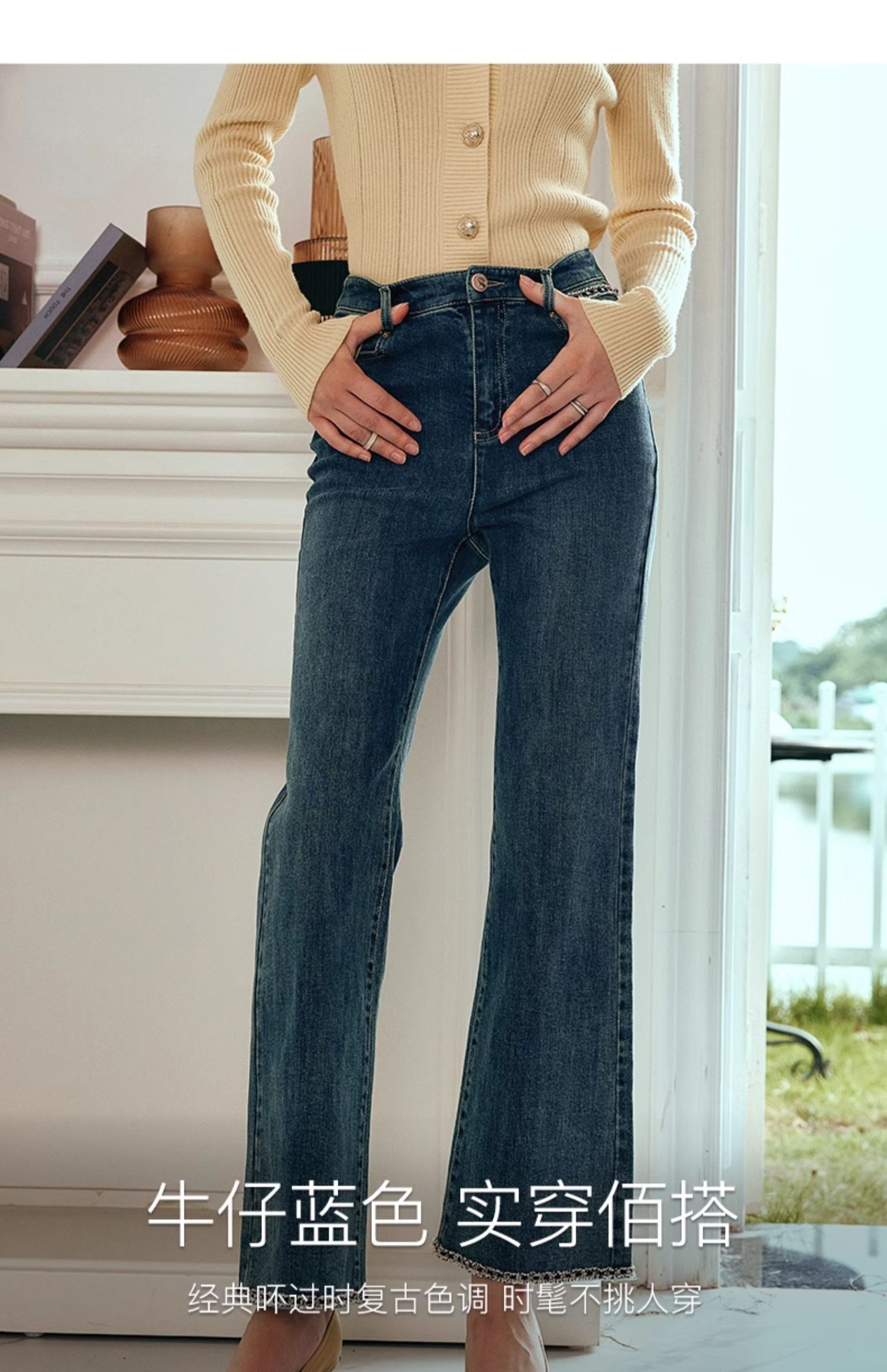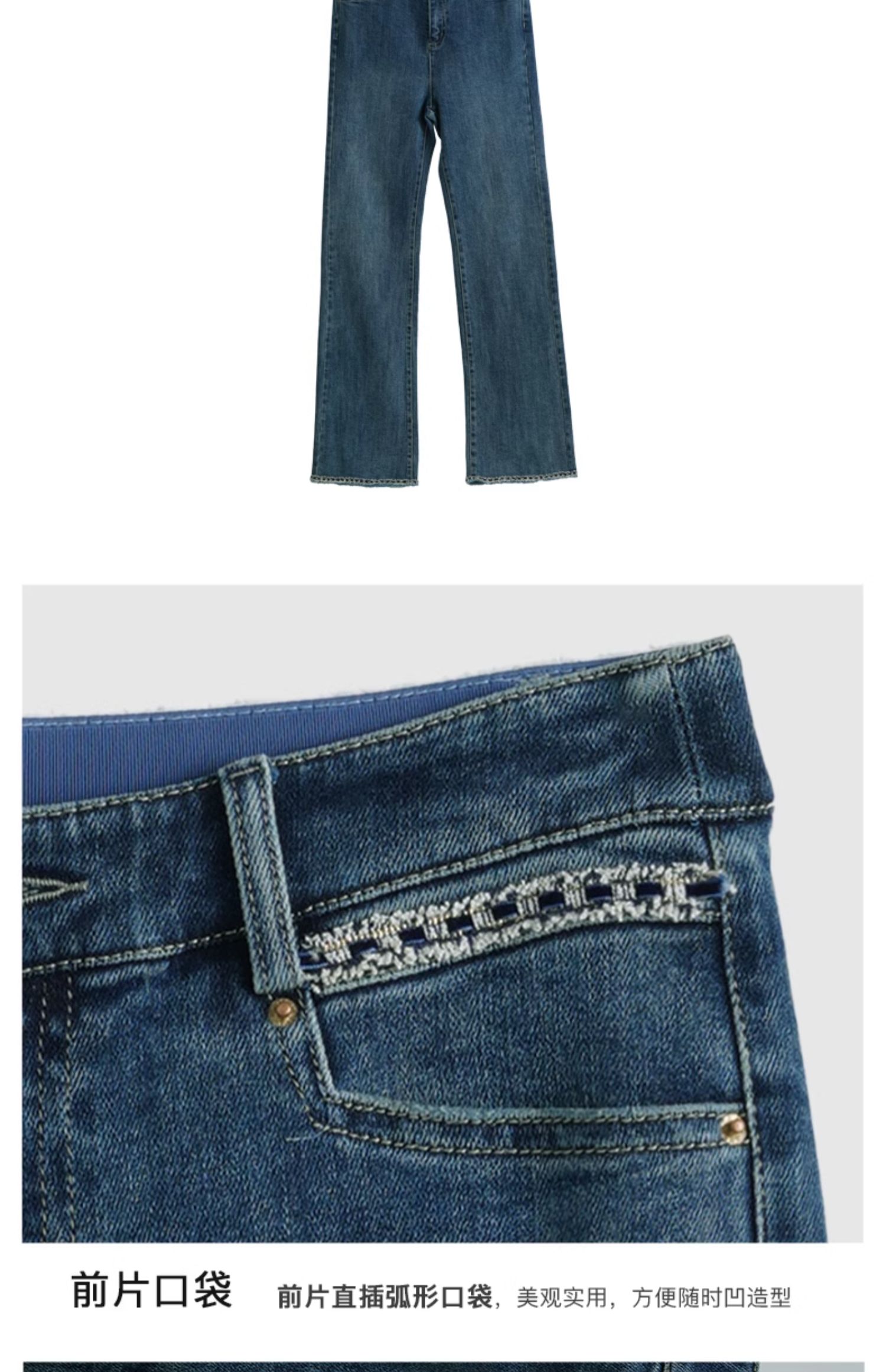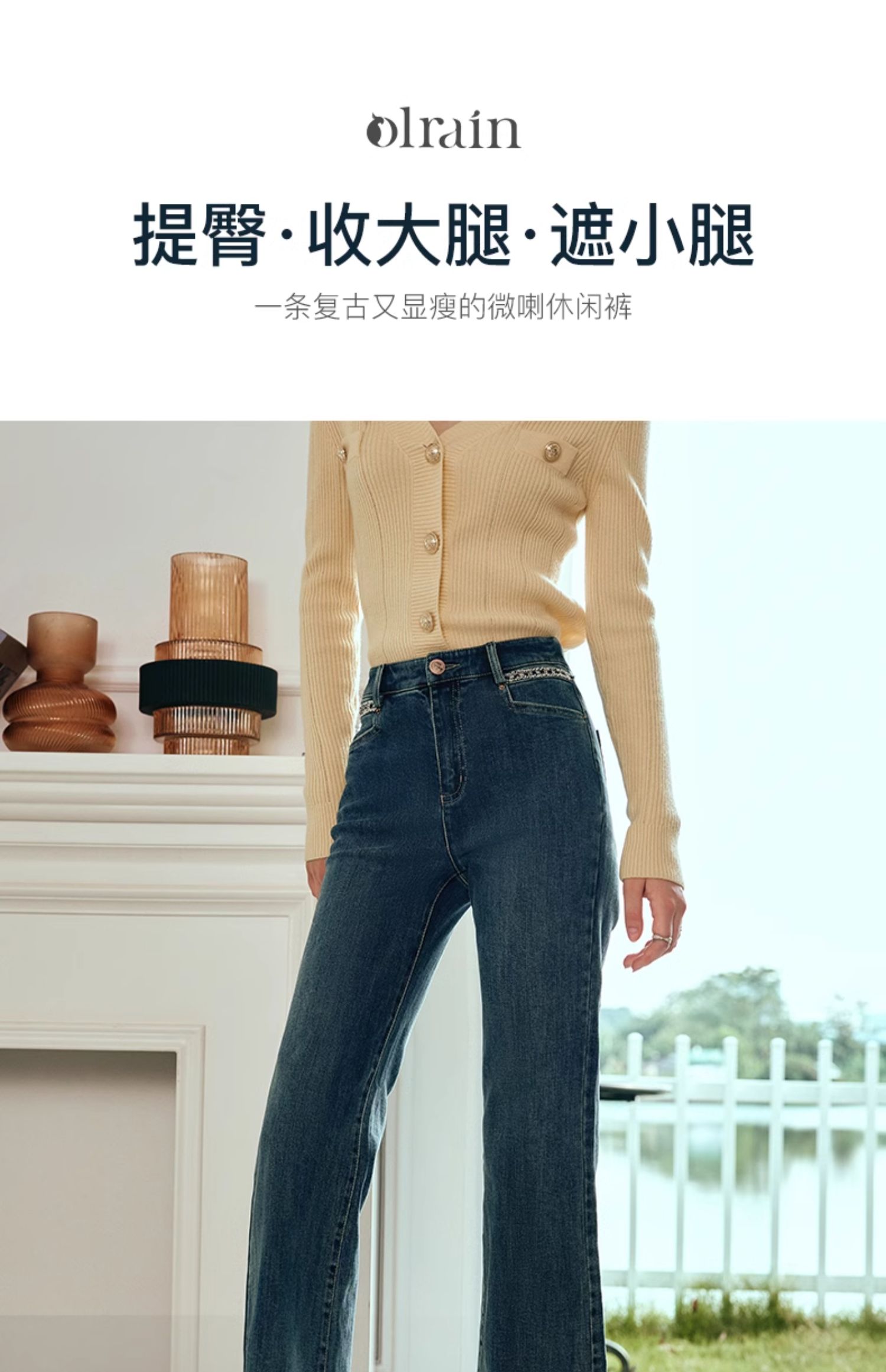 OLrain欧芮儿蓝色微喇牛仔裤女早春2024新款高腰显瘦百搭水洗长裤