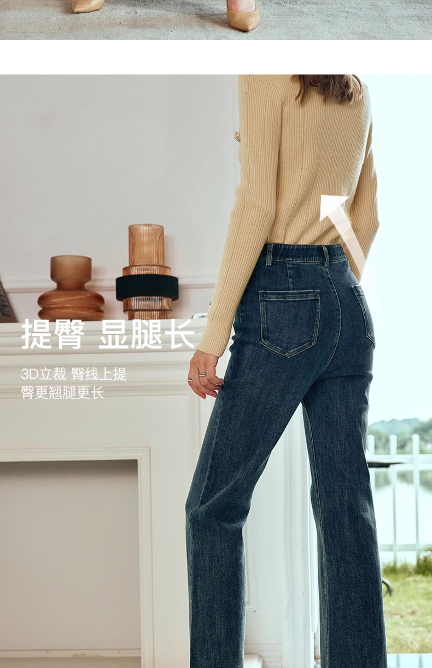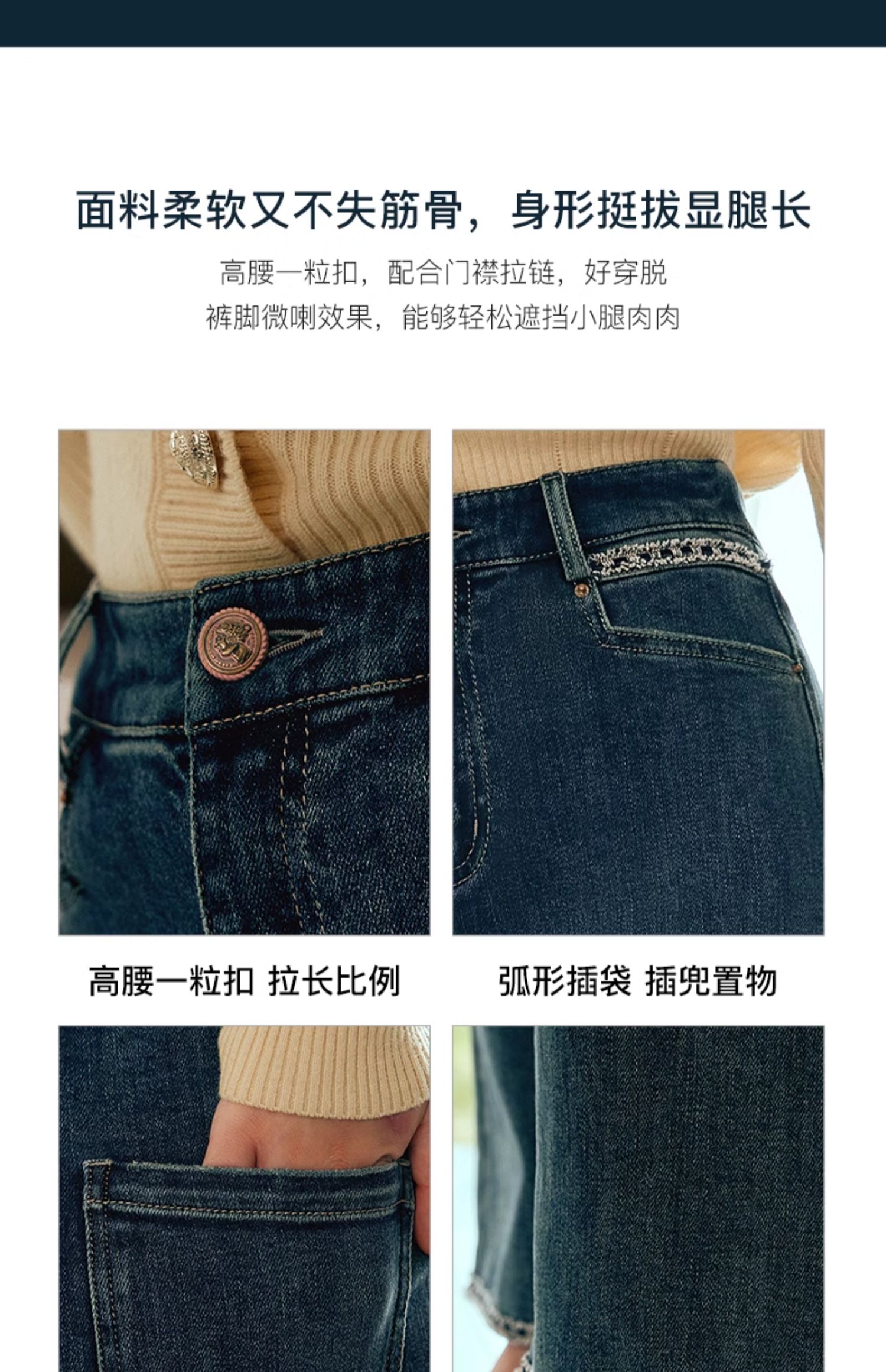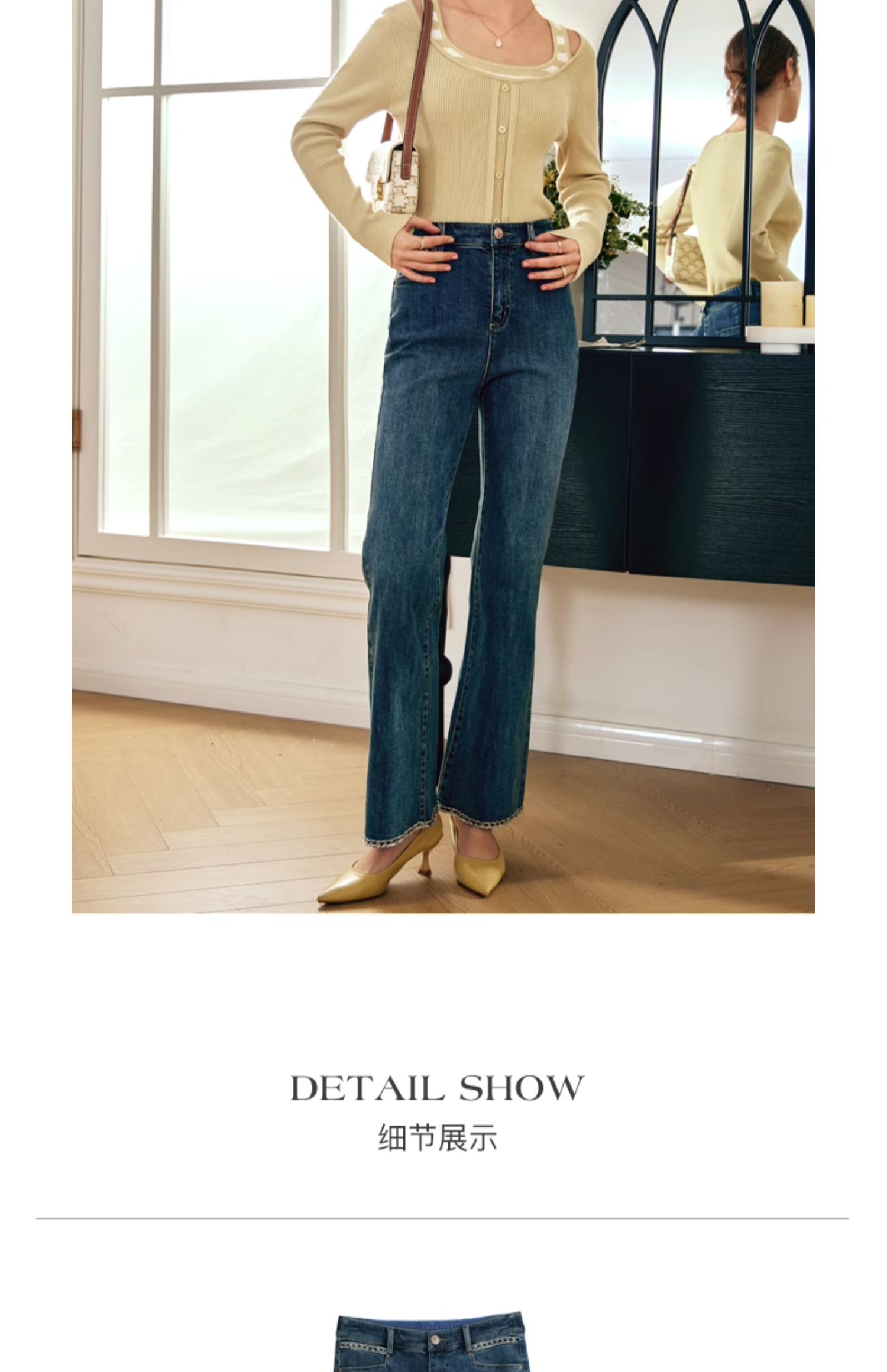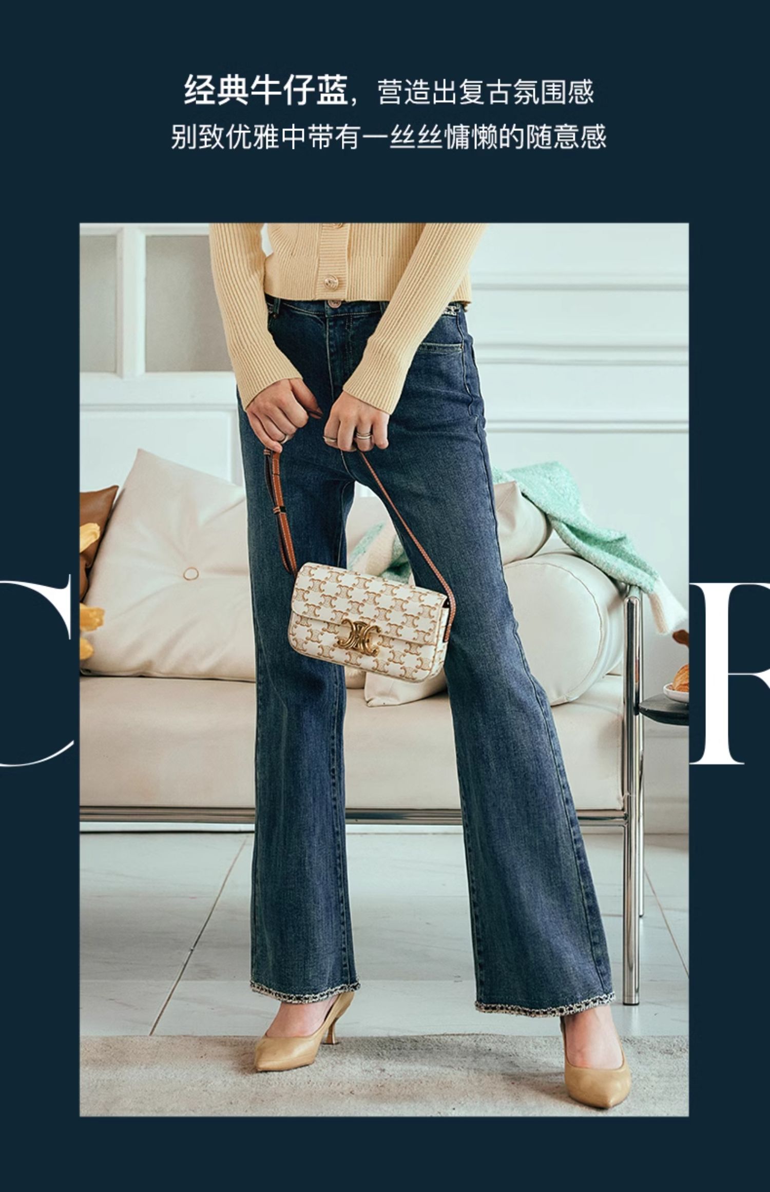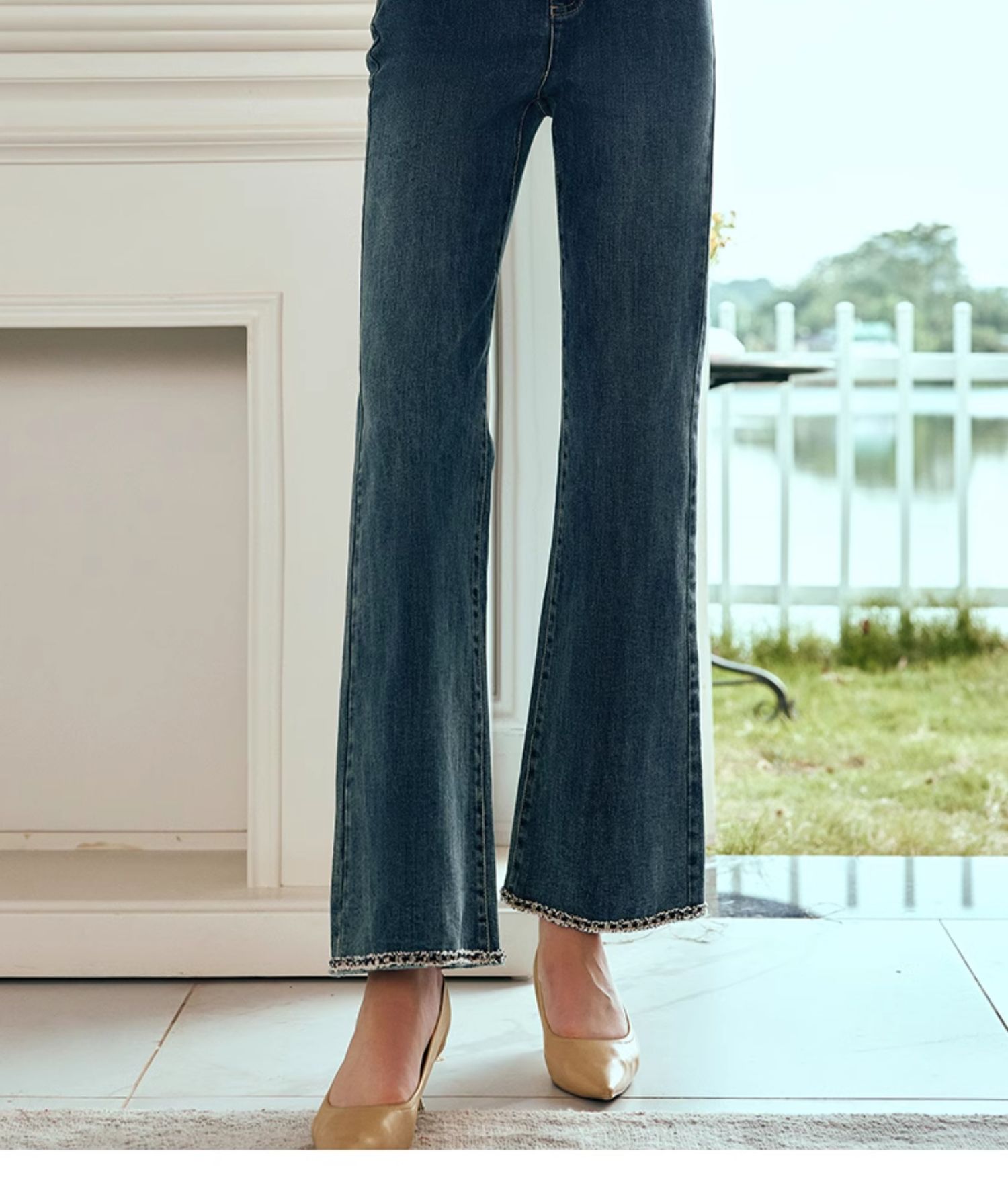 OLrain欧芮儿蓝色微喇牛仔裤女早春2024新款高腰显瘦百搭水洗长裤