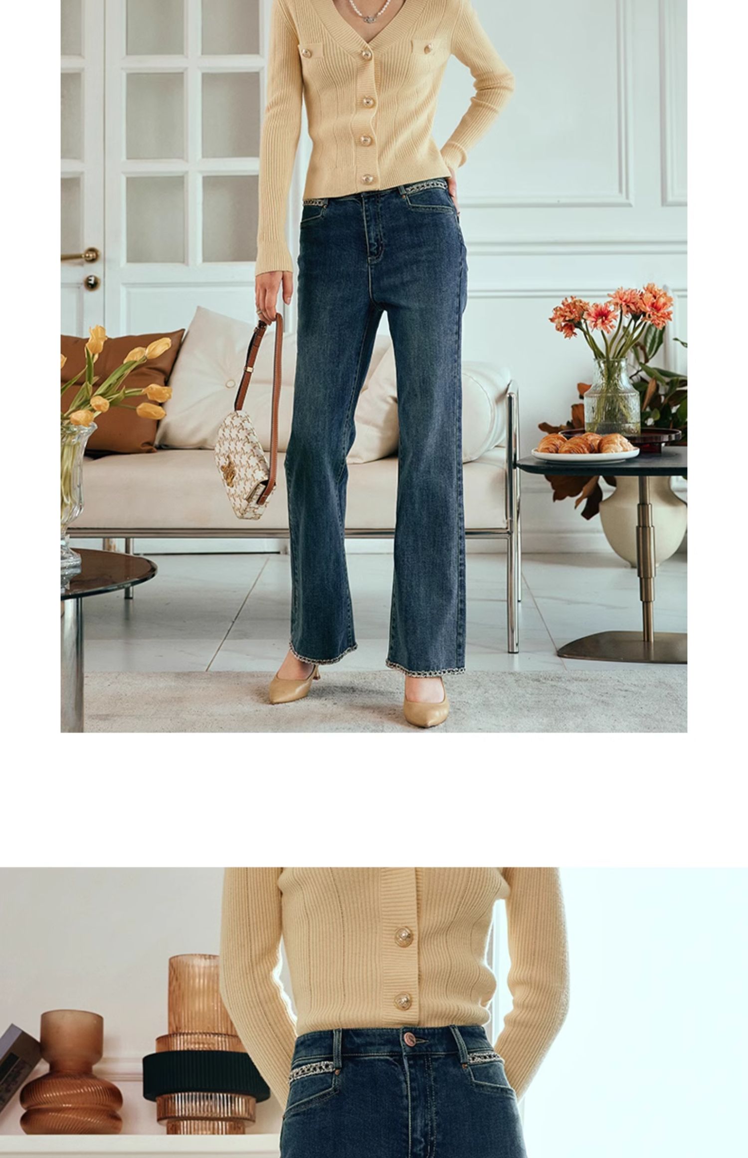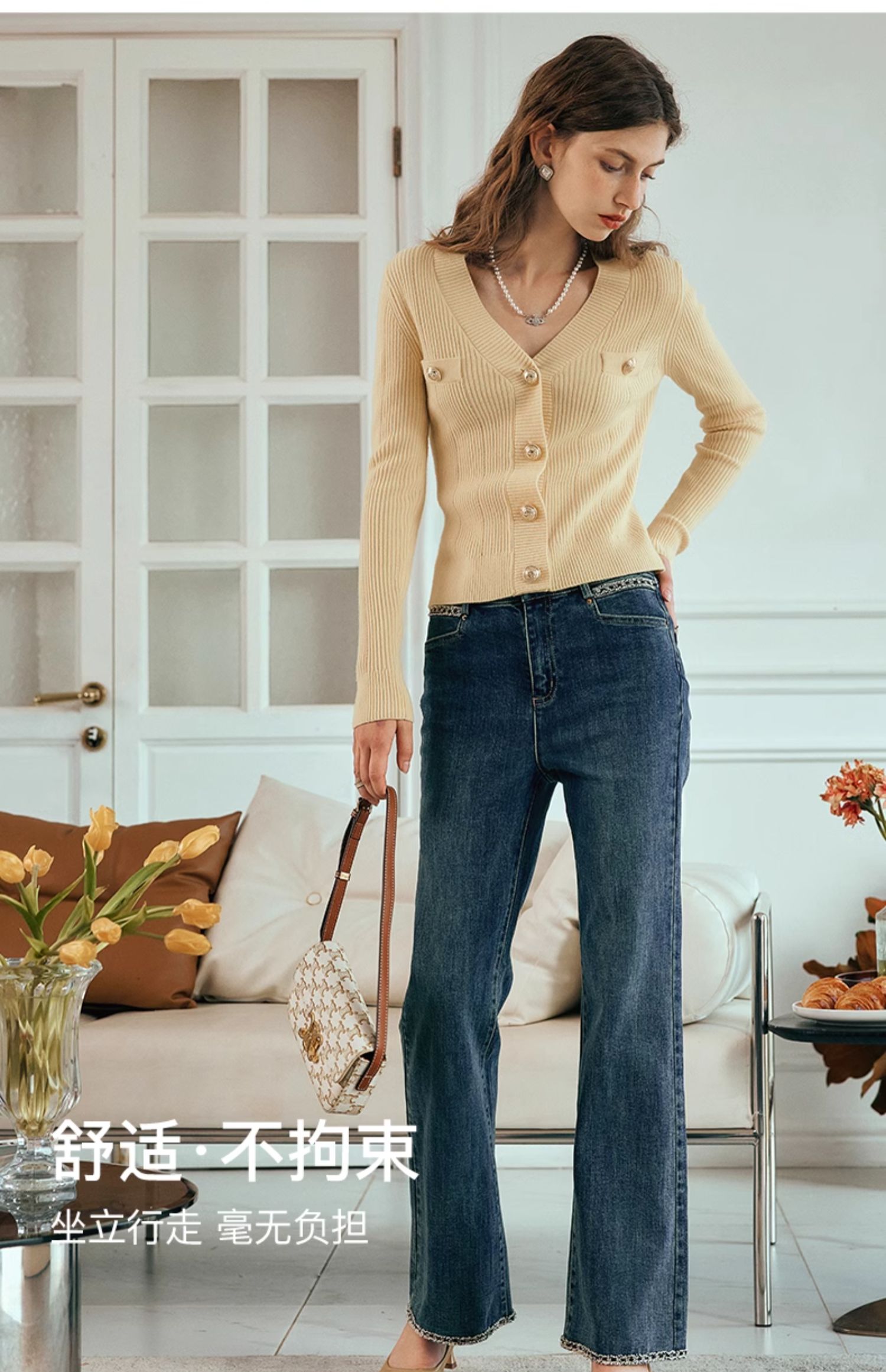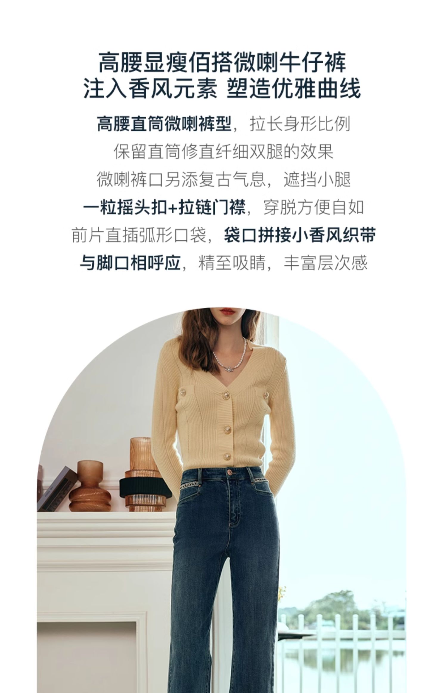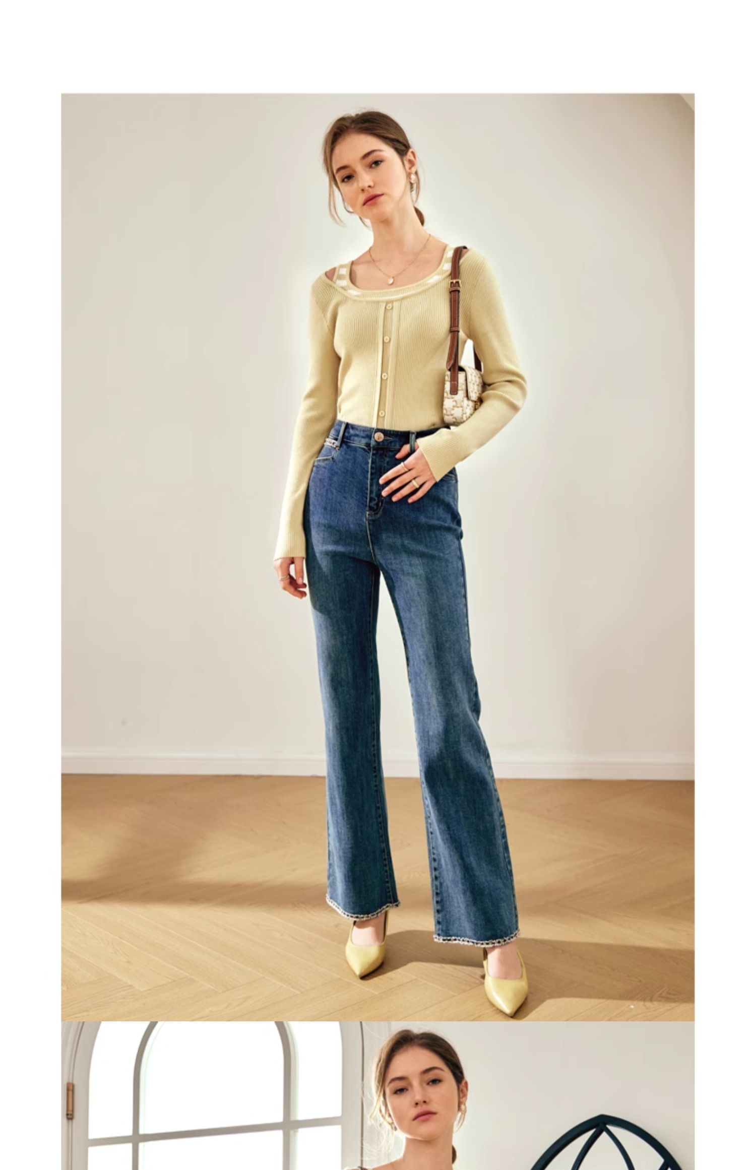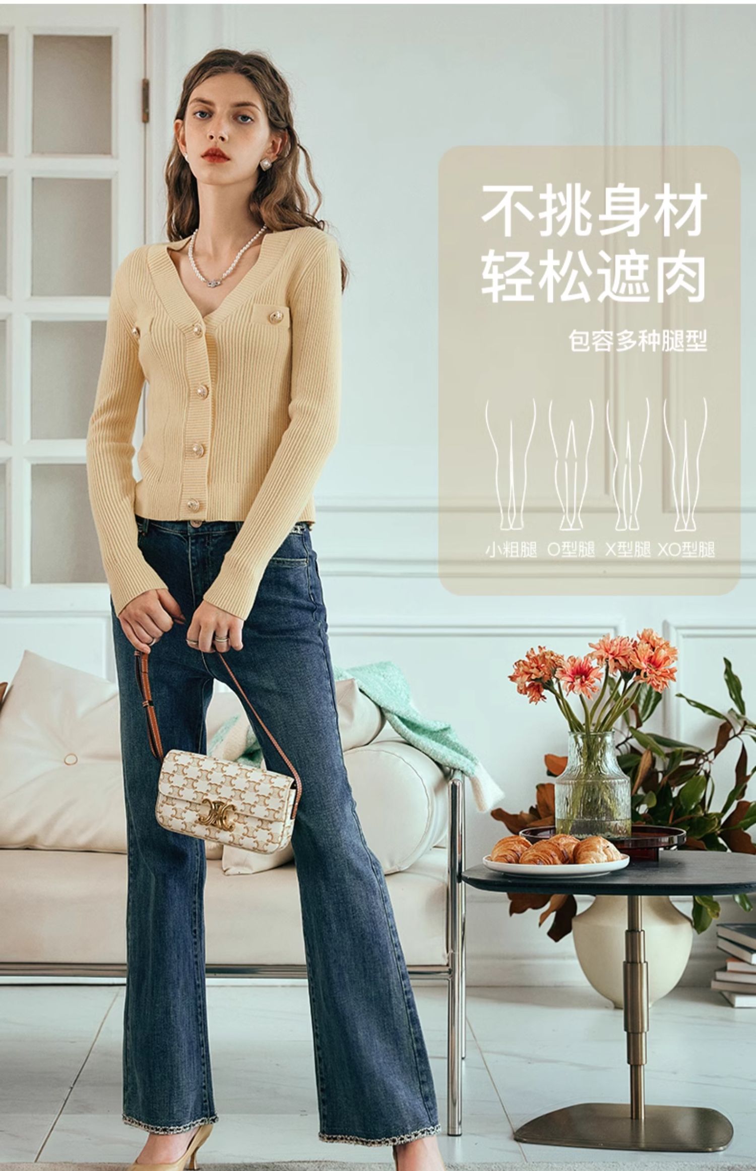 OLrain欧芮儿蓝色微喇牛仔裤女早春2024新款高腰显瘦百搭水洗长裤