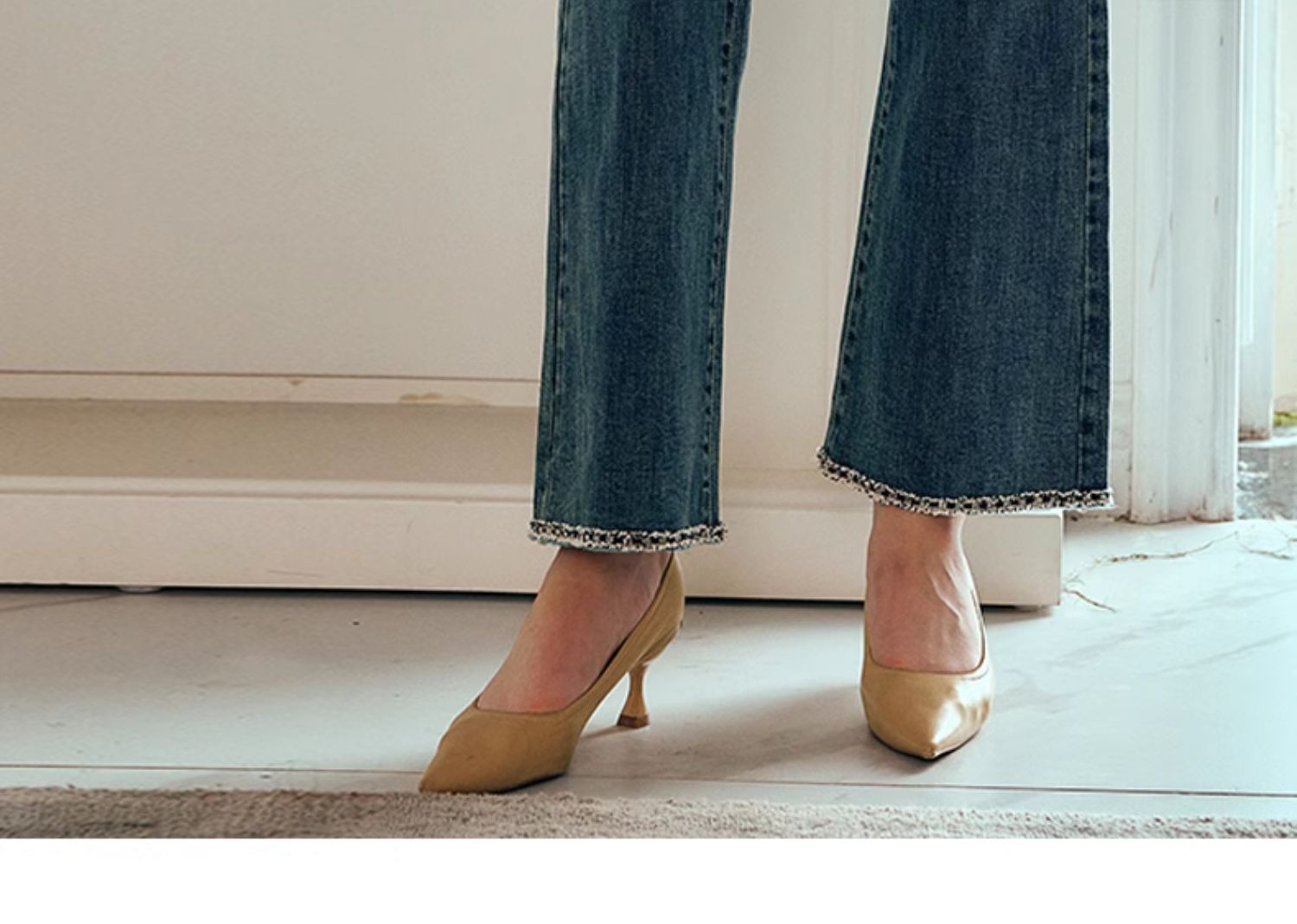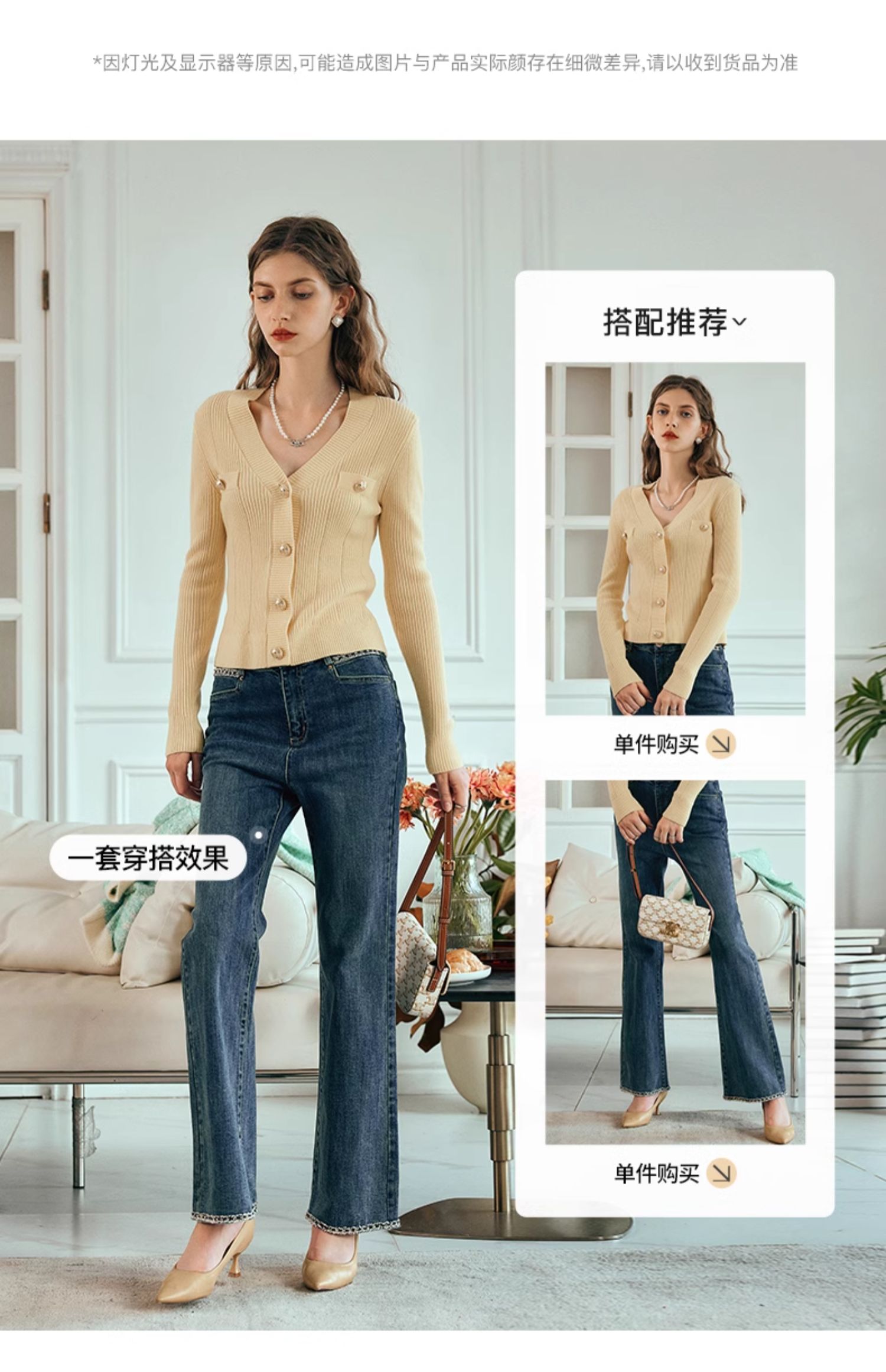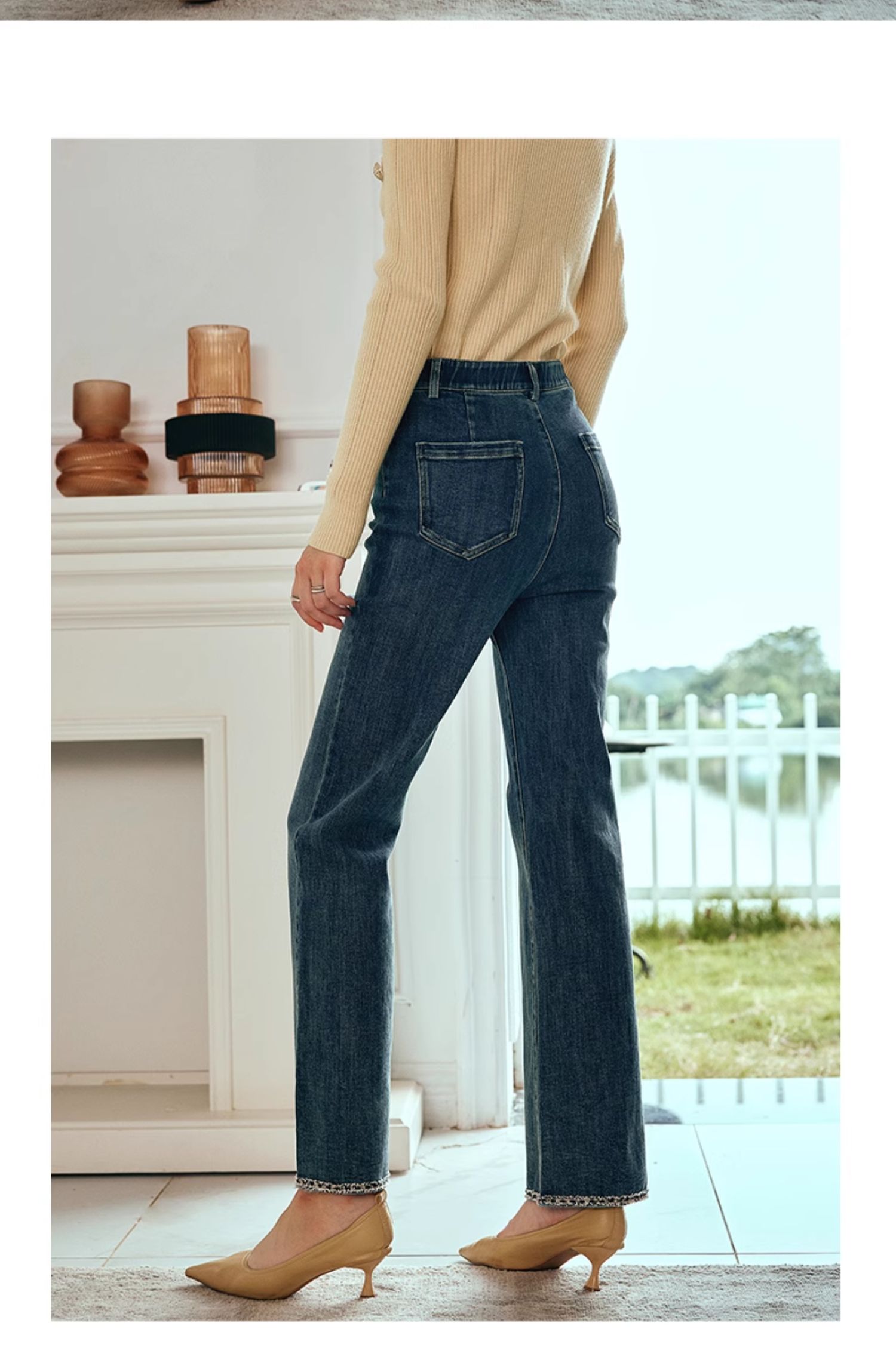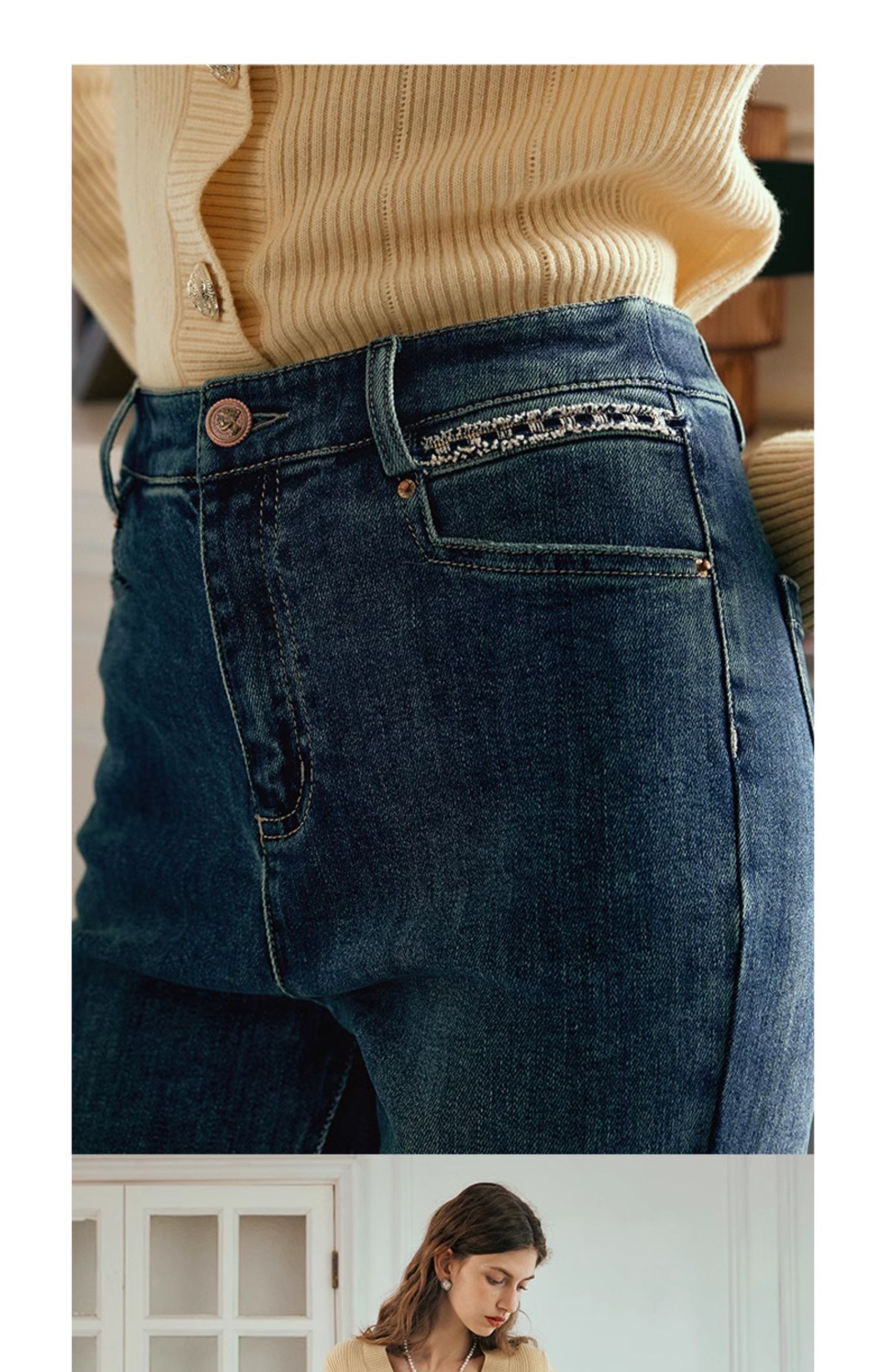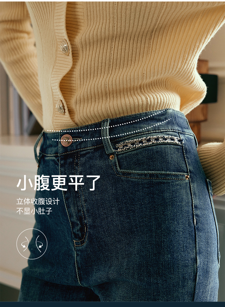 OLrain欧芮儿蓝色微喇牛仔裤女早春2024新款高腰显瘦百搭水洗长裤