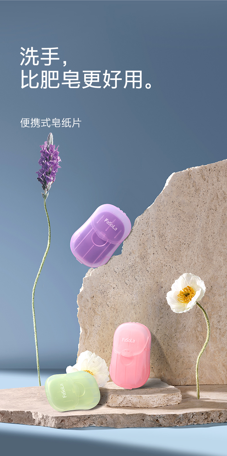 FaSoLa旅行便携式肥皂纸一次性迷你香皂纸随身洗手清洁香皂片