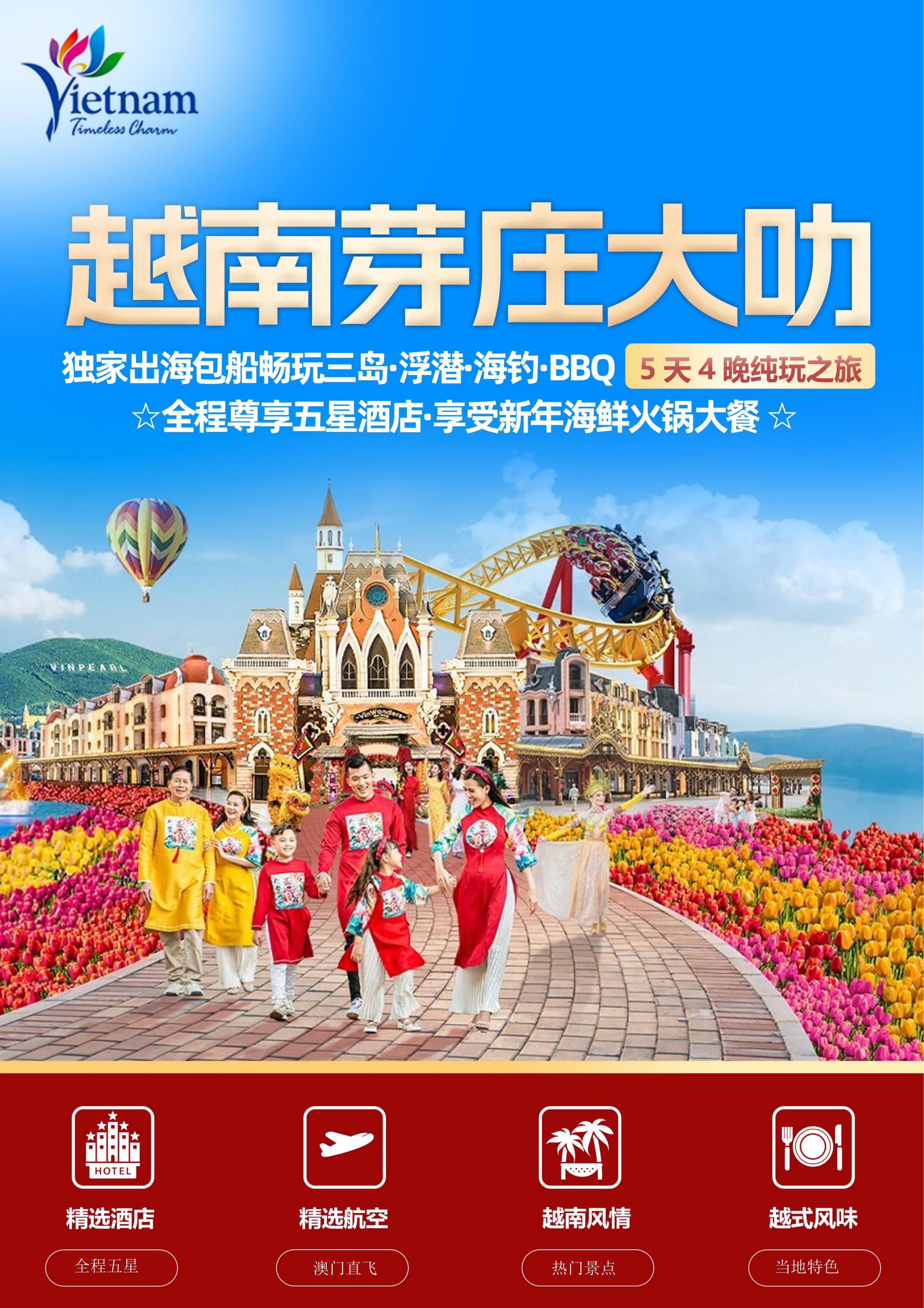 【春节】<越南芽庄·大叻5天双城游>澳门直飞,深圳起止