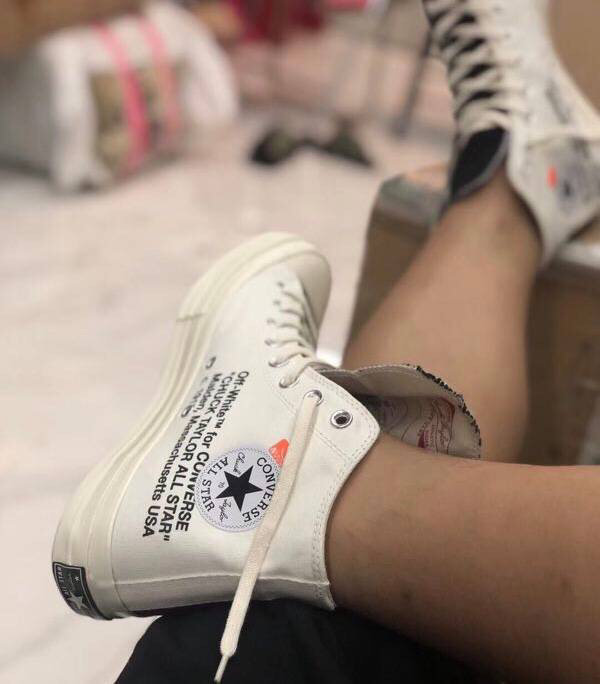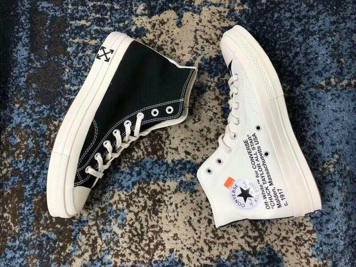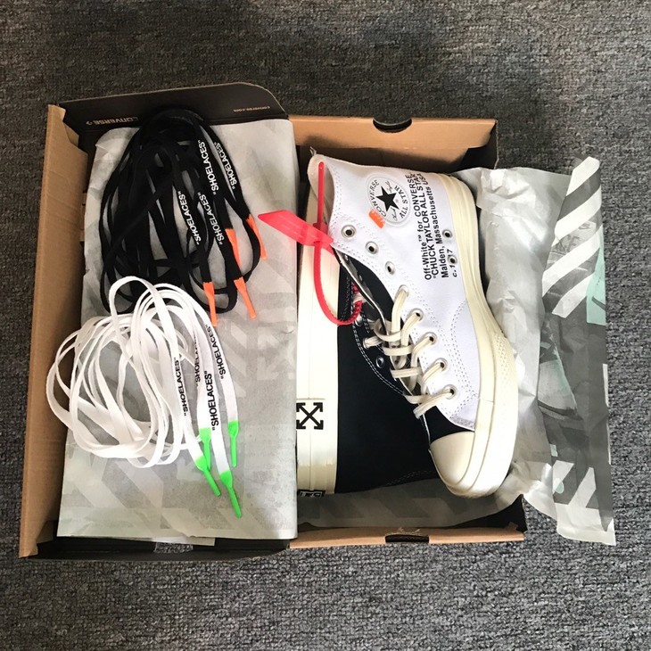 OFF-WHITE X CONVERSE Chuck Taylor 70s 阴阳鞋鸳鸯鞋高帮双色拼接黑白帆布鞋,附送两双鞋带(白绿头、黑橘头鞋带)off white专属红扣 货号:165158C