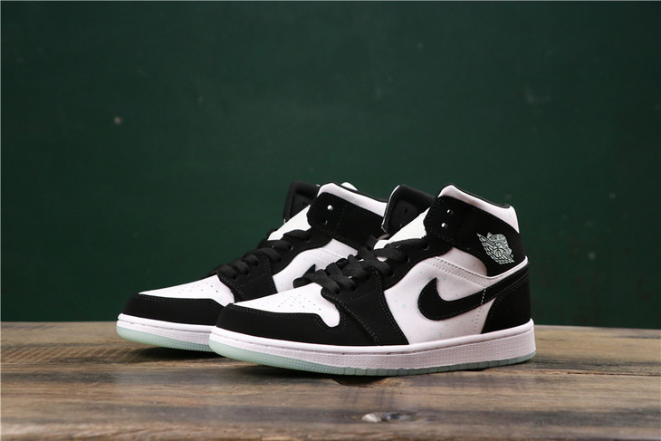 乔丹/Air Jordan AJ1 aj1 乔丹1代 乔1 乔丹1代中帮系列 Air Jordan 1 MID 货号:554724-174 乔1中帮黑白熊猫夜光底