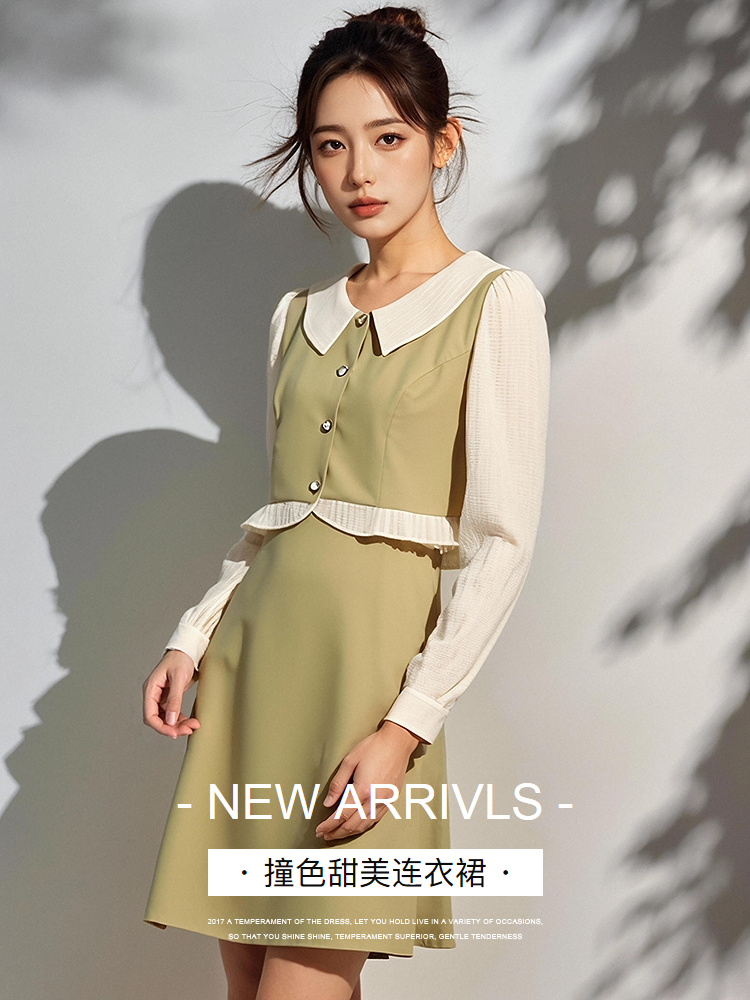 奢姿2025年春季新款大码女装甜美蕾丝拼接裙子胖妹妹假两件连衣裙9951890324