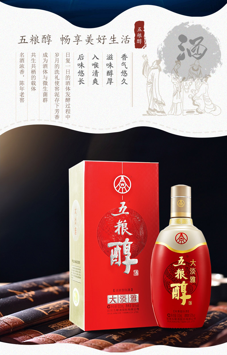 (整箱)五粮醇·大淡雅 50度 500mL*6瓶