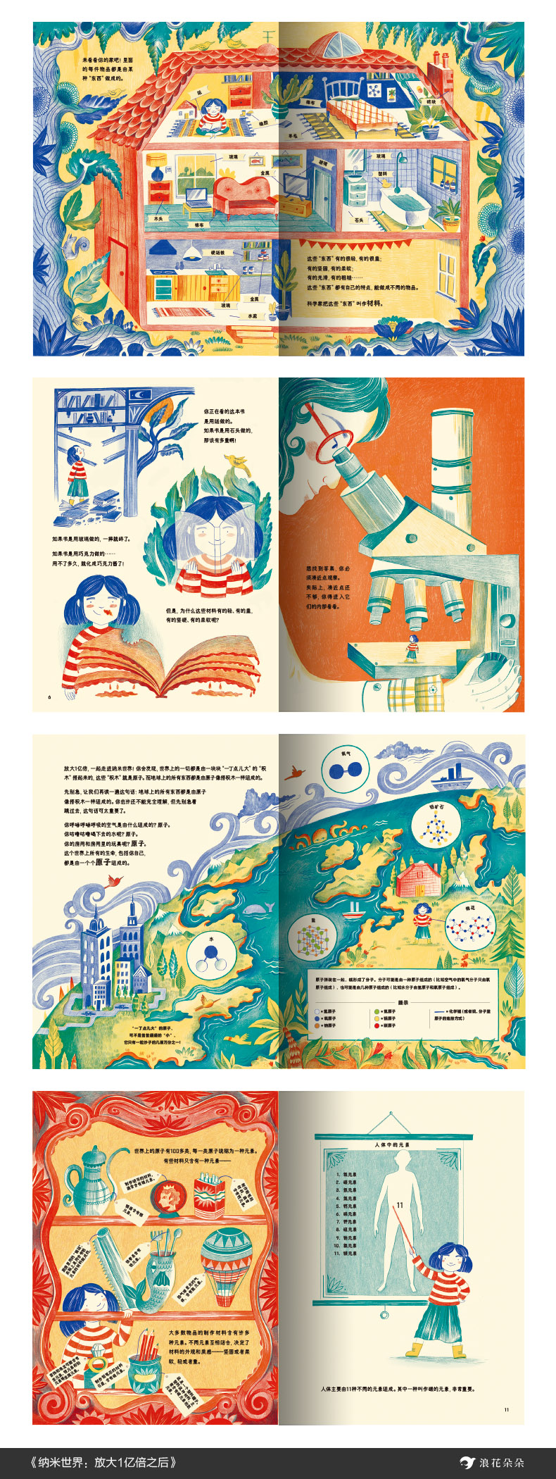 清新奇幻的插画风格,简单有趣的类比,让读者能轻松进入纳米世界,饱览前沿科技