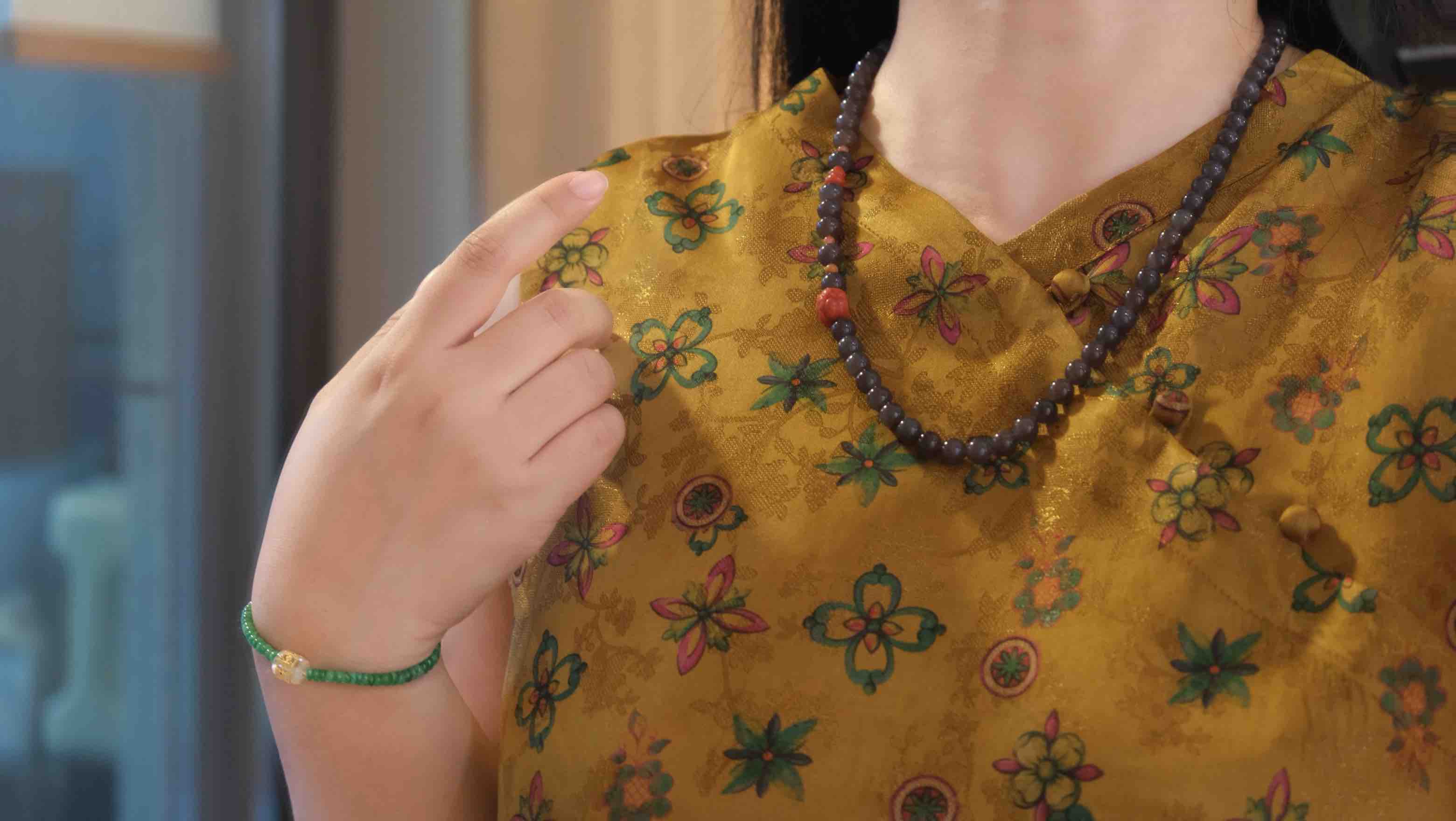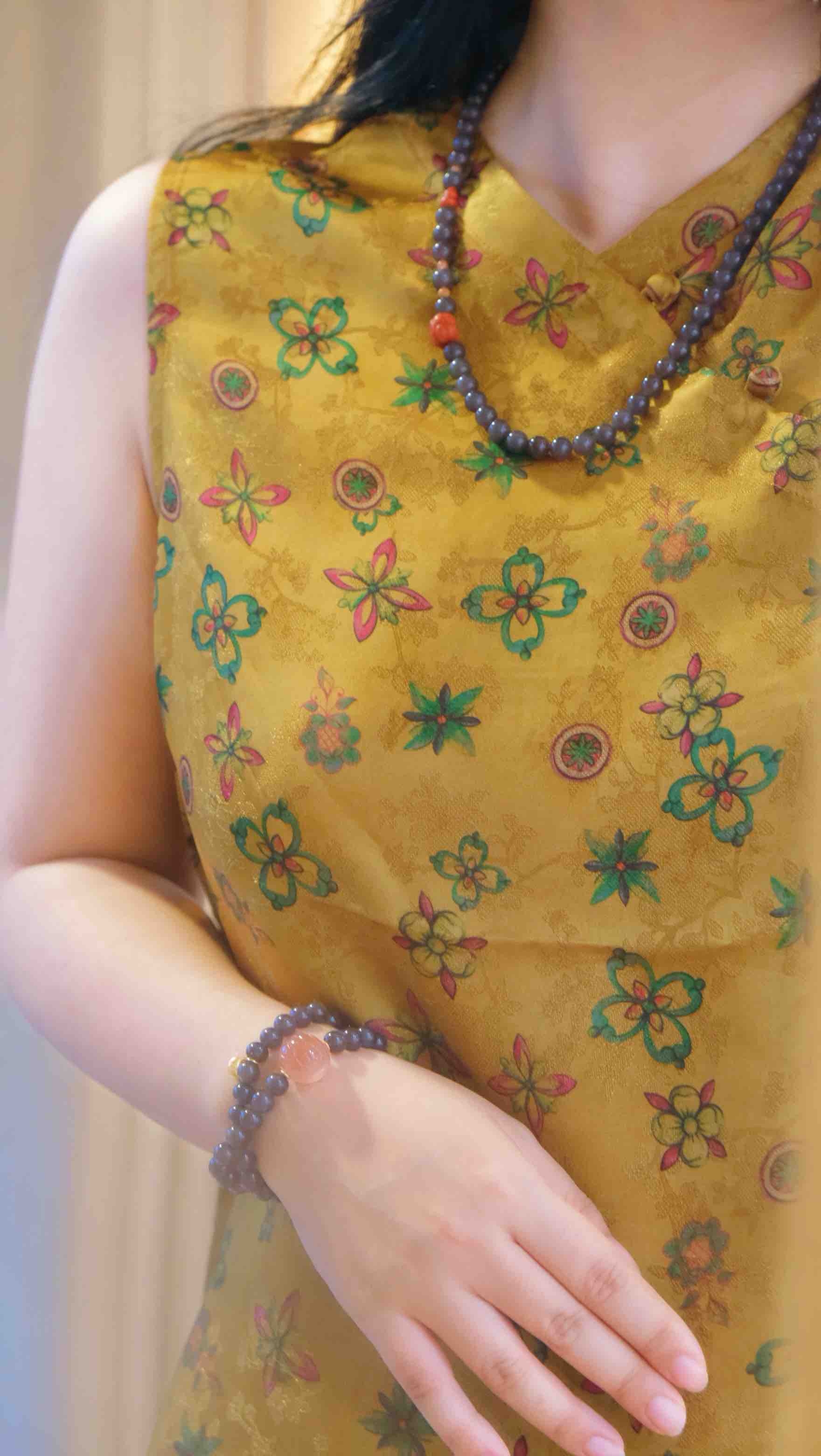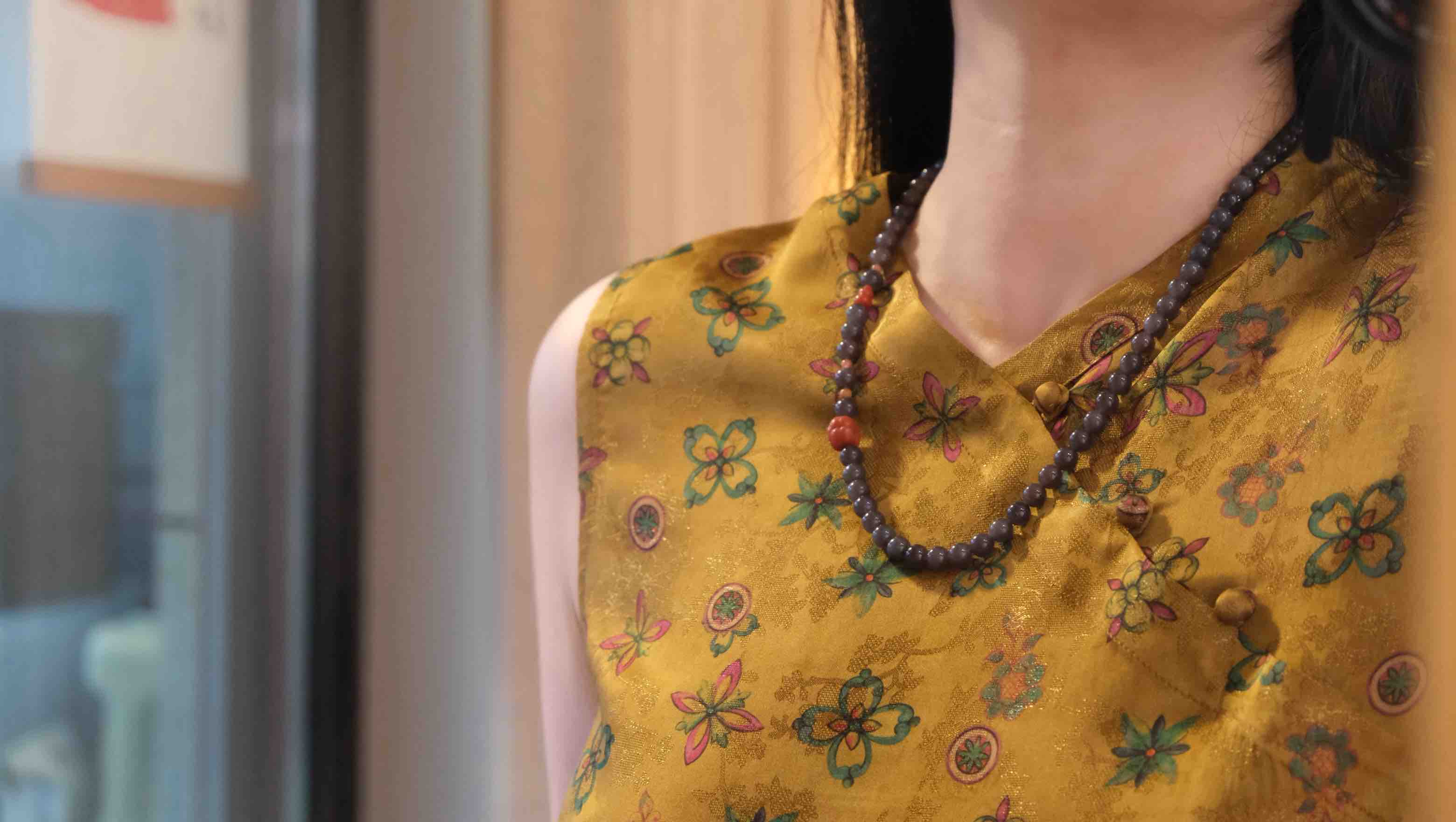 超级无敌美的一条浓郁的深烟紫和田玉,配的是可爱的南红玛瑙满色满肉柿子富贵饱满,颜色料子都很棒,细腻,颜色非常标准,低调的华丽,珠圆玉润的气质,配香云纱衣服太华丽高贵了!