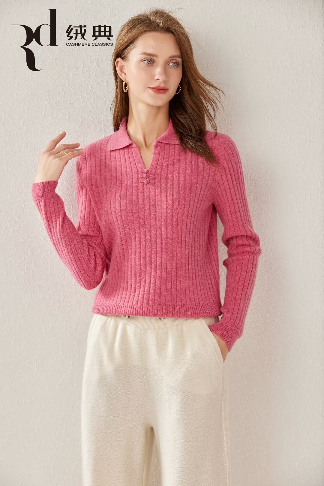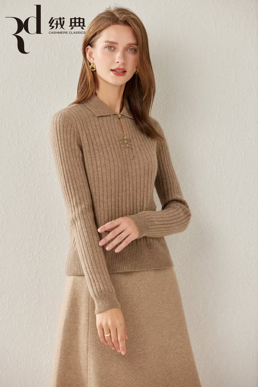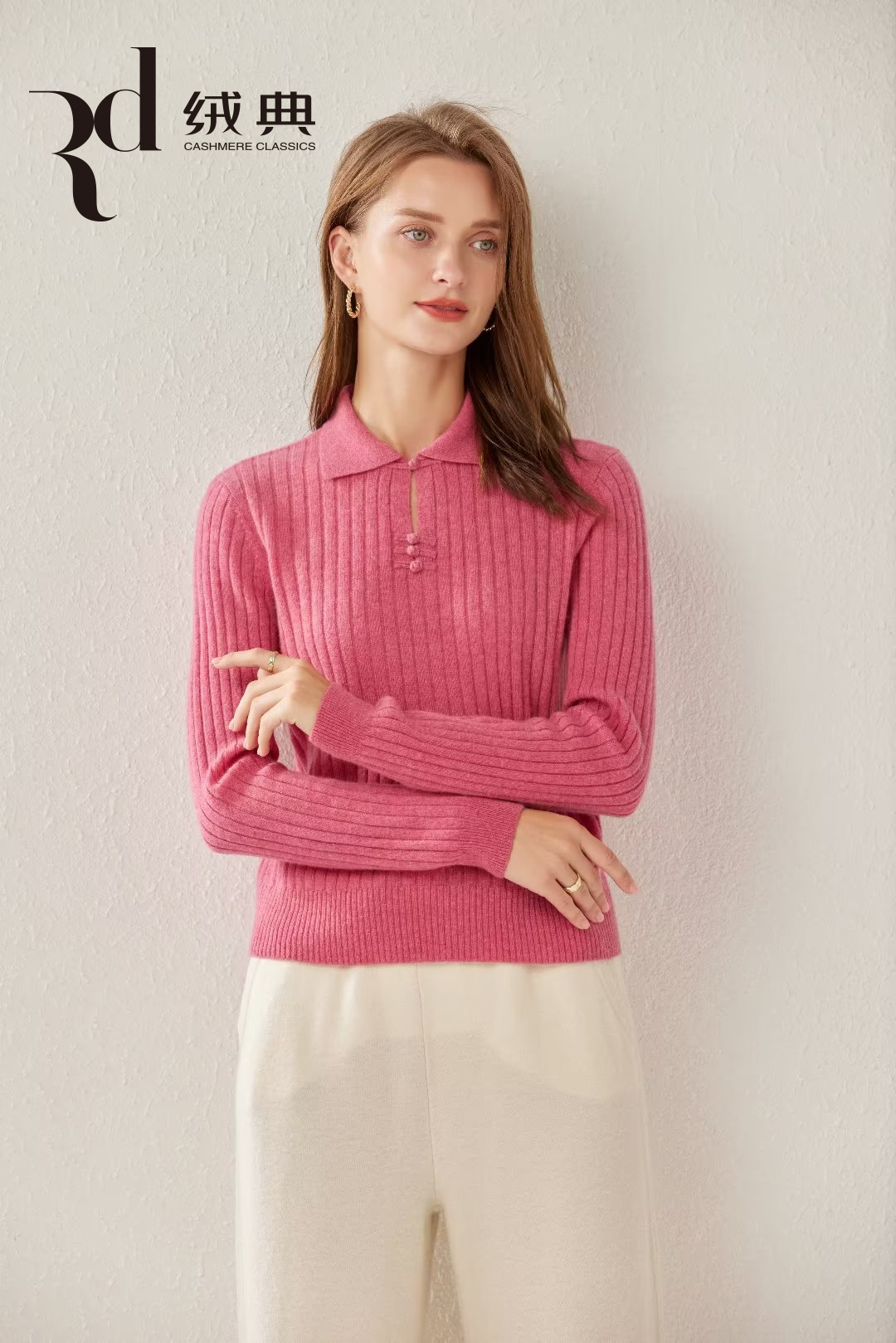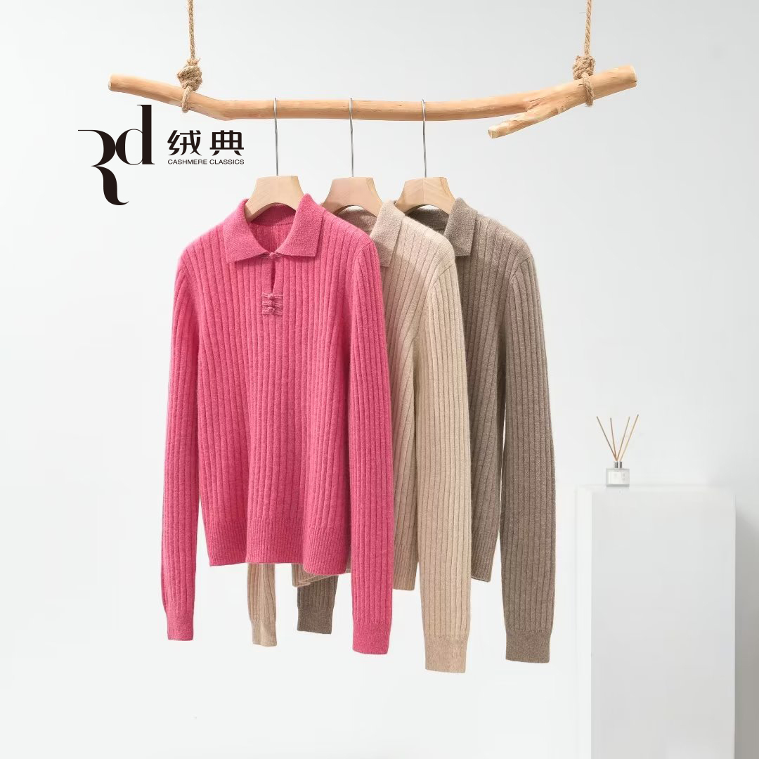 绒典小翻领(带扣)抽条女套衫