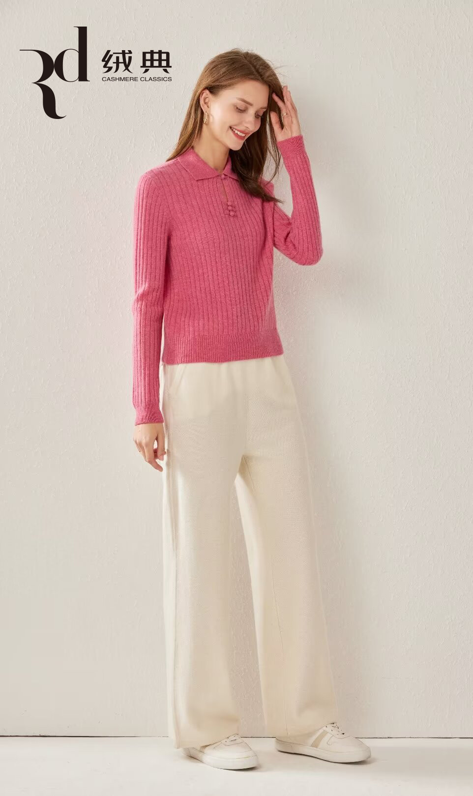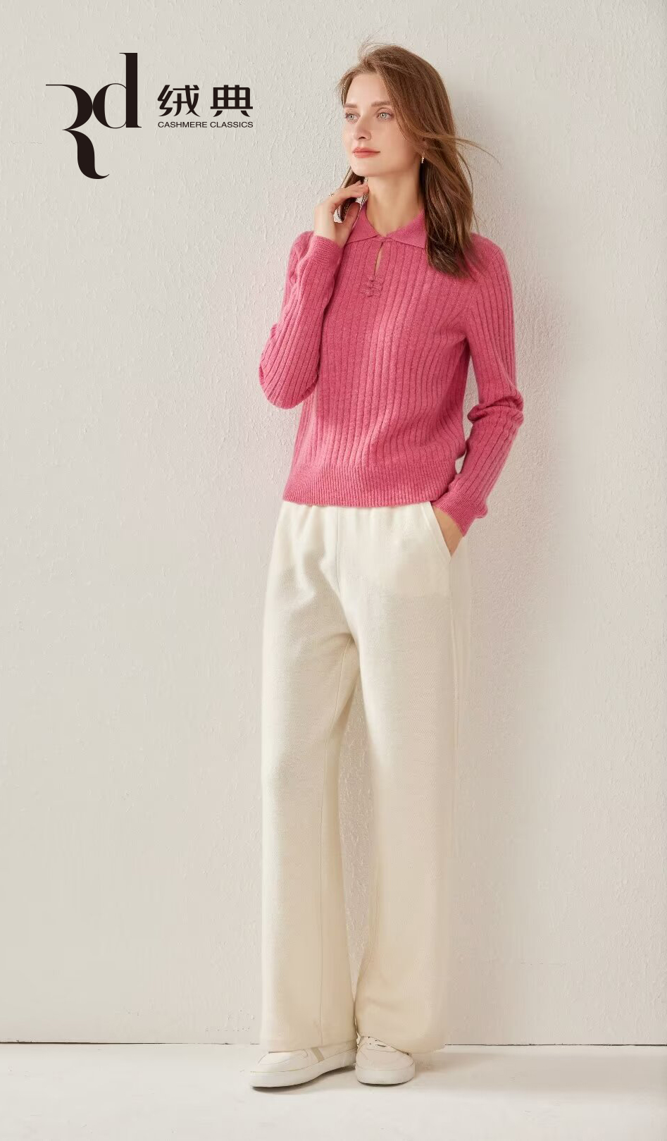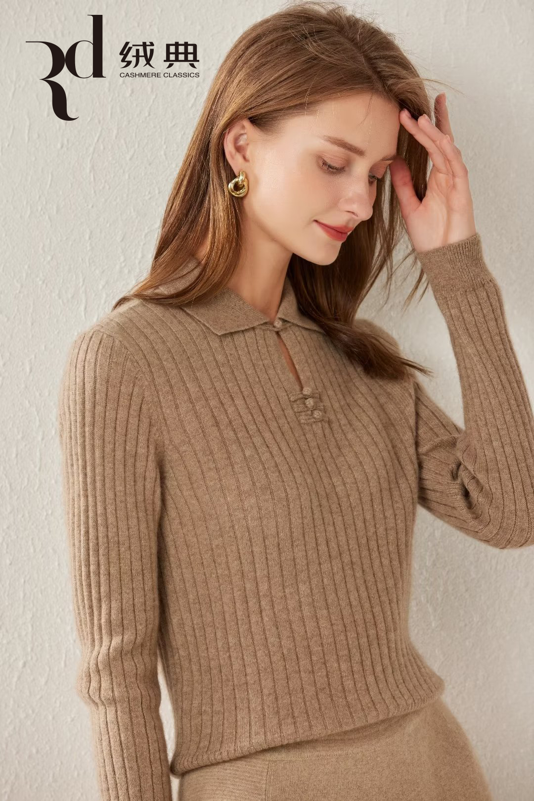 绒典小翻领(带扣)抽条女套衫