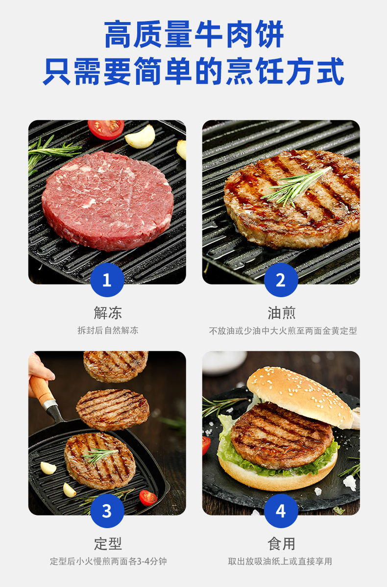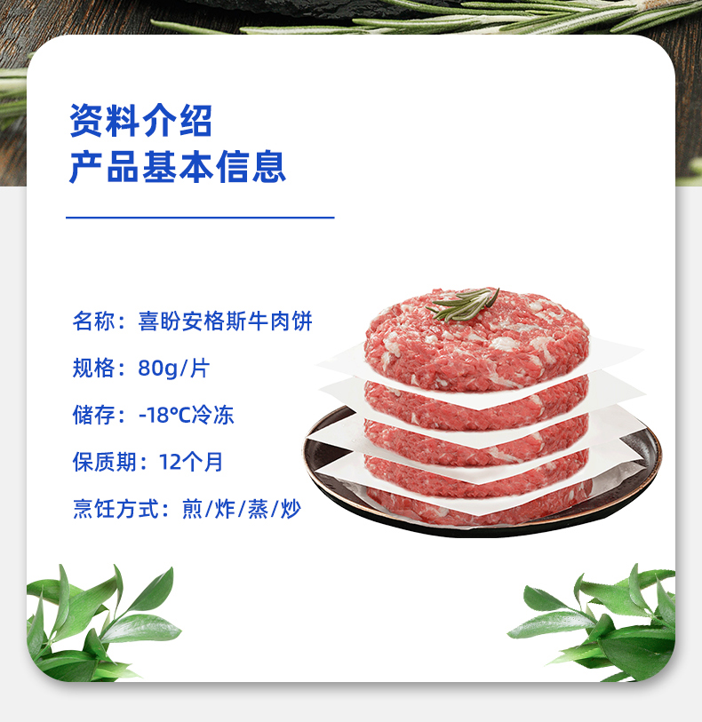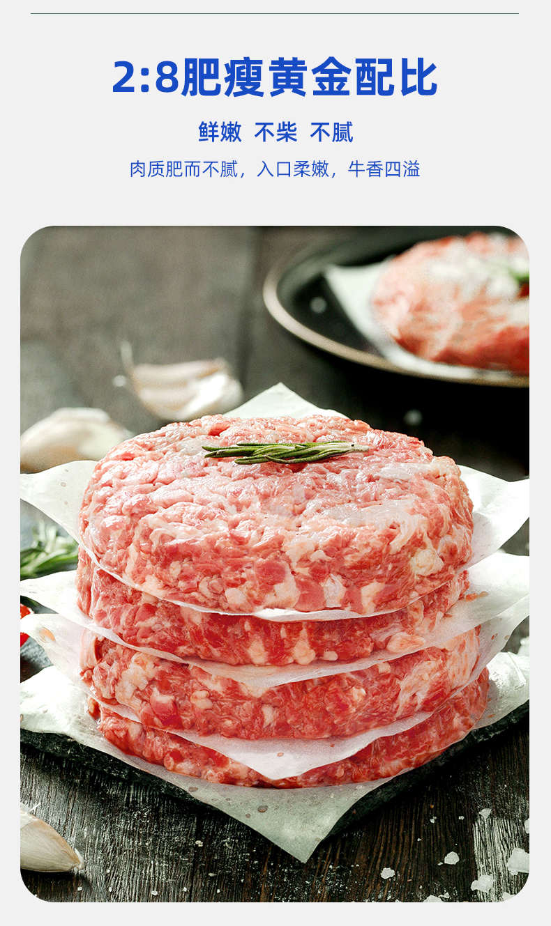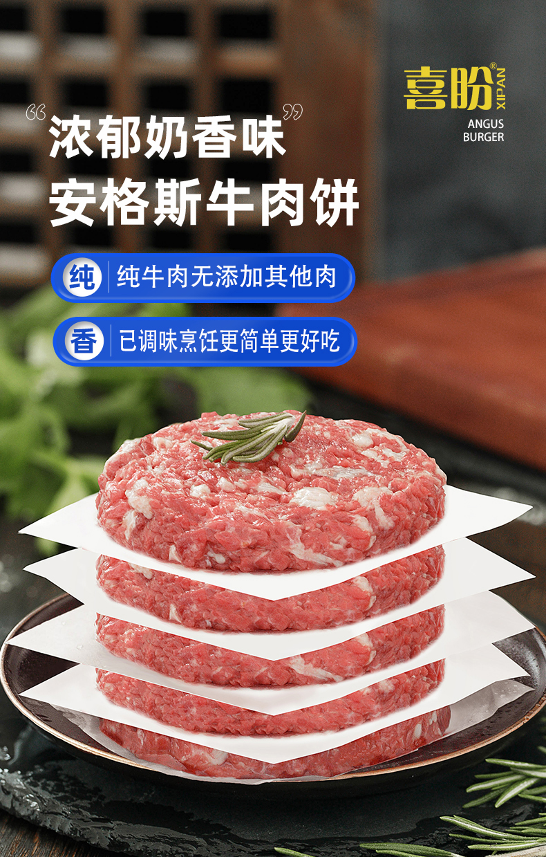 喜盼|澳洲和牛牛肉饼M9+原切谷饲安格斯0添加馅饼喜盼安格斯牛肉饼黑胡椒80克*8块