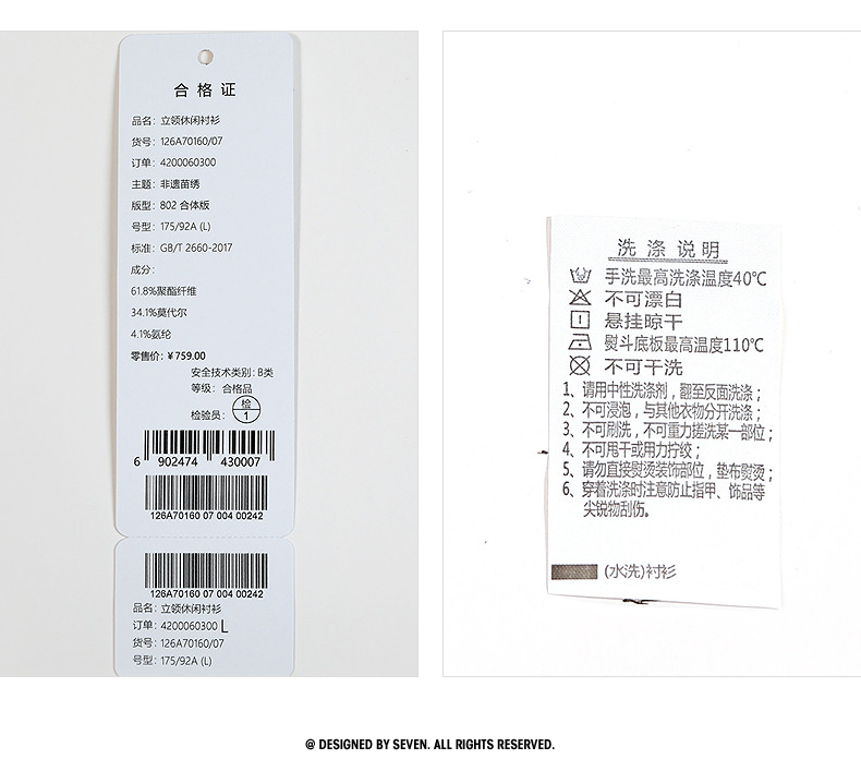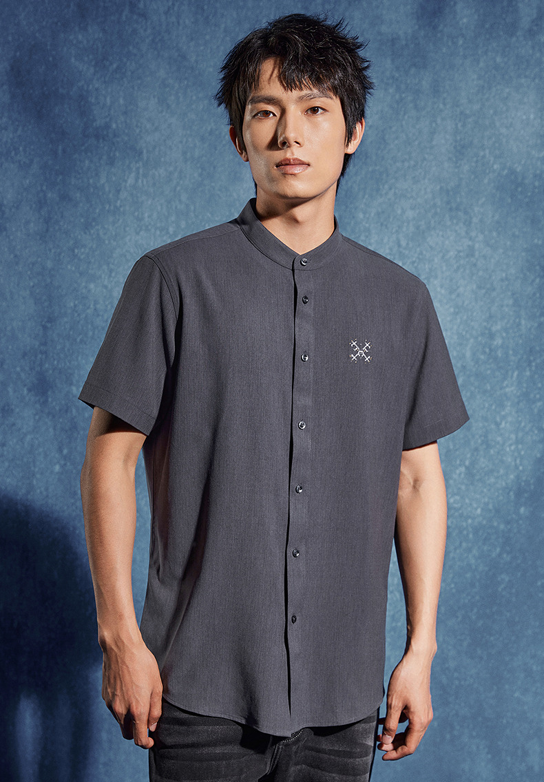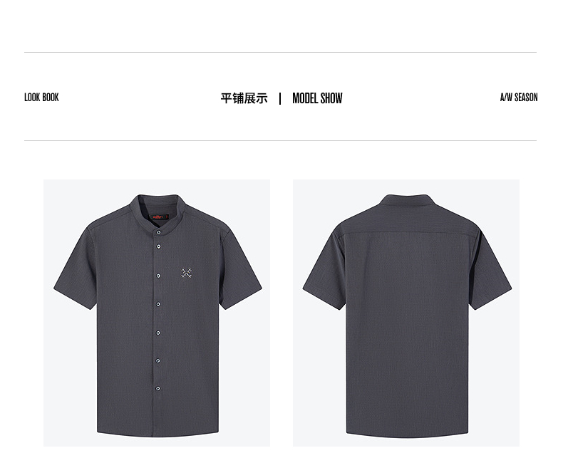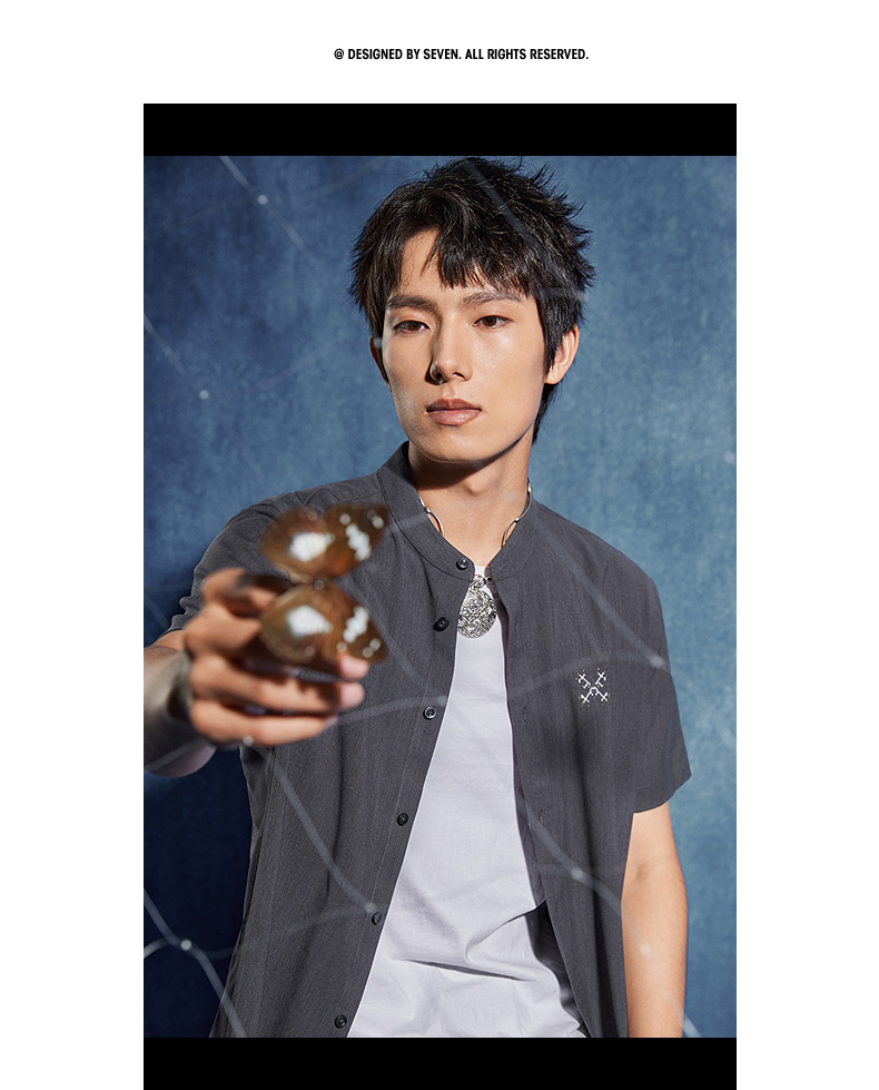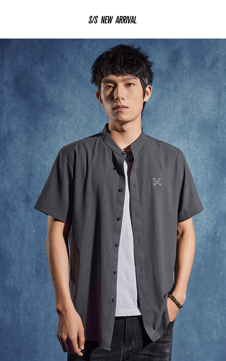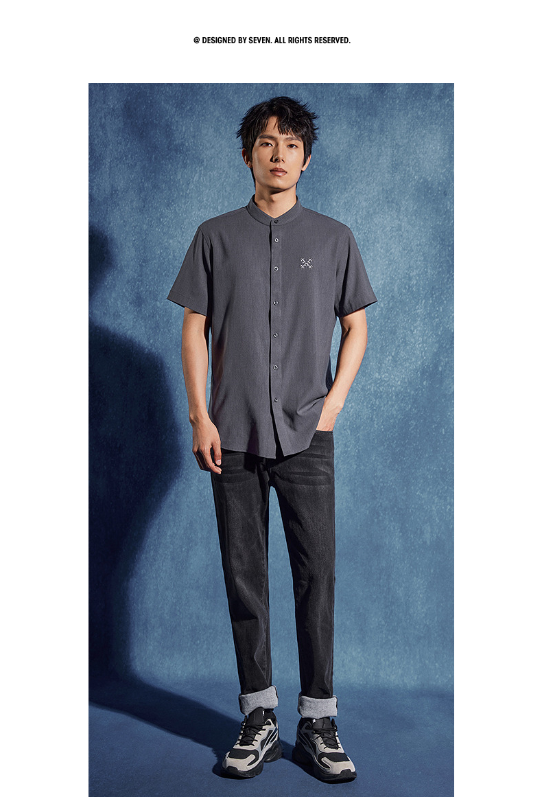 【非遗苗绣蝴蝶妈妈系列】柒牌短袖衬衫男夏季新款休闲立领衬衣薄 126A70160