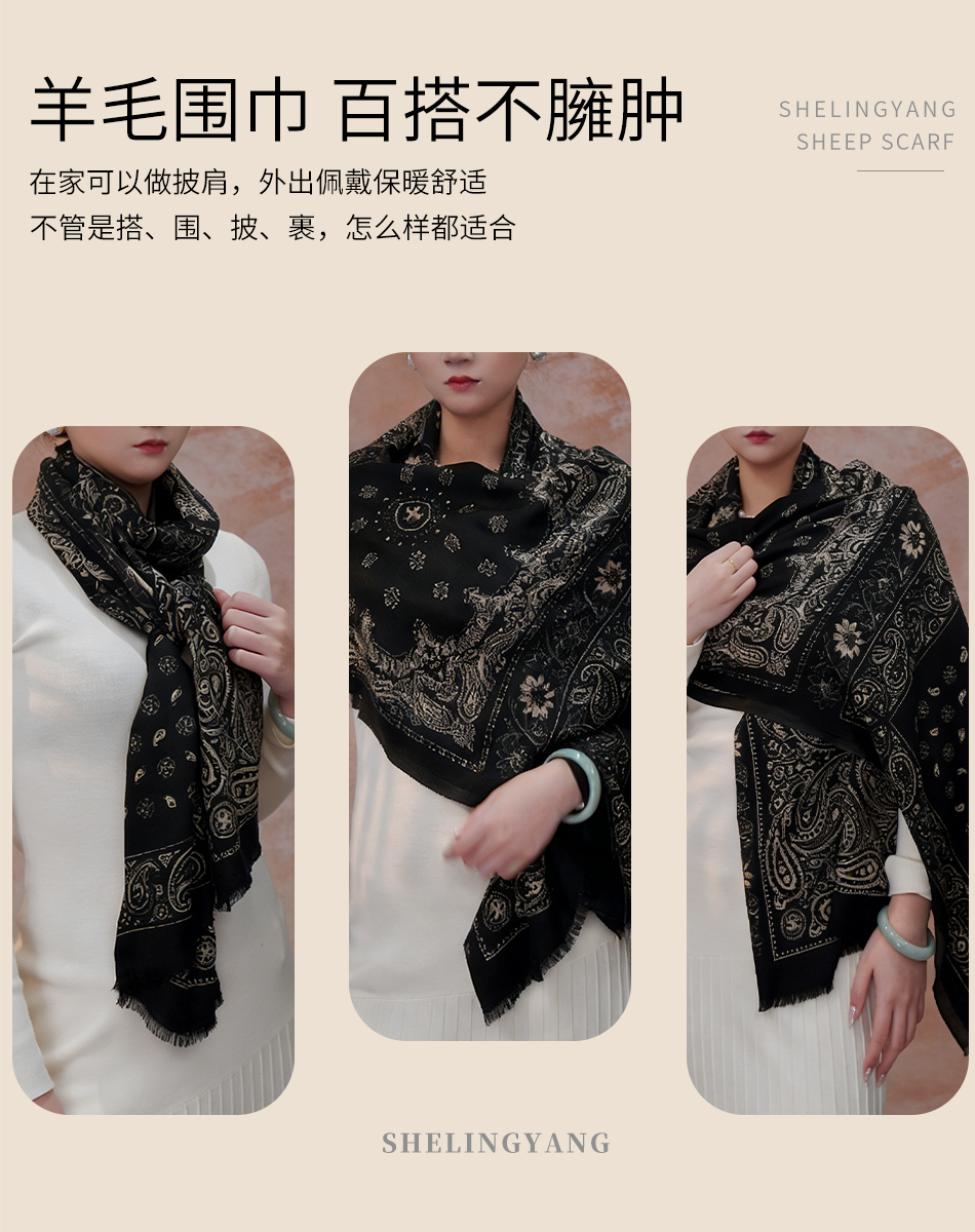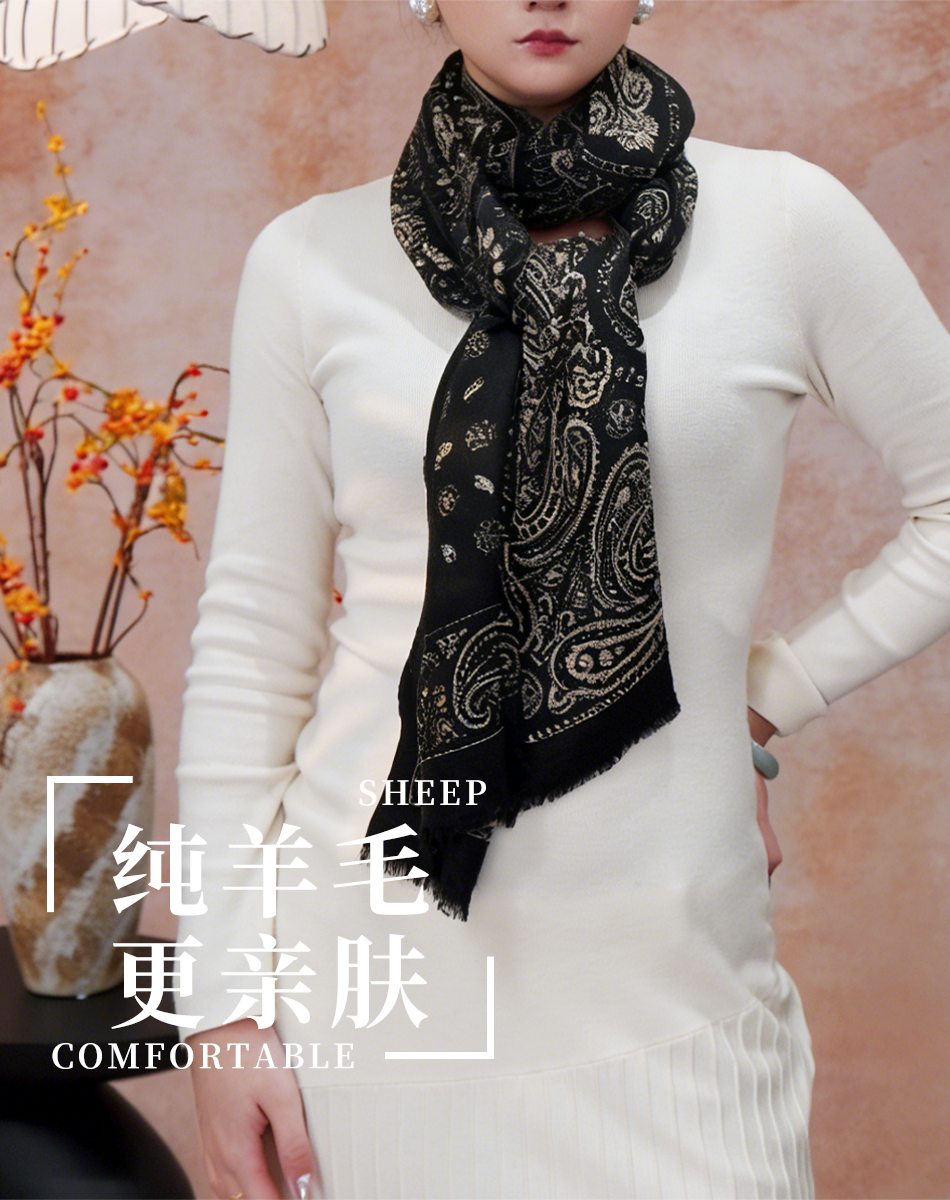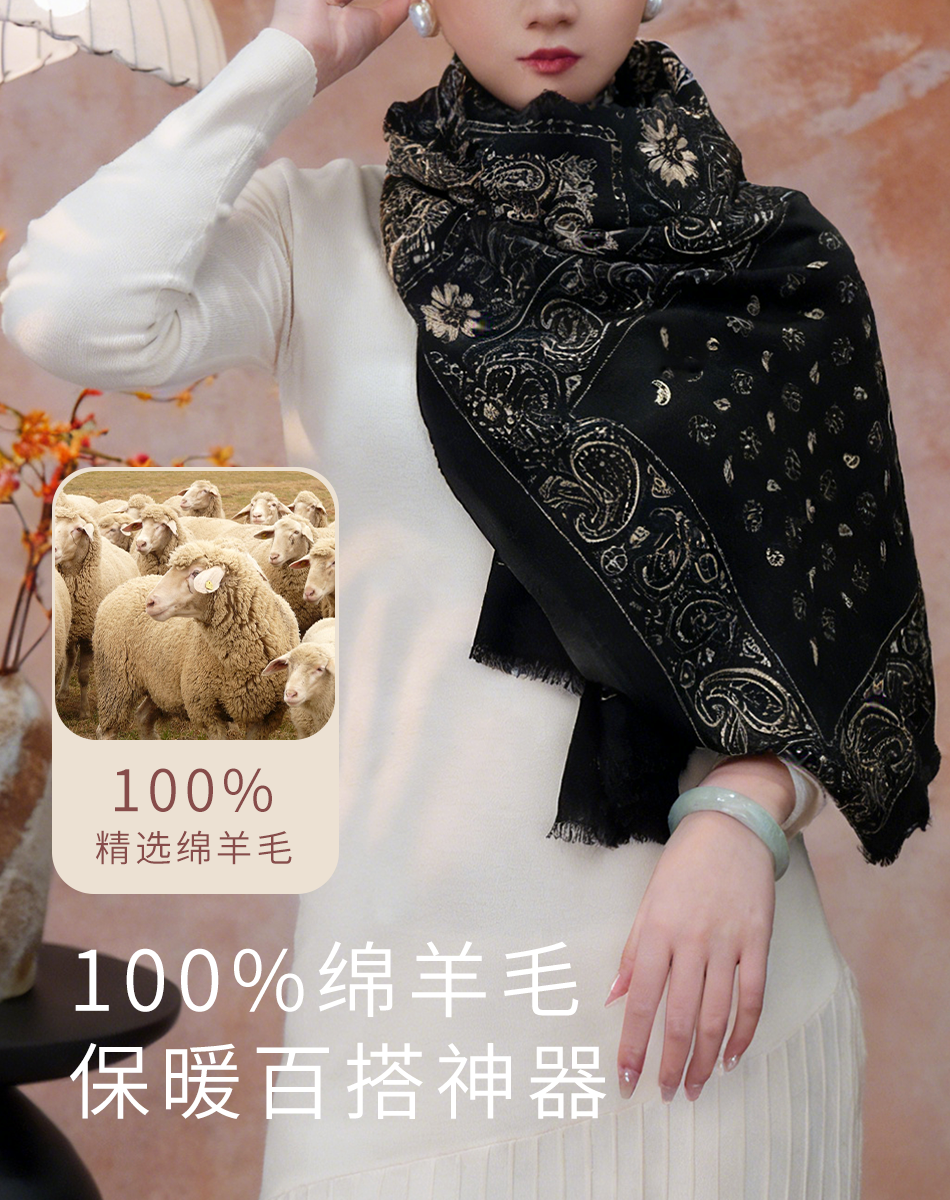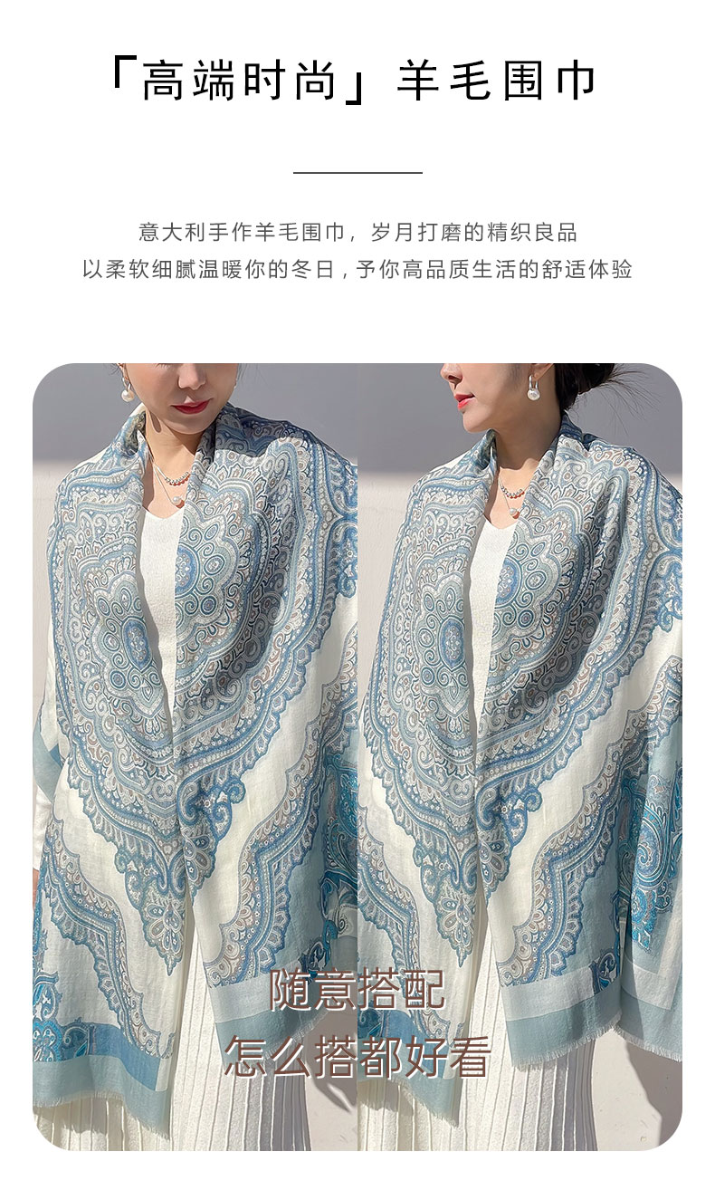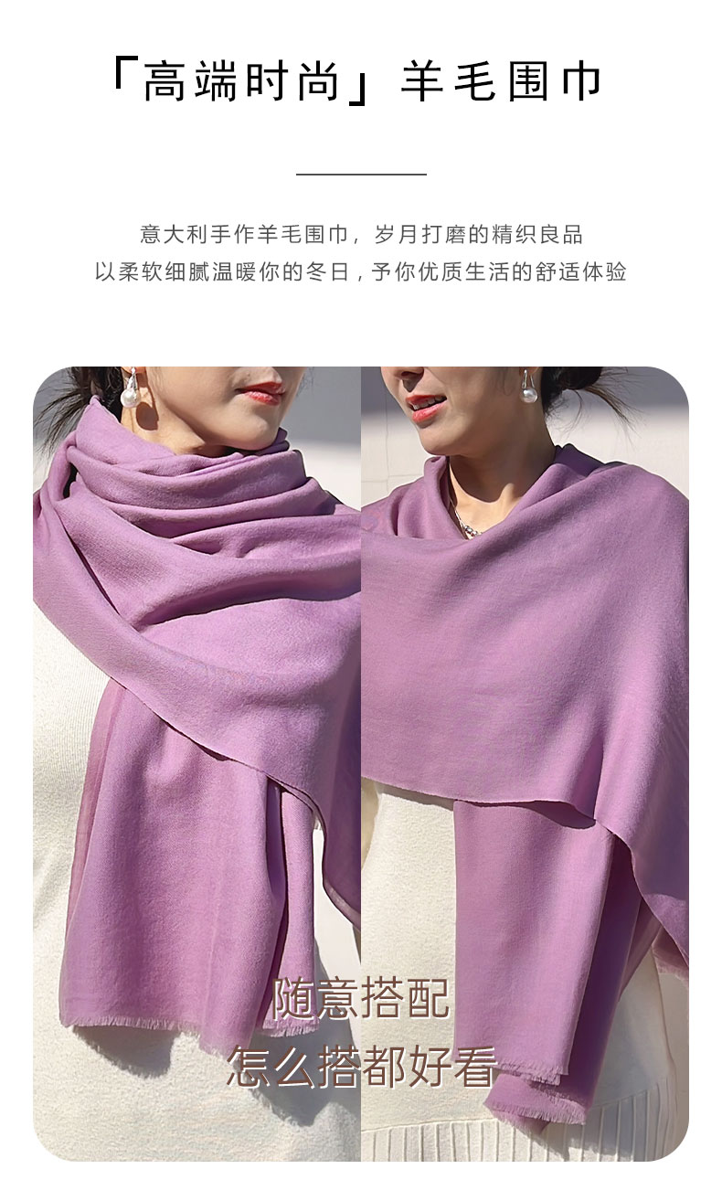 【纯羊毛围巾】经典材质!2米大规格 暖、轻、薄、软 四季可戴、新年豪礼 工厂直供(399元、再送礼盒礼袋)