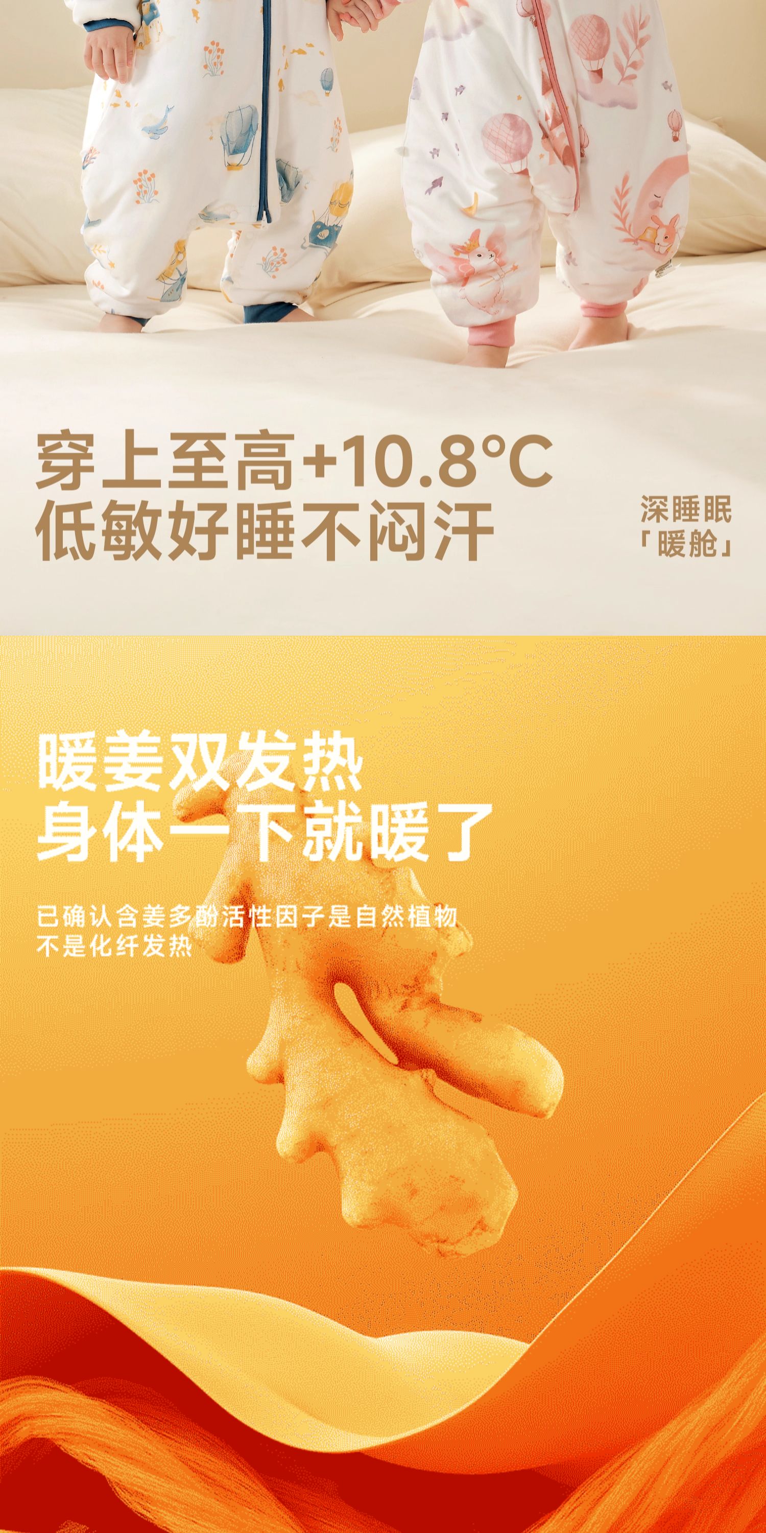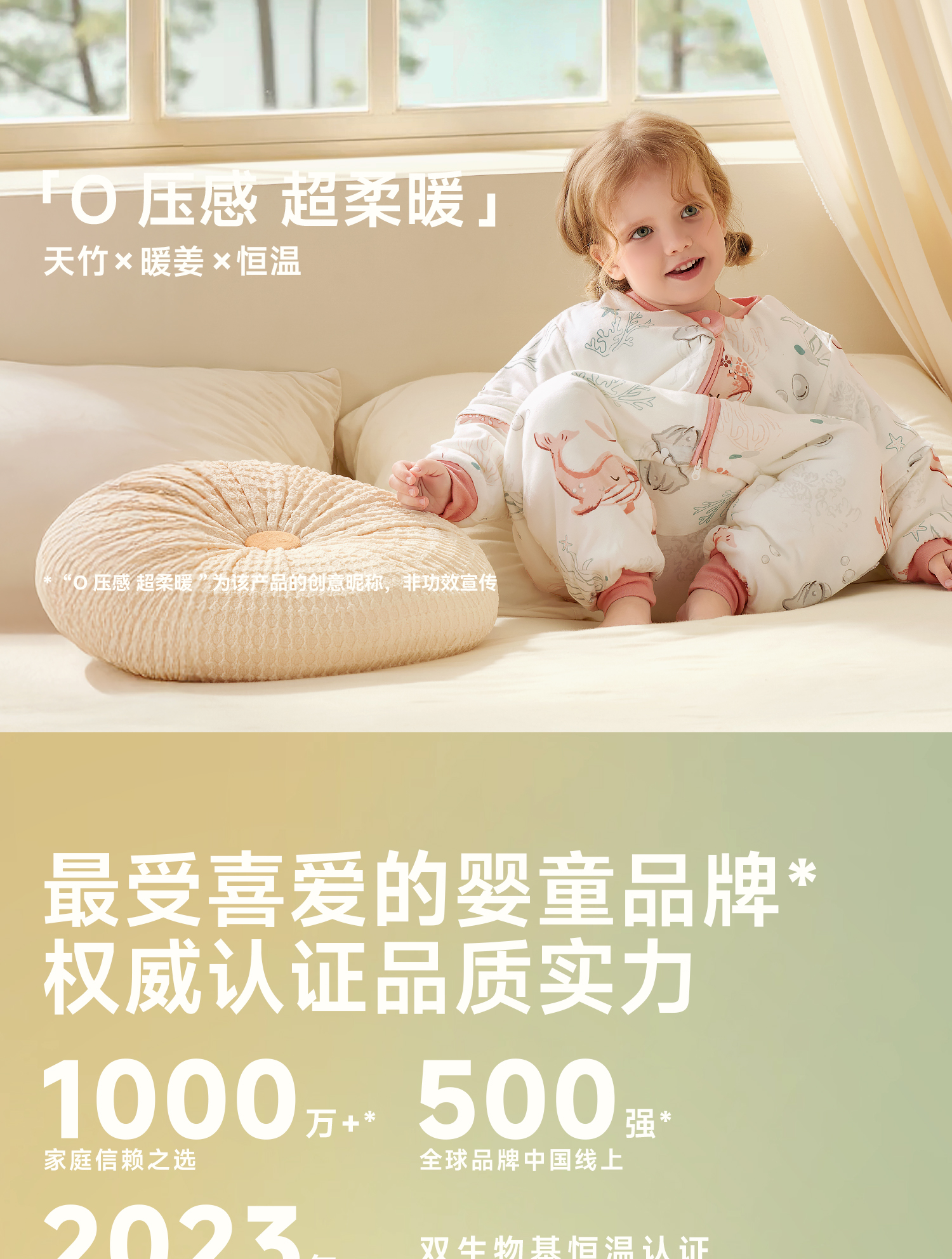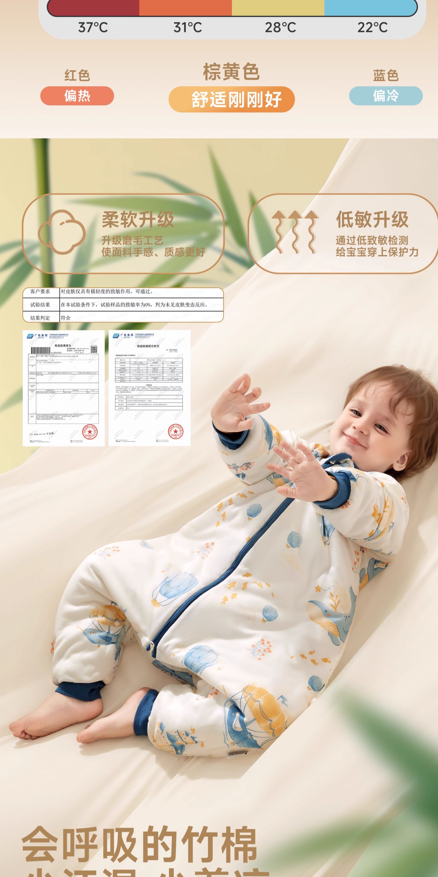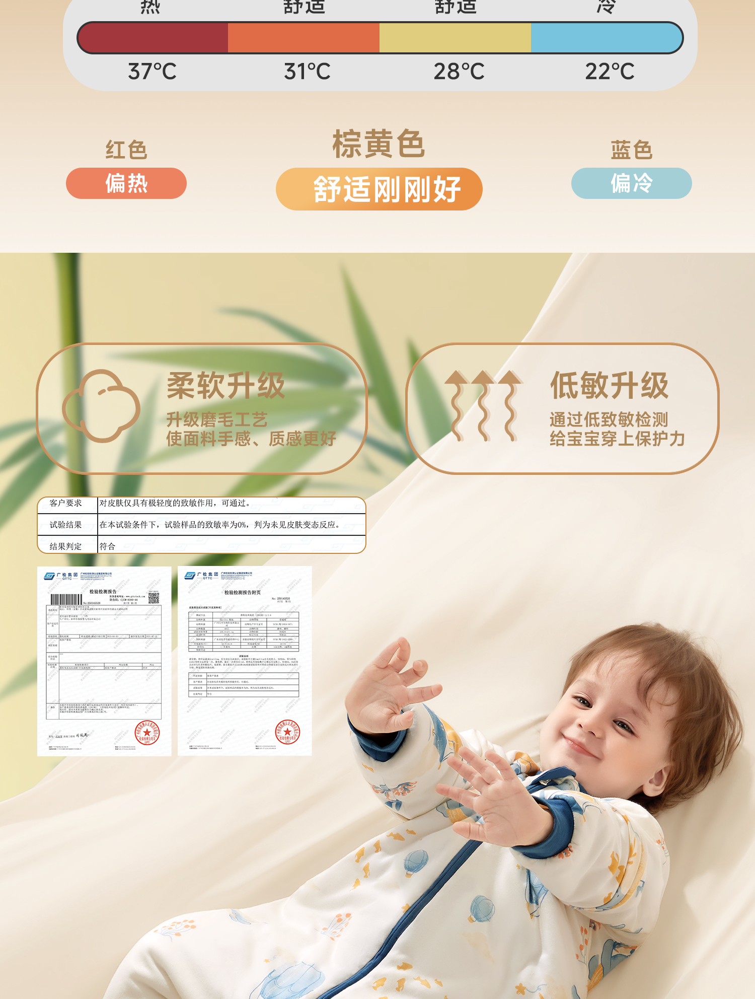 【英氏】爱贝迪拉[暖姜]婴儿睡袋恒温加厚宝宝儿童春秋冬季防踢被四季通用