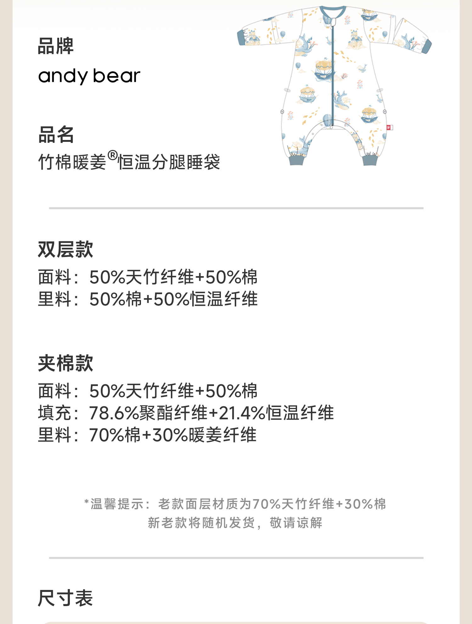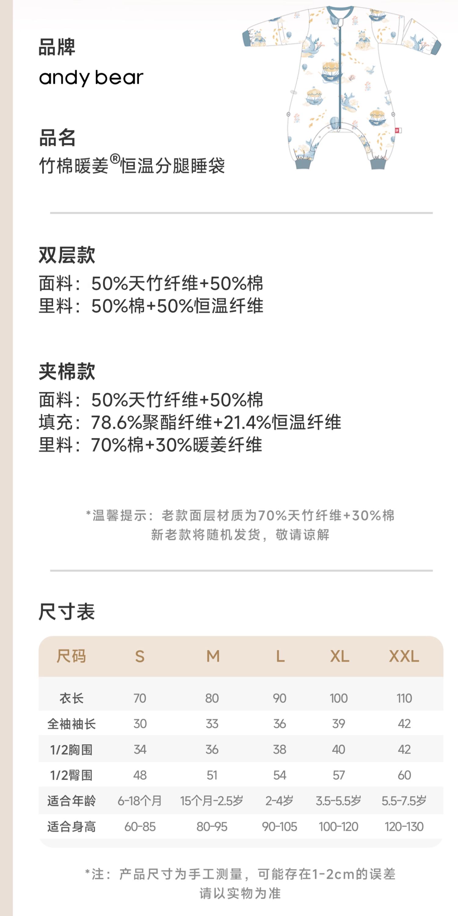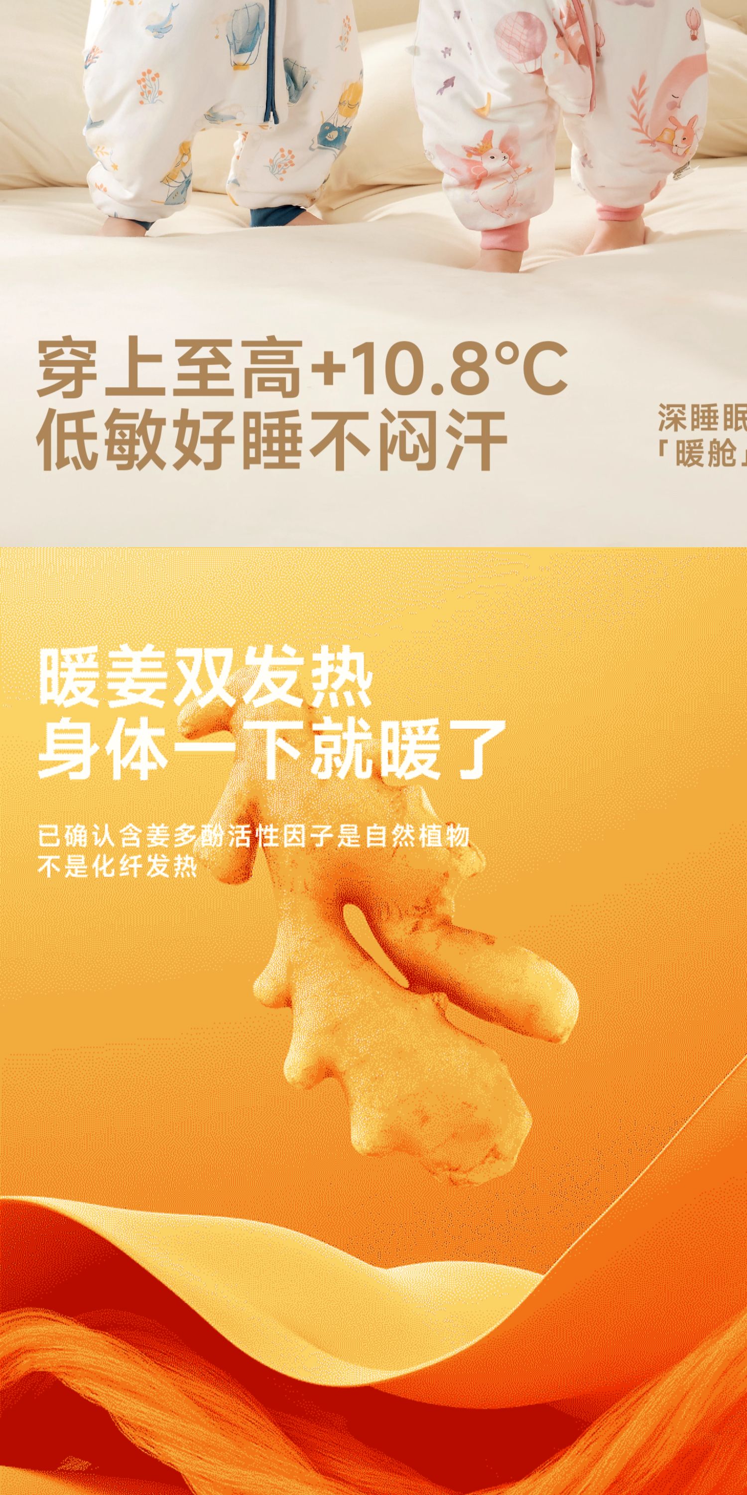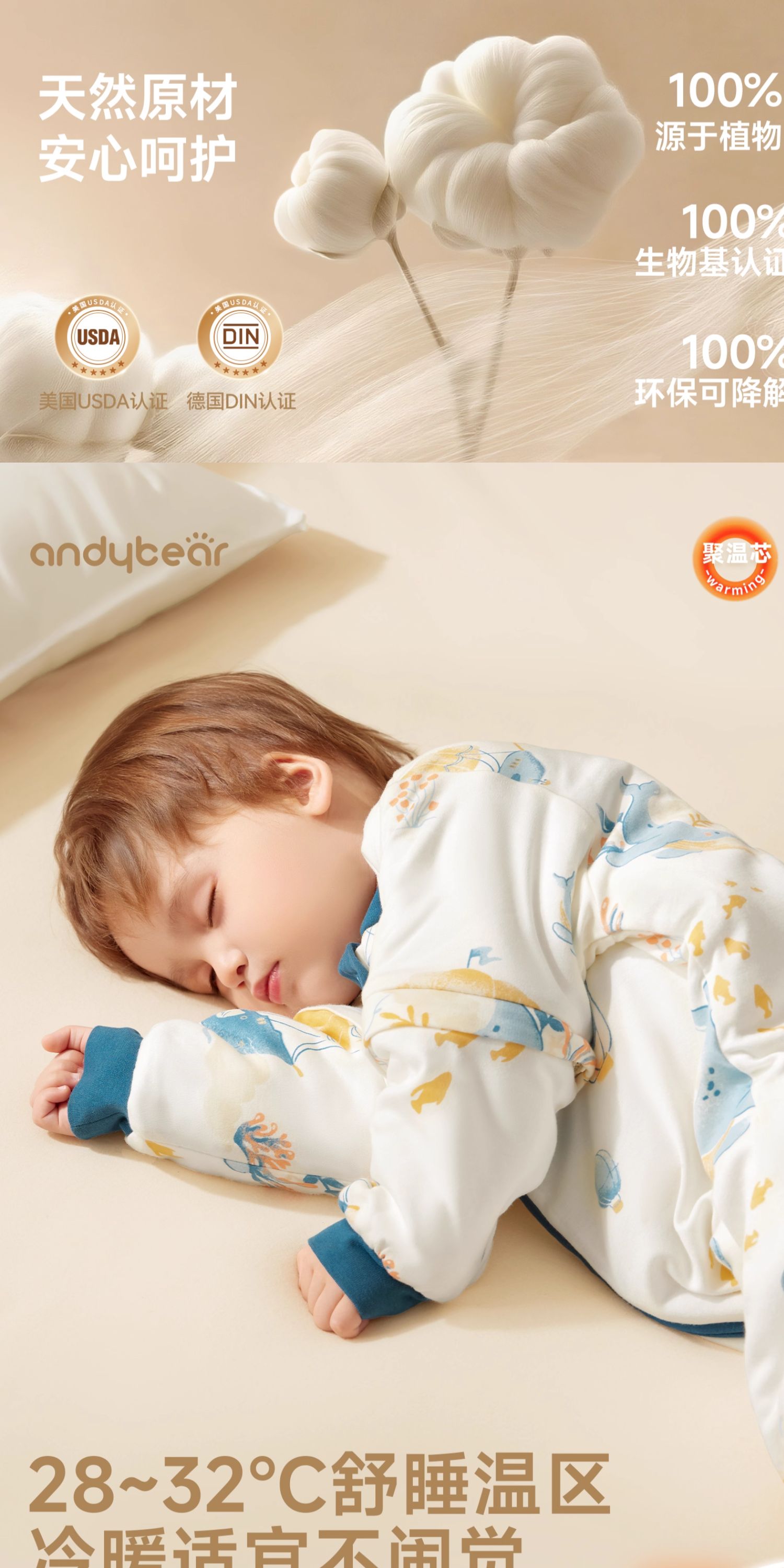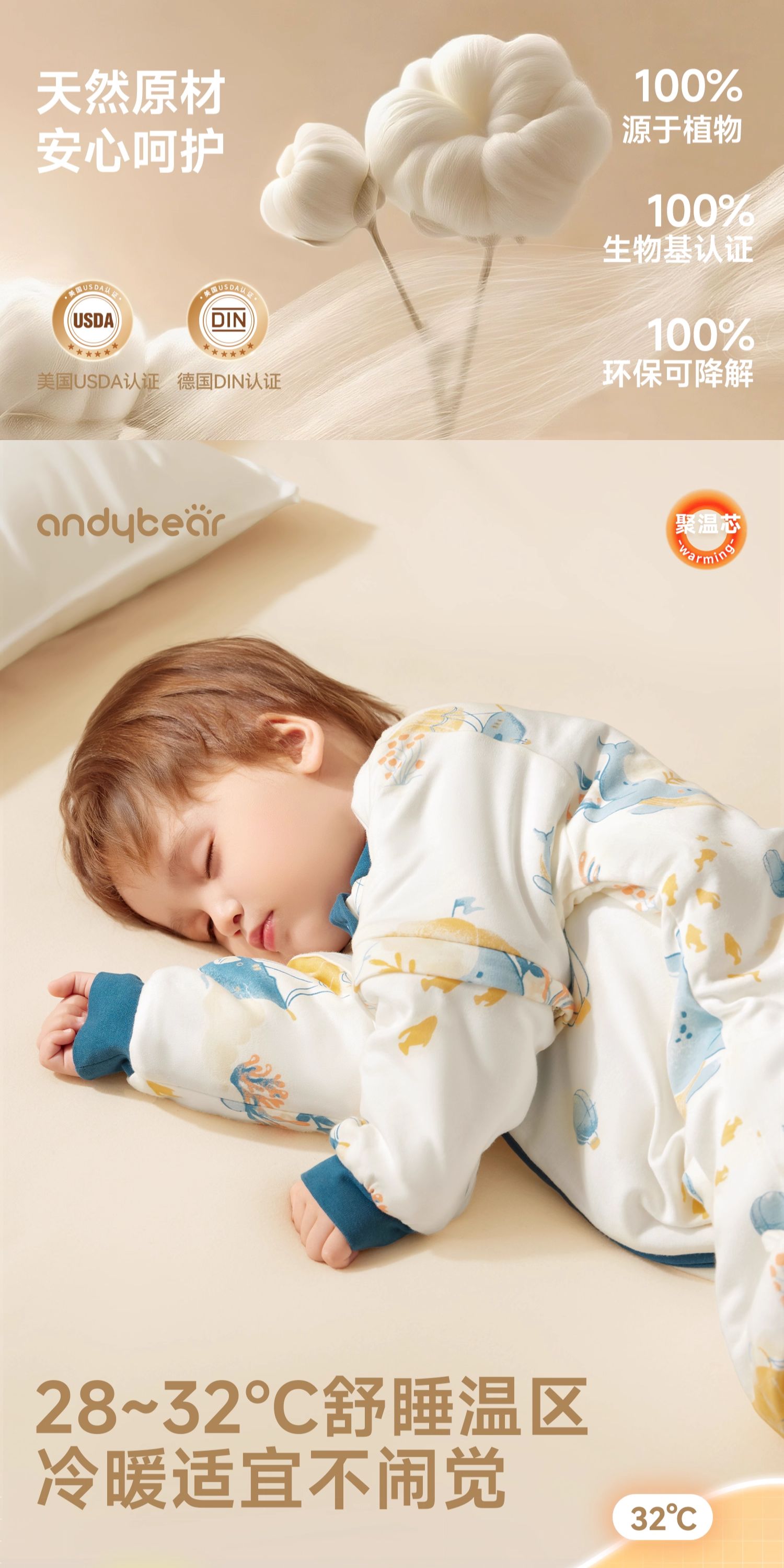 【英氏】爱贝迪拉[暖姜]婴儿睡袋恒温加厚宝宝儿童春秋冬季防踢被四季通用