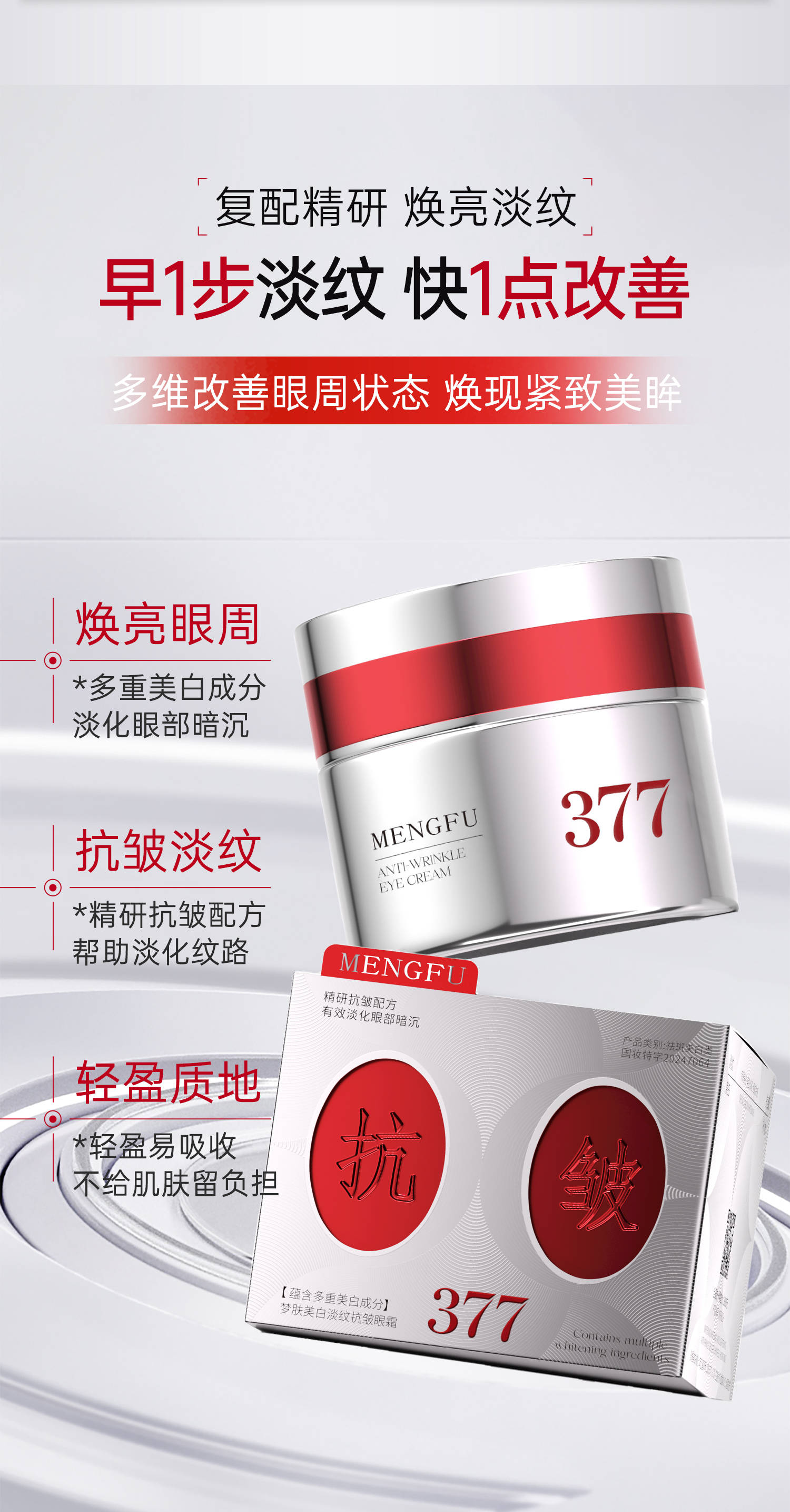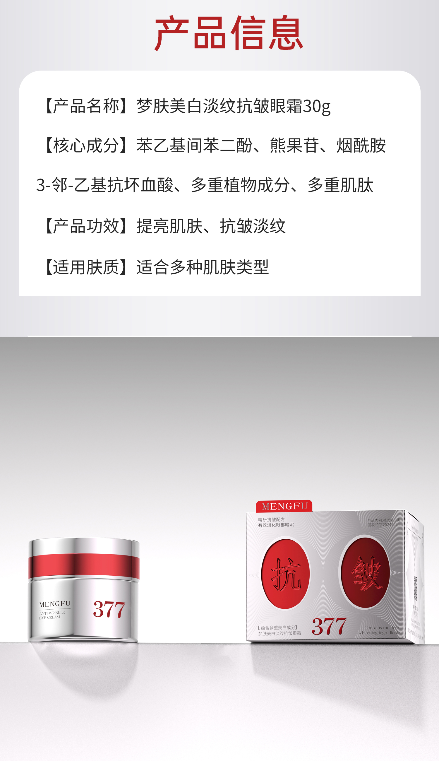 MENGFU梦肤®(电镀瓶)美白淡纹抗皱眼霜30g