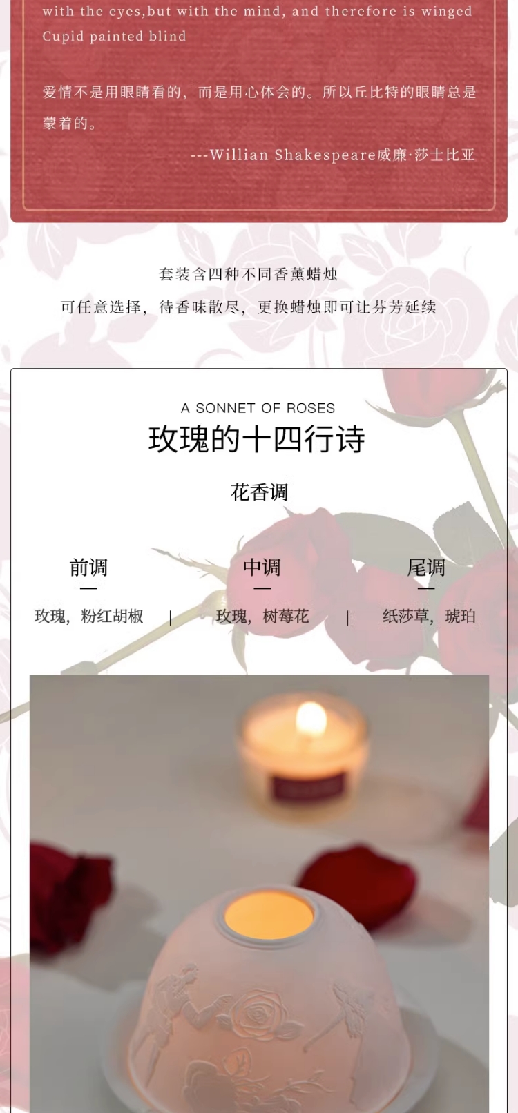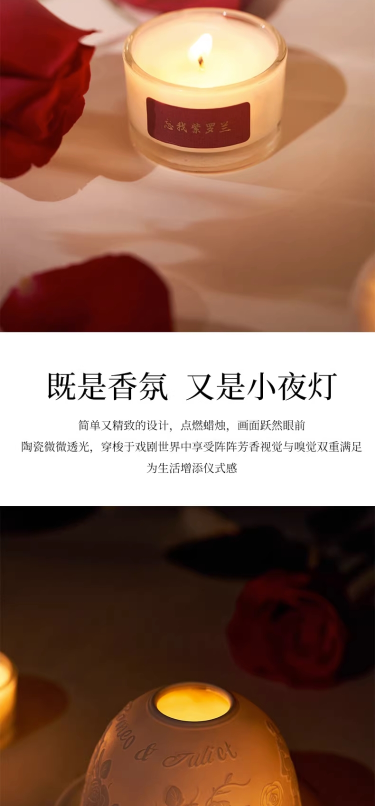 大英博物馆莎士比亚系列 罗密欧与朱丽叶香薰蜡烛 香氛小夜灯摆件(4只蜡烛装)