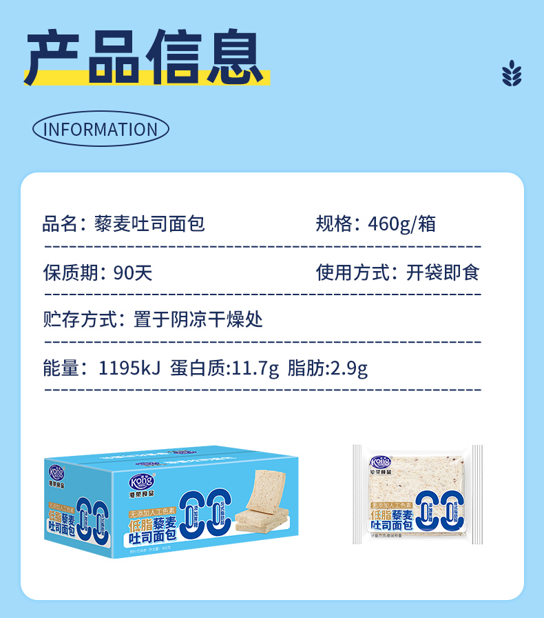 【买一送一】港荣新品上市 蛋皮吐司面包 三重口感 低脂藜麦吐司 松软无边