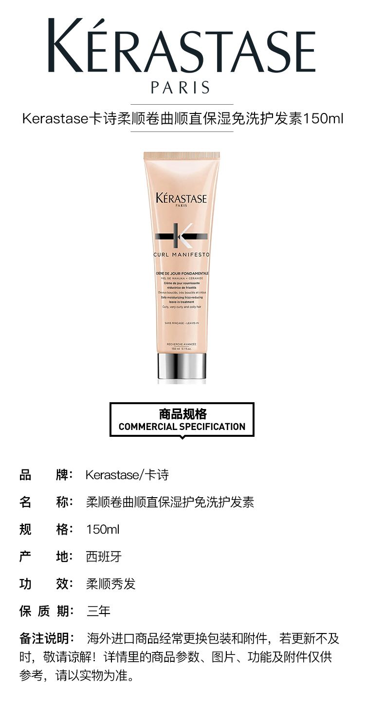 Kerastase卡诗柔顺卷曲顺直保湿免洗护发素150ml