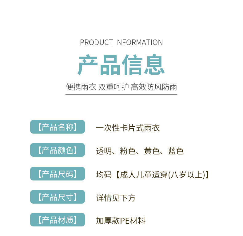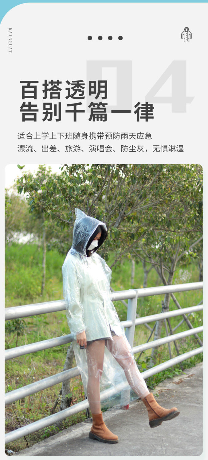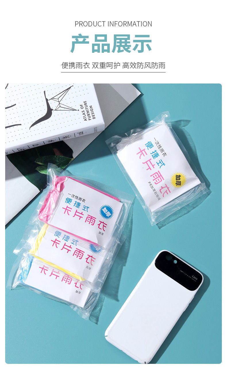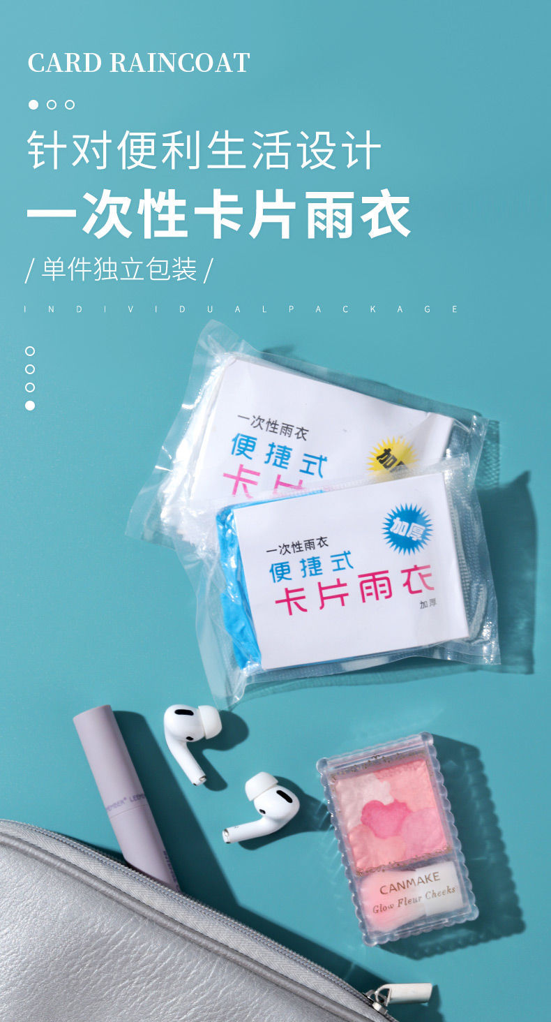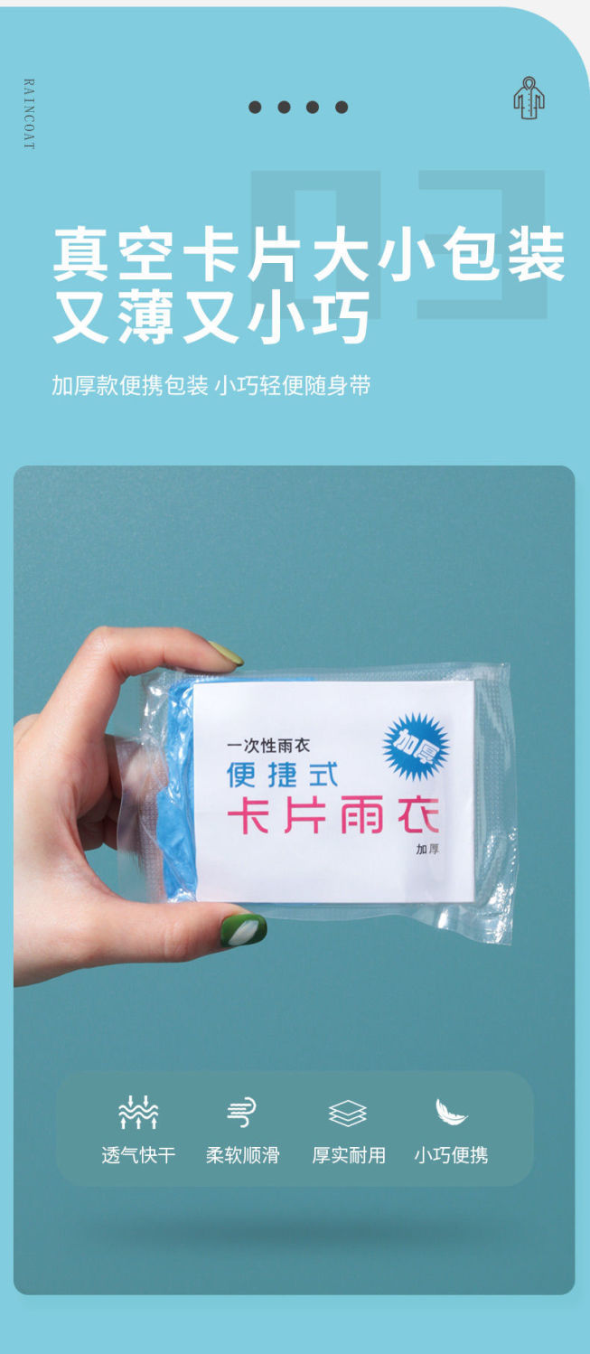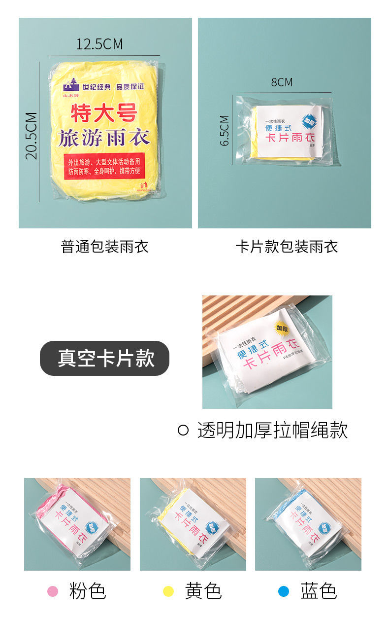 【针对便利生活设计】一次性雨衣真空压缩卡片包装,户外漂流旅游成人儿童加厚款均码雨披