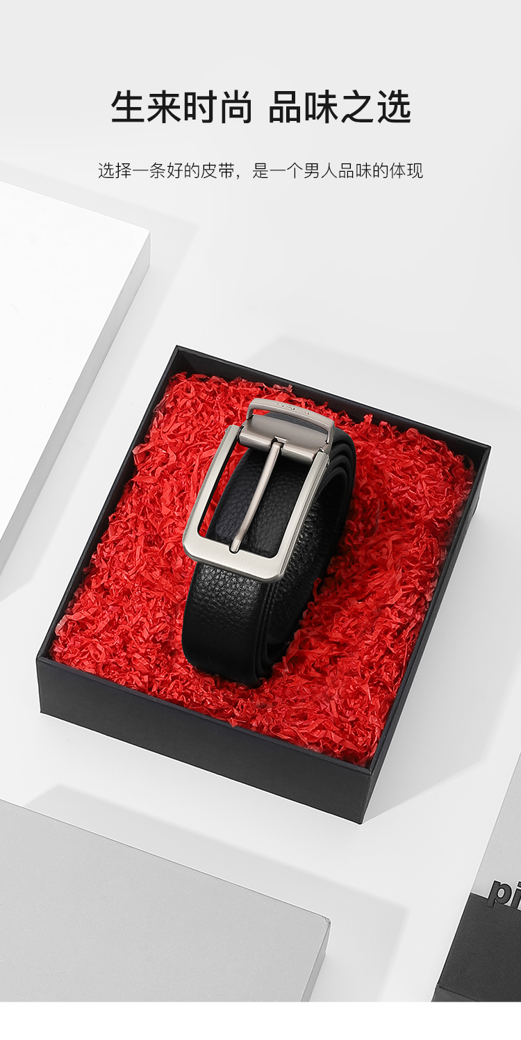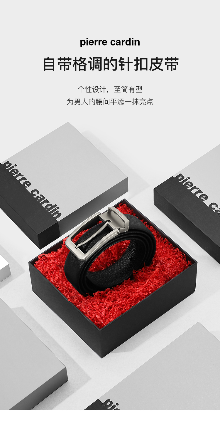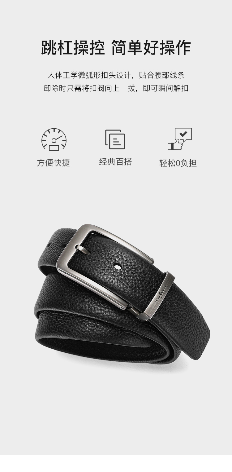 皮尔卡丹皮带男真皮商务都市自动扣男士腰带高级感牛皮男式裤腰带