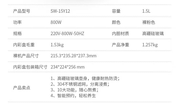 苏泊尔(SUPOR) ZMD安心系列 养生壶 1.5L 高硼玻璃 多功能 智能预约 全自动加热 煮茶壶煮茶器 SW-15Y12