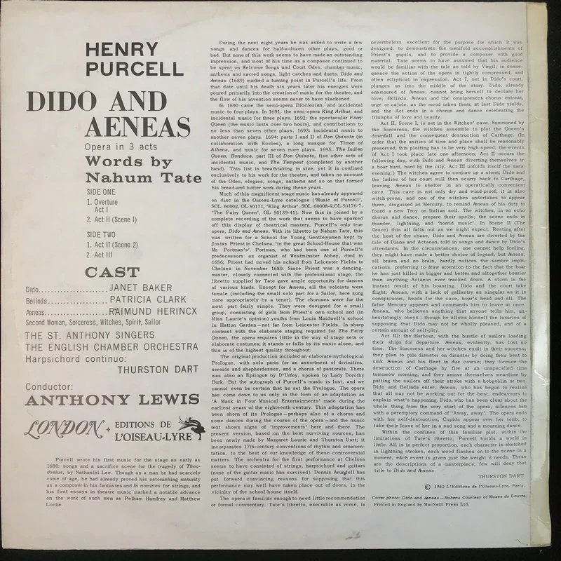 LP黑胶唱片 普赛尔《狄朵与埃涅阿斯》英国室内乐团 安东尼·刘易斯指挥