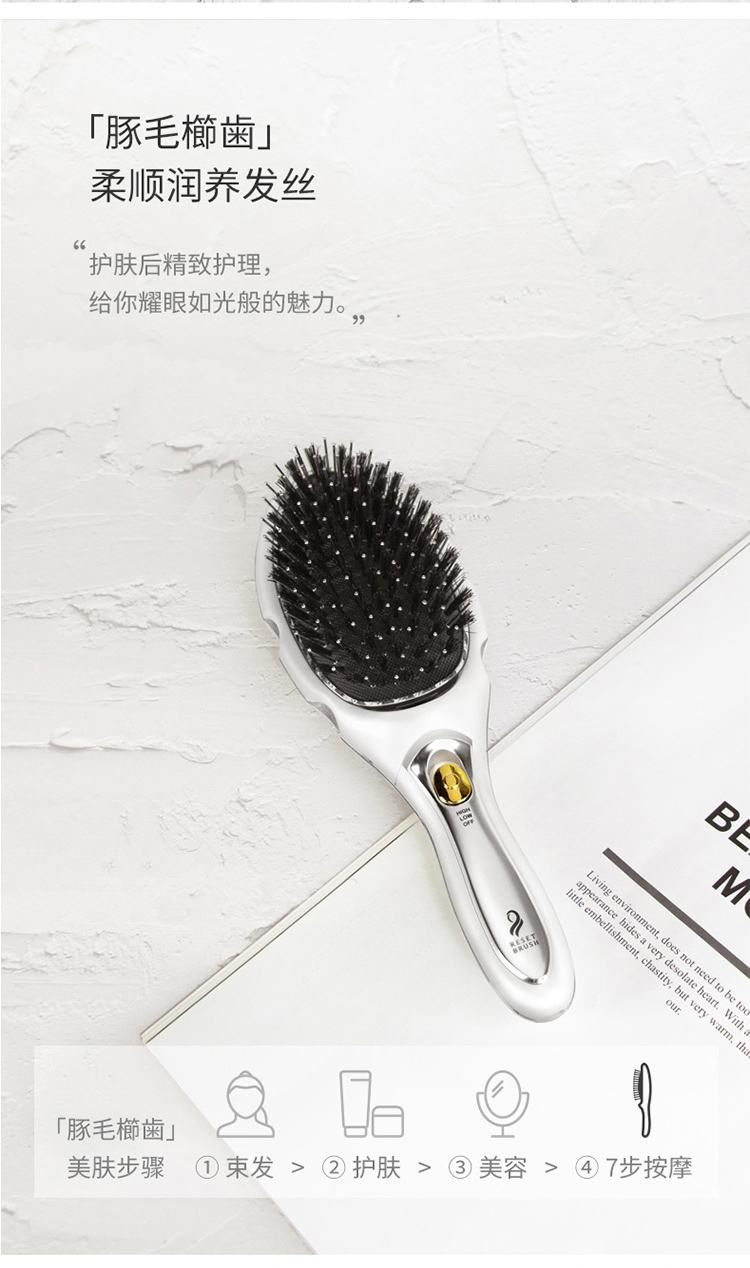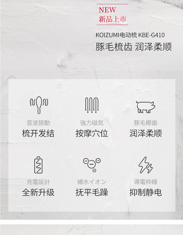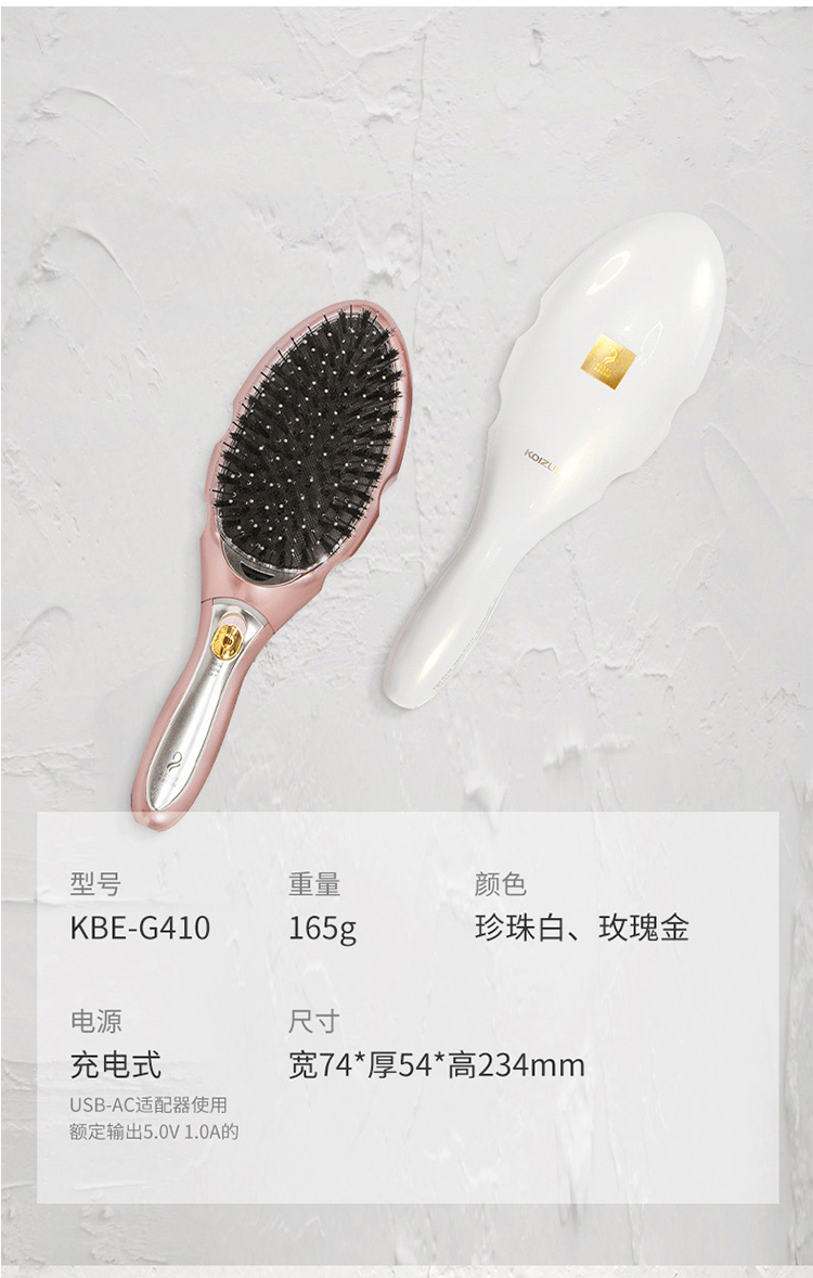 日本小泉成器KOIZUMI猪鬃毛梳豚毛负离子电动梳按摩气垫梳子女