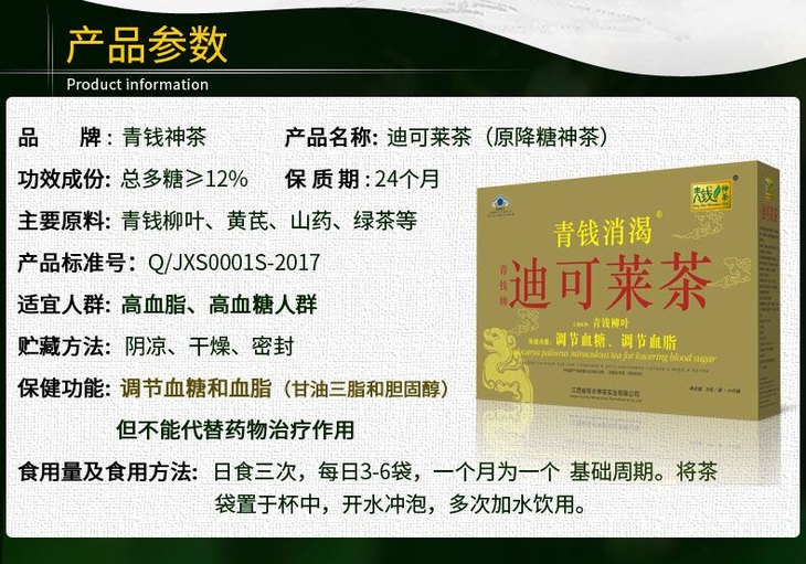 青钱柳茶 迪可莱茶原青钱柳降糖茶降糖神茶3g*60袋/盒保健食品金钱柳茶调节血糖