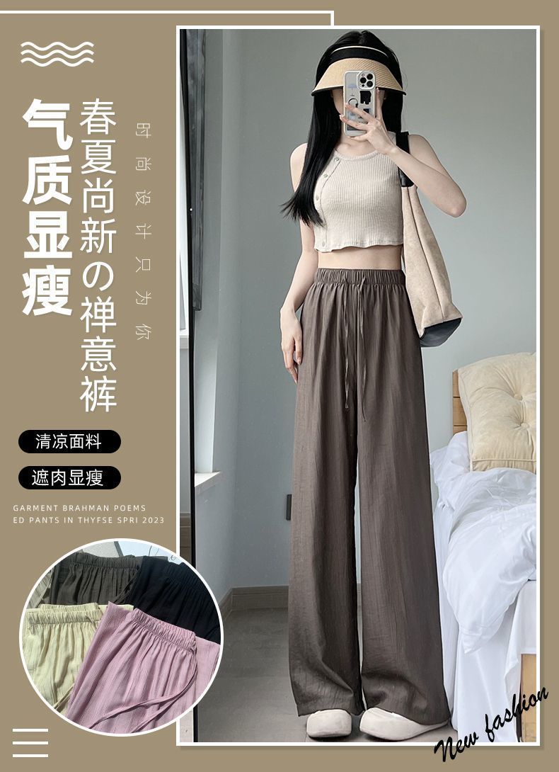 超值两件装【气质显瘦,清爽禅意裤!】冰丝皱阔腿裤女,穿起来非常舒适,让你感受到夏季的清凉。面料采用棉麻山本,自然呼吸,高腰设计修饰身形,休闲日系与禅意相结合,展现慵懒感。-SH