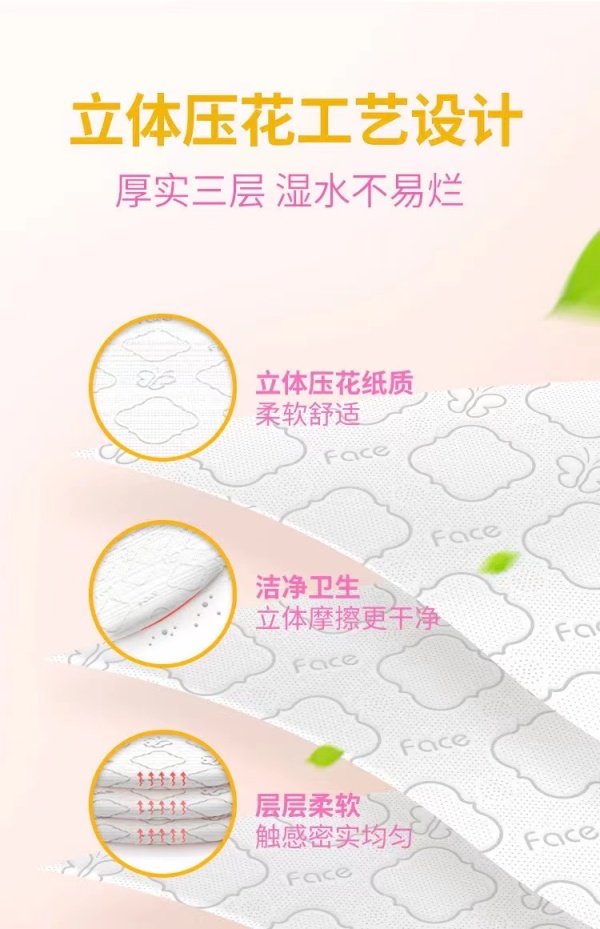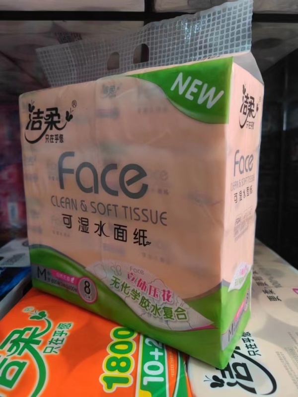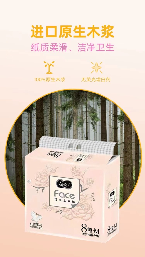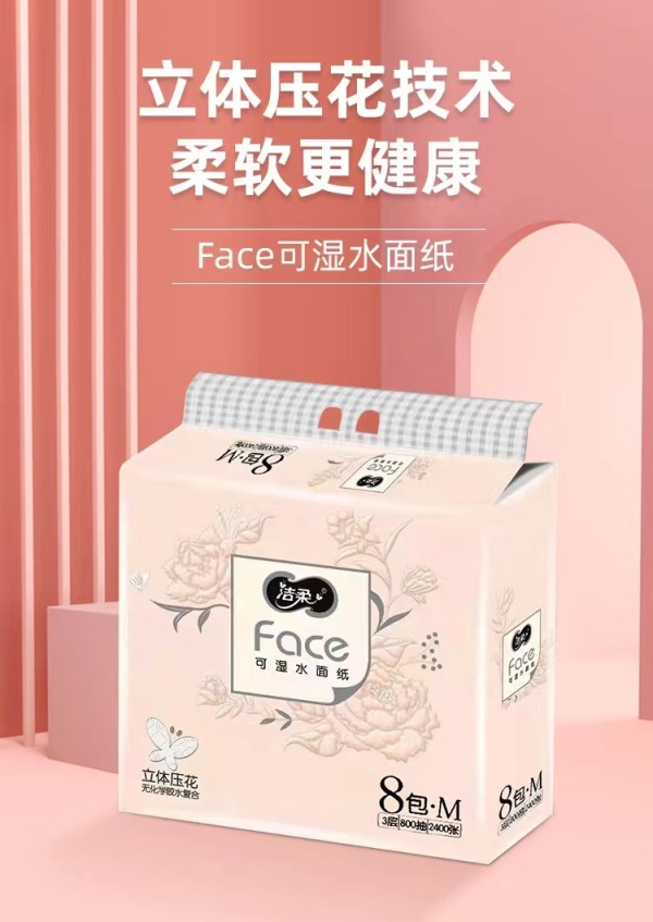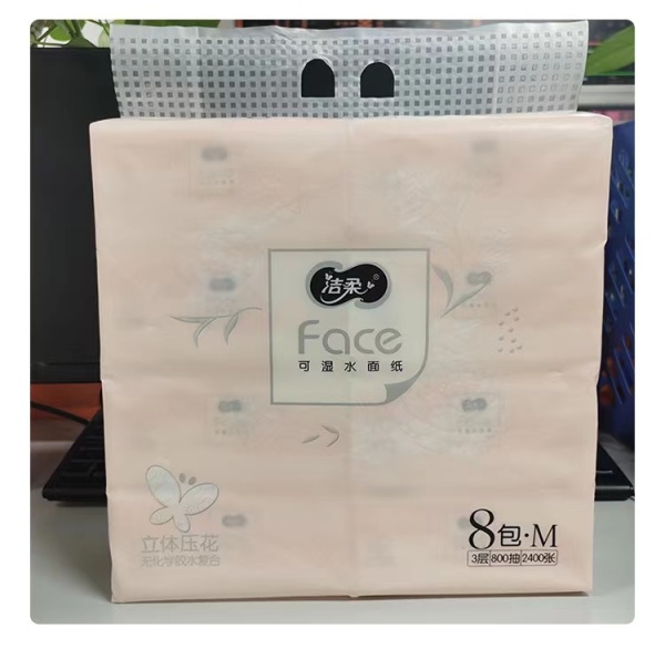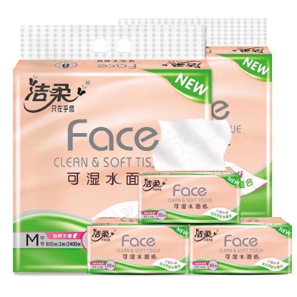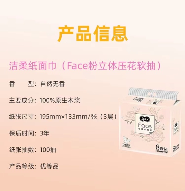 洁柔纸面巾(Face粉立体压花软抽)100抽3层(8包装)(新老包装)