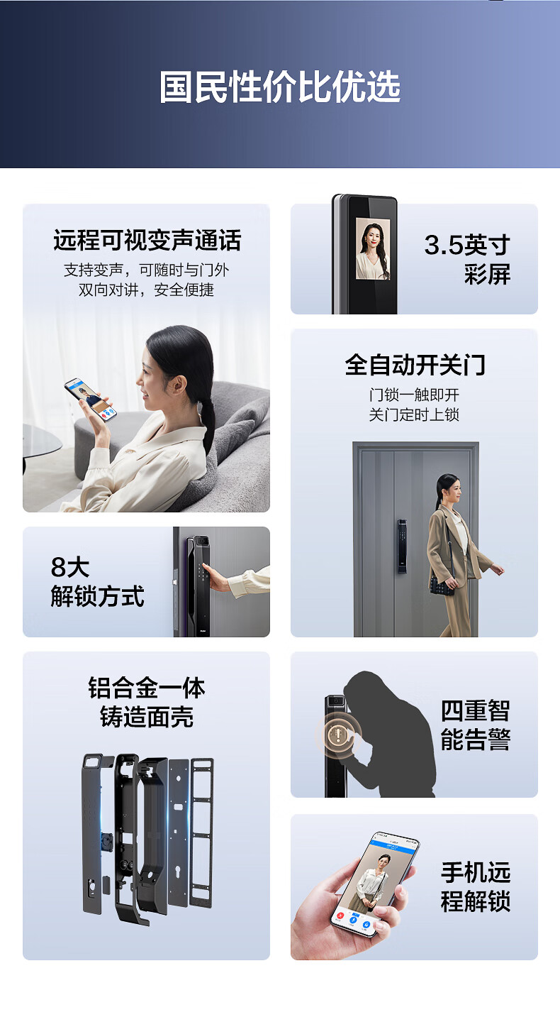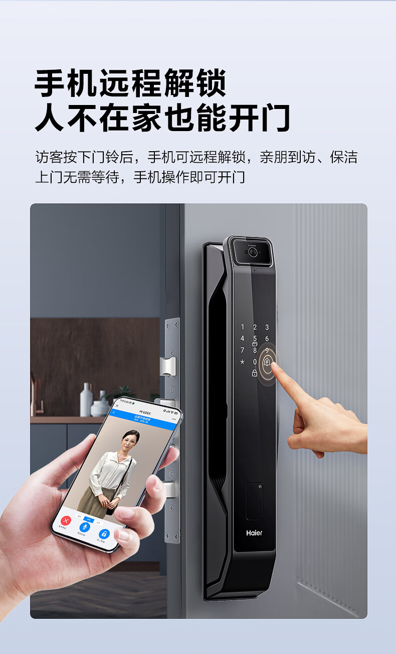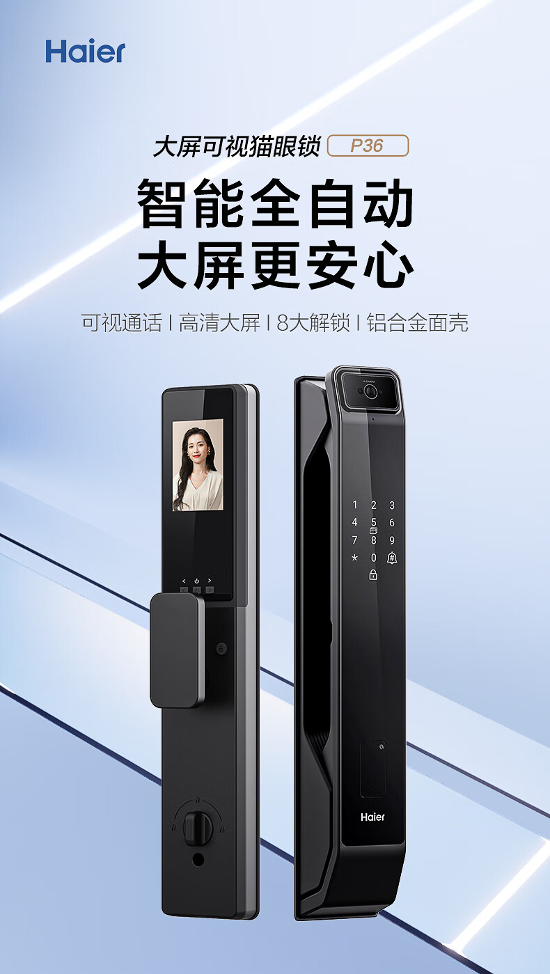 海尔智能门锁P36指纹锁电子锁全自动锁可视猫眼智能门锁密码锁智能锁 手机控制 猫眼大屏【标准锁体】霸王锁体+100元,先咨询再下单!!!