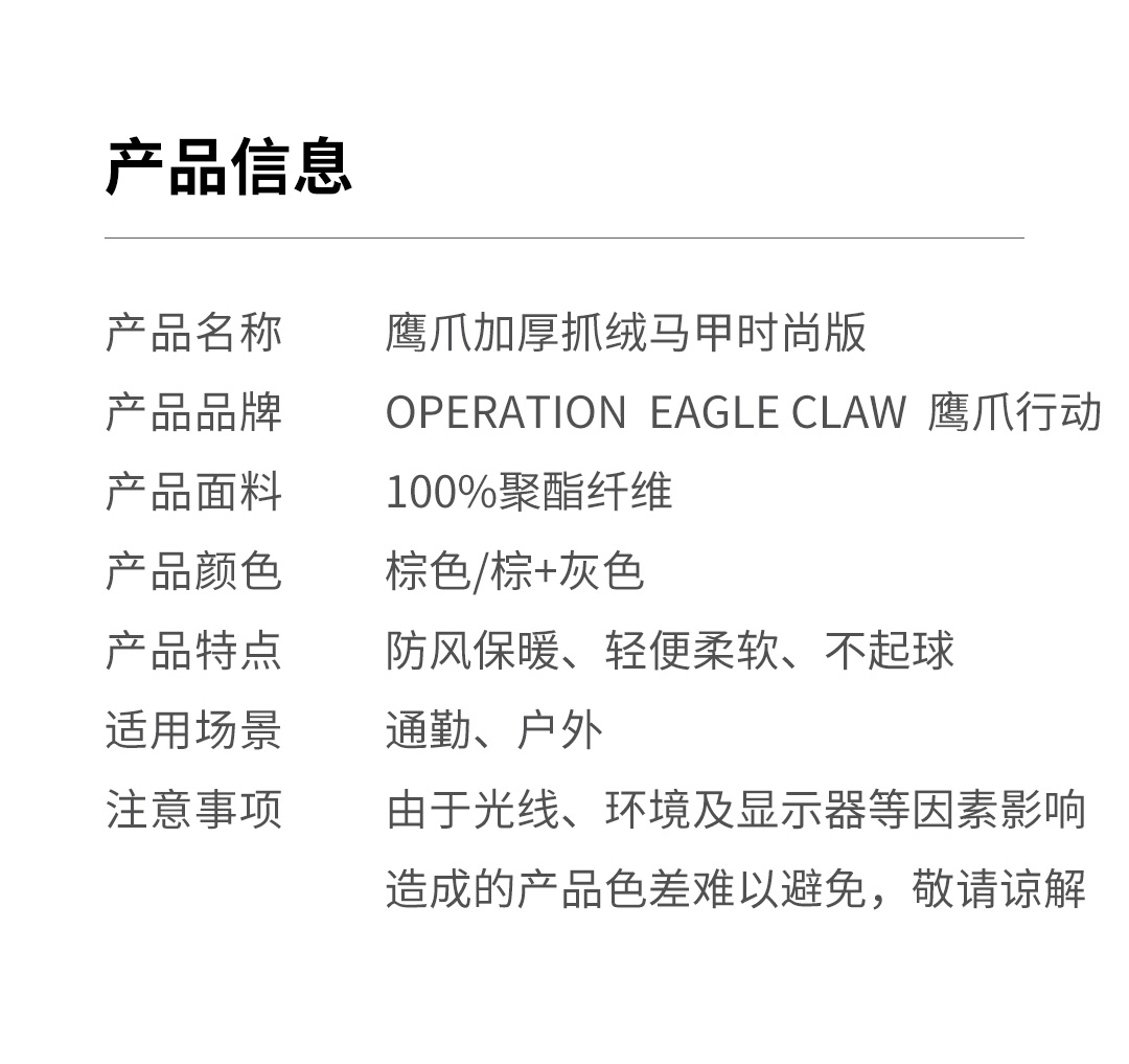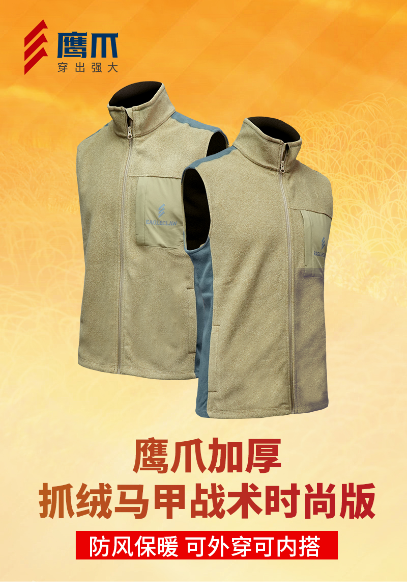 鹰爪加厚抓绒马甲战术时尚版男款秋冬保暖马甲
