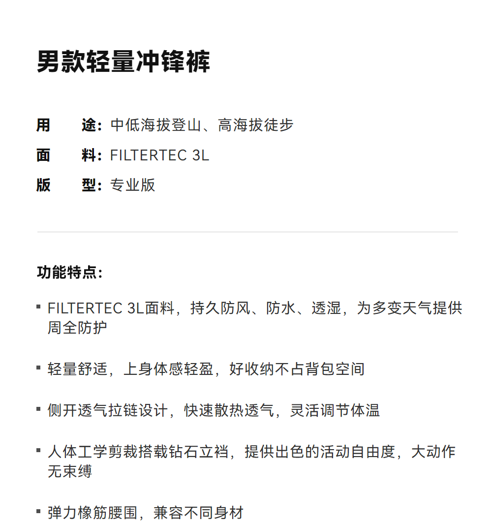 KAILAS凯乐石 男款冲锋裤 KG2511301【Z】