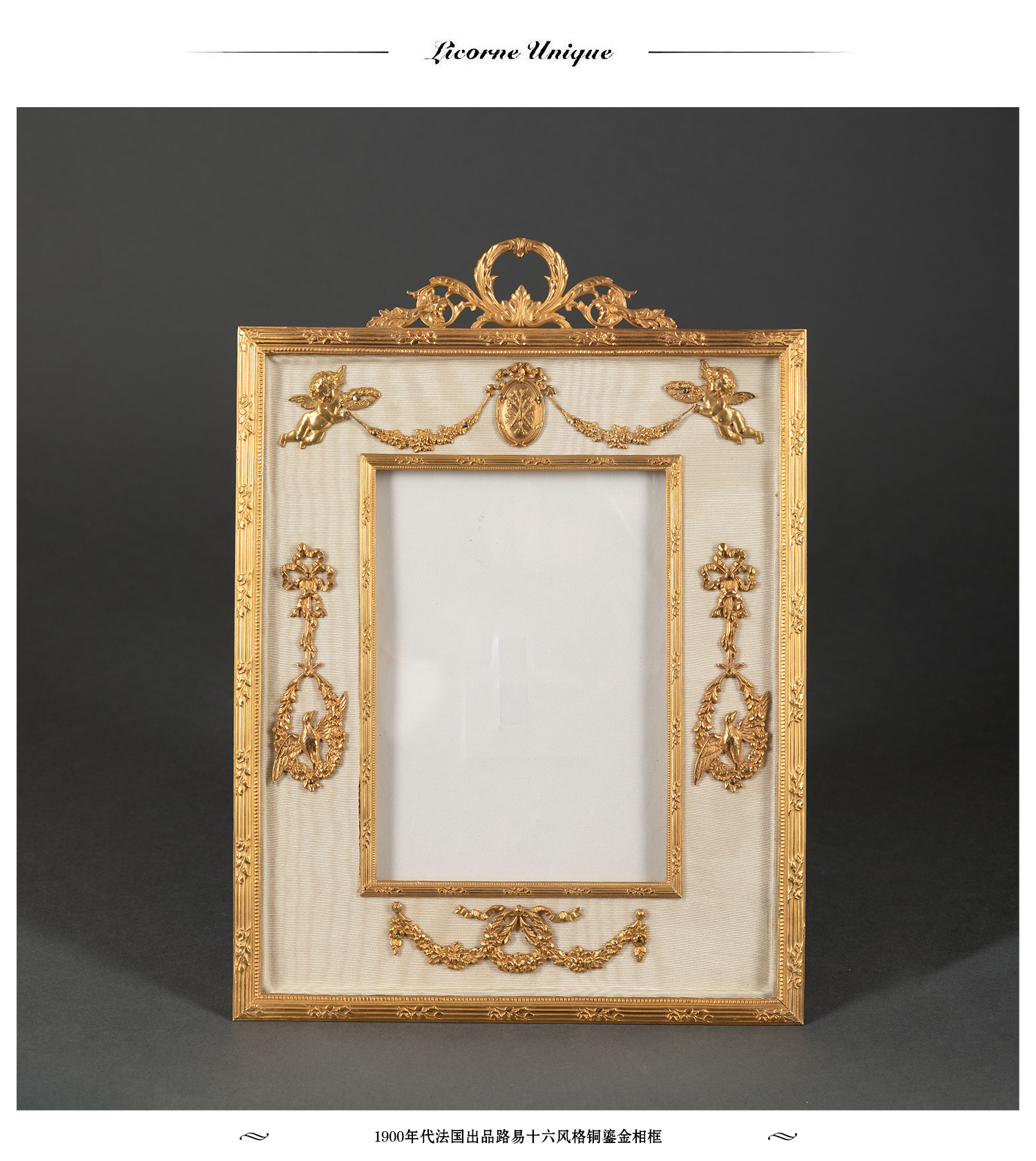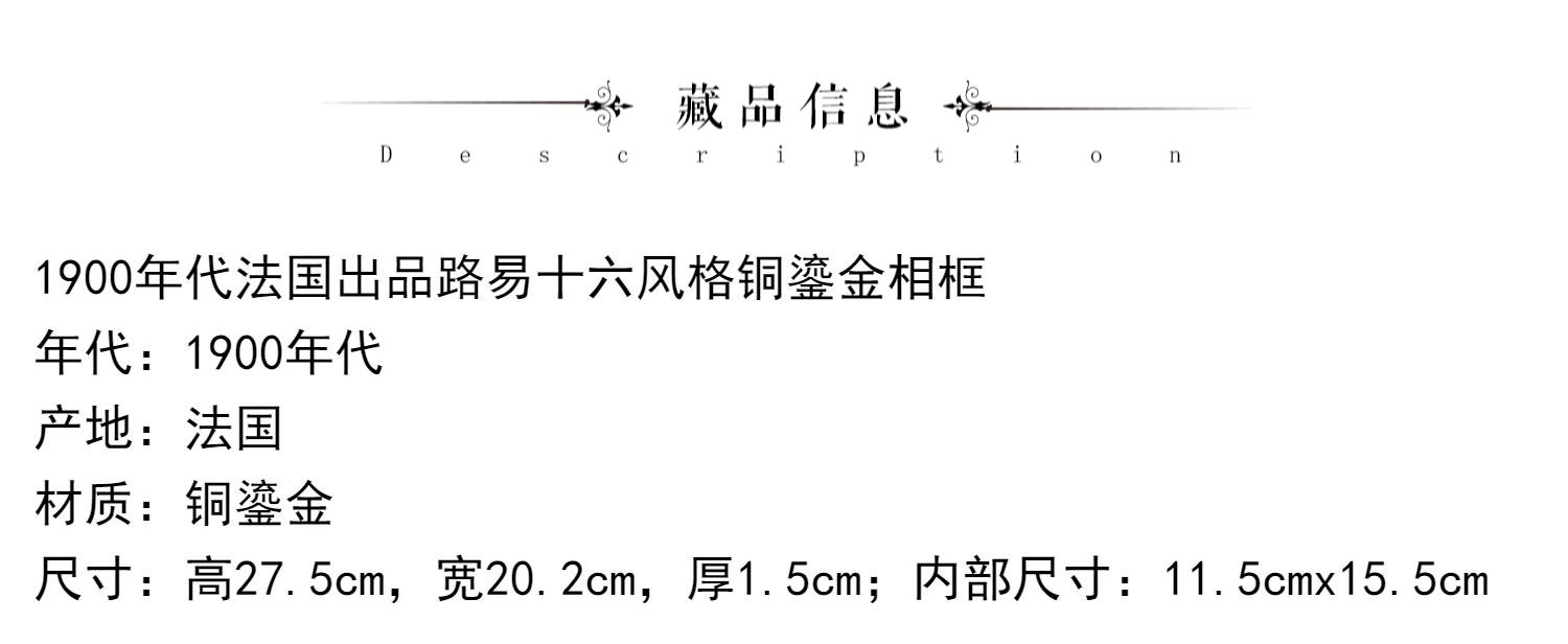 独角鹿西洋古董1900年代法国出品路易十六风格铜鎏金相框
