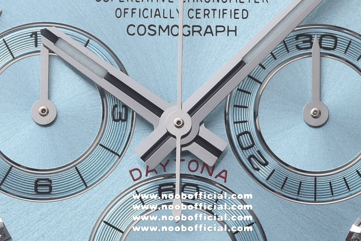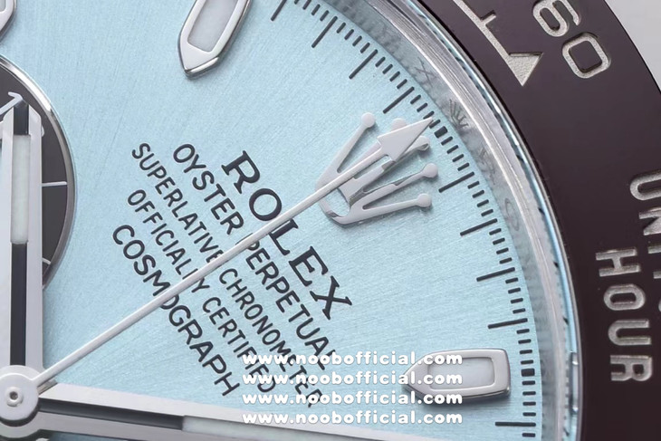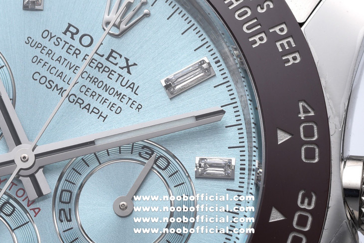 而迪通拿作为劳力士的经典热门款式,从1963年推出以来,虽然一直推陈出新,除了将原有的泵压按钮替换为旋入式计时按钮之外,整体的设计上并未改变过多。作为以精确及时功能和赛车运动的联系而闻名的迪通拿,可以说是专为满足赛车手的需求而设计,同时搭配劳力士标志性蚝式表壳提供优秀的防水性能。新款冰蓝迪的表盘之上,清新高级的冰蓝盘面搭配一体成型的栗棕色陶瓷表圈,抗腐蚀性和防刮蹭的基础上十分美观且具有高辨识度。值得一提的是,这款冰蓝迪依旧延续冰蓝盘配铂金表壳的特征,陶瓷圈被950铂金所包裹,这种嵌入式的陶瓷表圈算得上是劳力士十分重大的变革之一,纤细精致的同时也能够极大限度的减少陶瓷表圈因外力而受到的损伤。40毫米表径的铂金材质表壳经过抛光打磨,可以说是从外到内都极尽奢华之感。