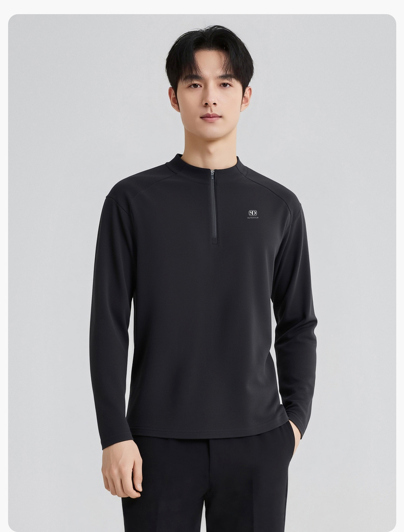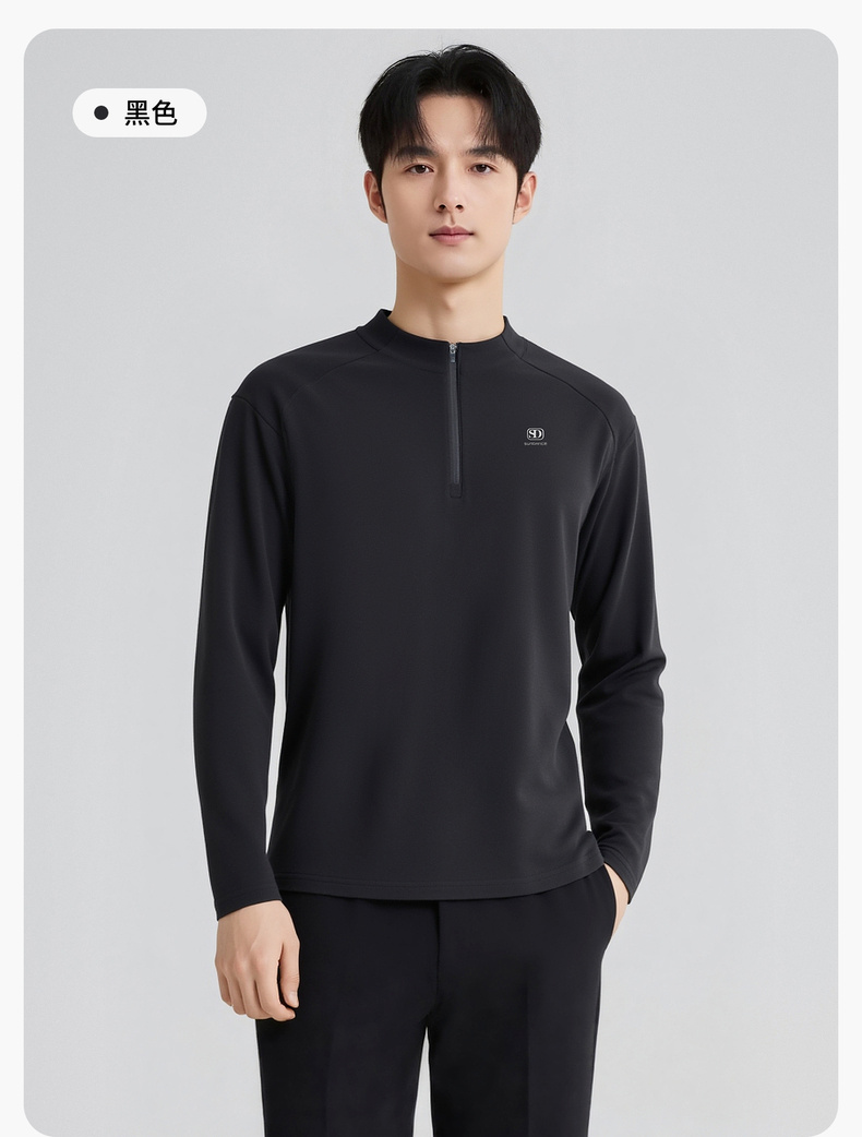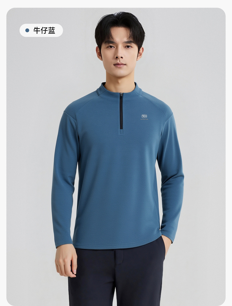 圣得西2025年秋季新款双面防德绒半拉链男士针织休闲百搭套头卫衣
