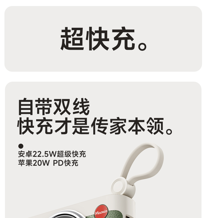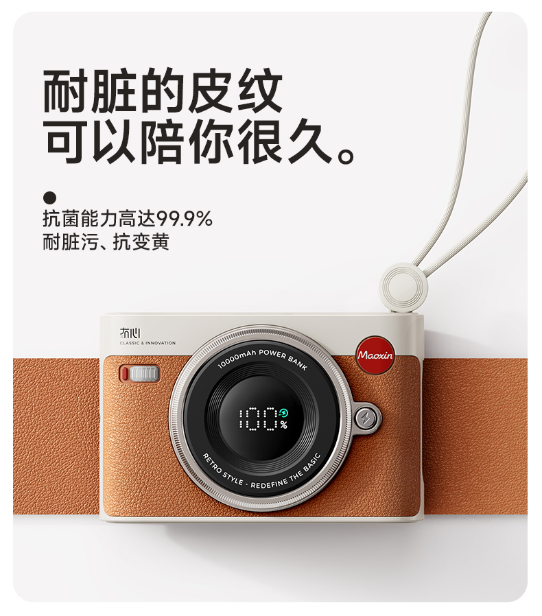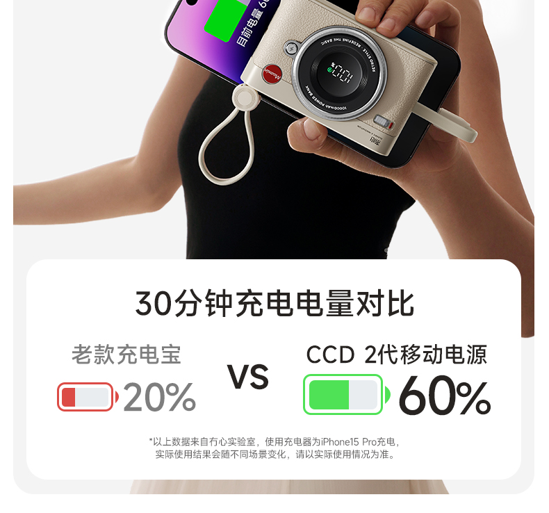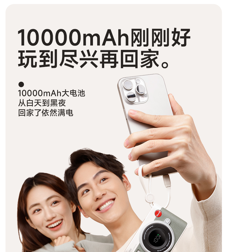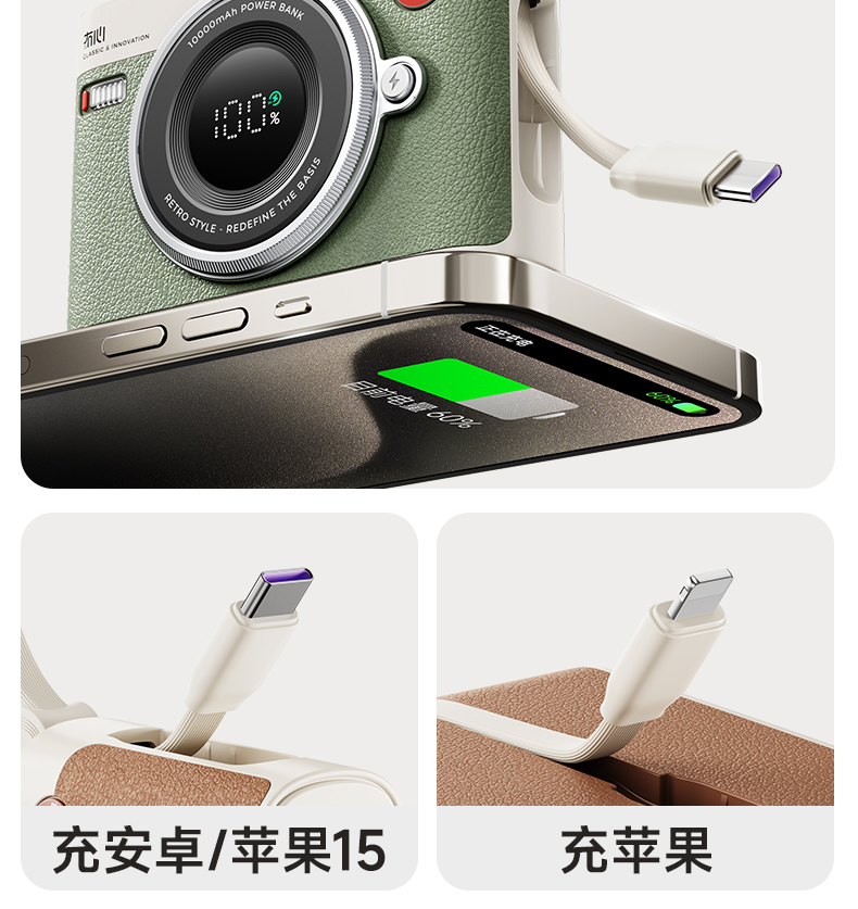 【3C认证仅口红大小】冇心复古CCD 2代充电宝 超迷你超快充超轻盈 自带安卓/苹果双线快充 3口可同时充 10000mAh大电池CP012