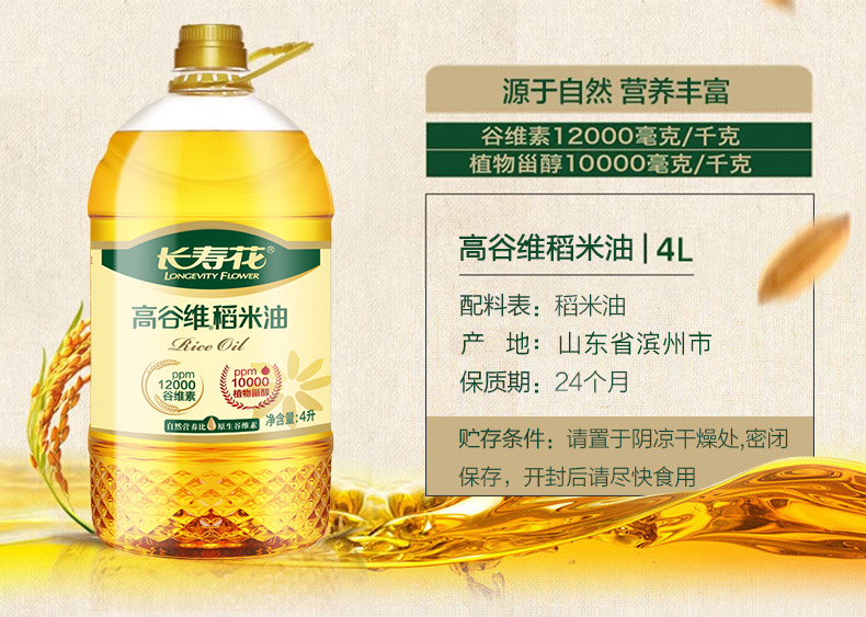 长寿花高谷维稻米油4L*1瓶食用油烘焙油食用米糠油含谷维素