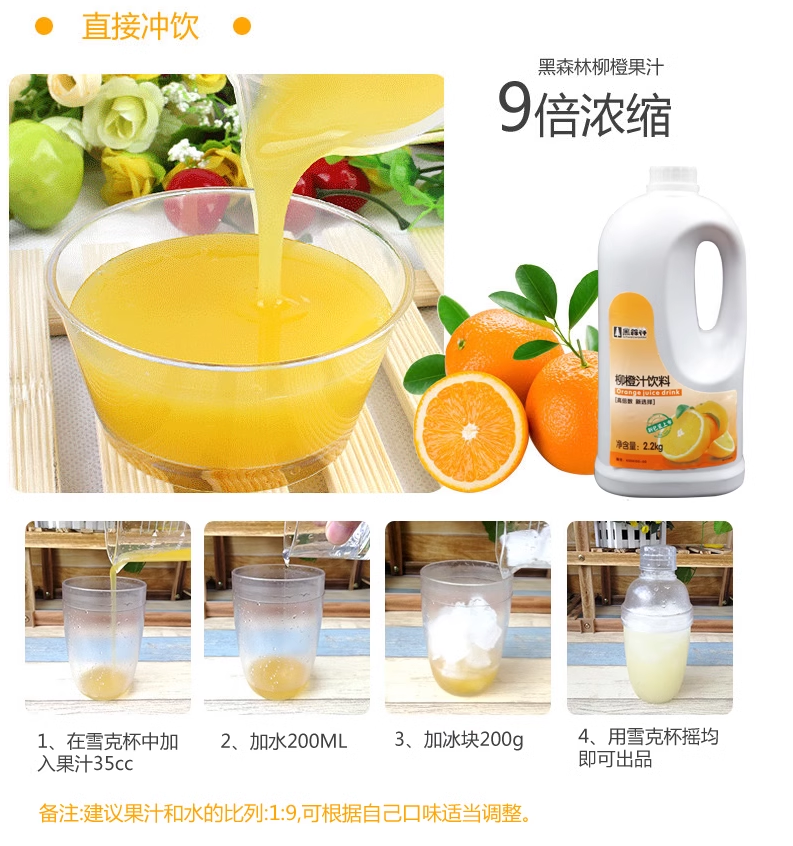 2.2kg 黑森林高倍数浓缩果汁饮料 9倍浓缩 柳橙苹果水蜜桃芒果荔枝风味饮料浓浆