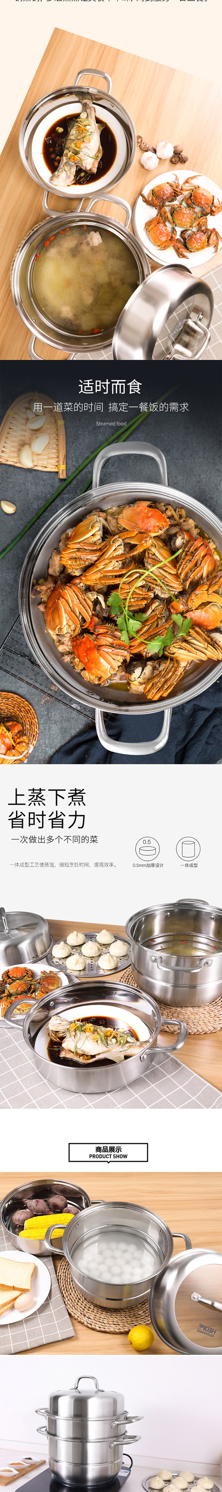 康巴赫/KBH不锈钢三层大容量蒸锅家用多层28cm电磁炉燃气通用锅
