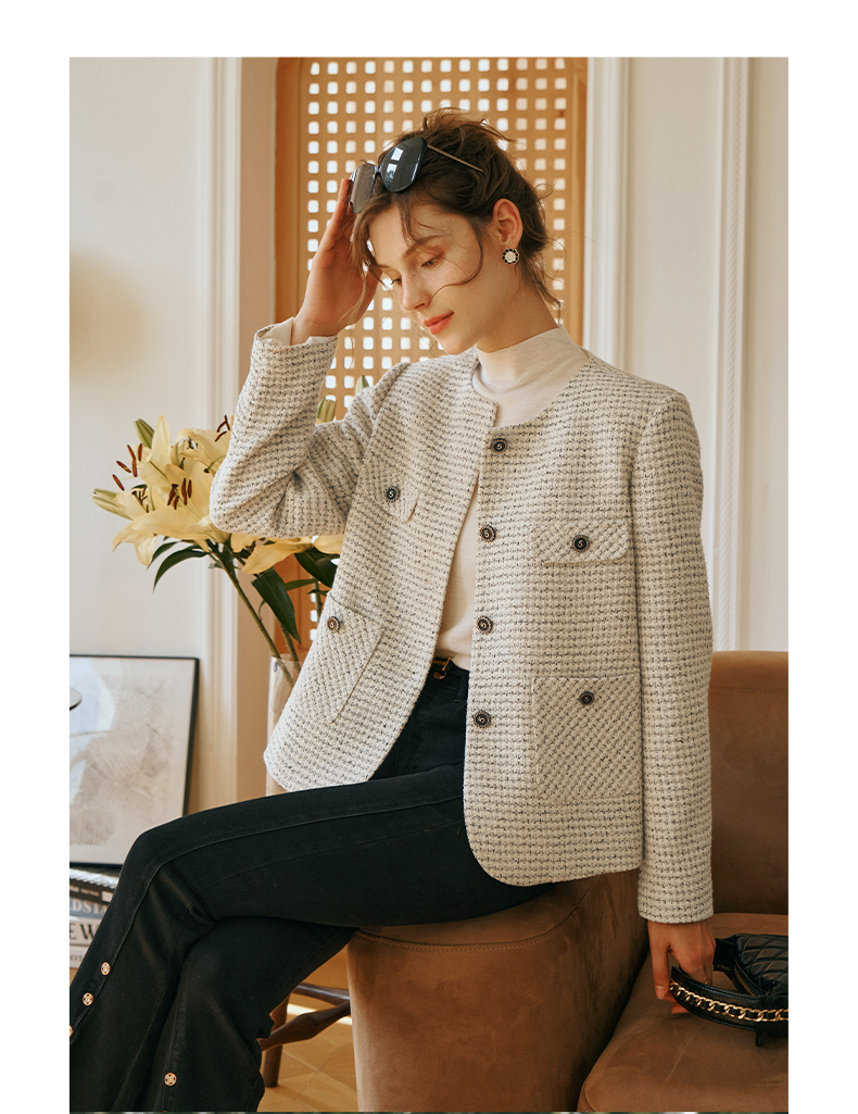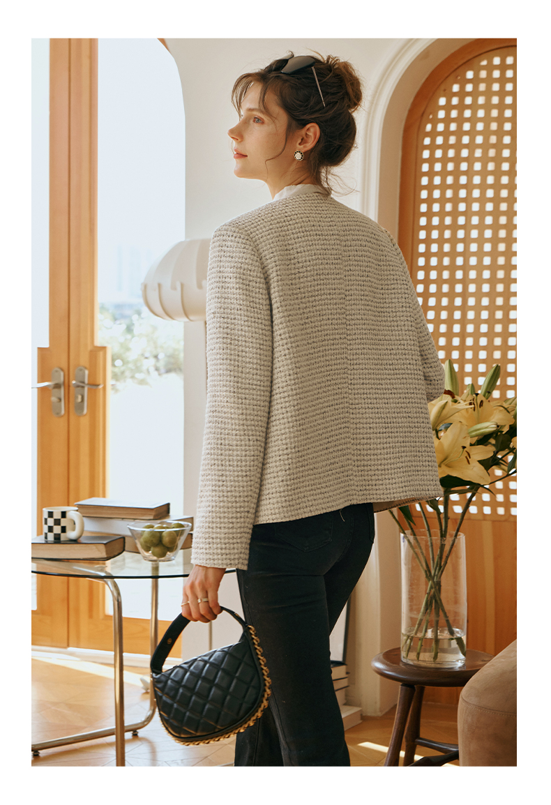 OLrain欧芮儿小香风短外套女初秋2023新款宽松气质设计感减龄上衣