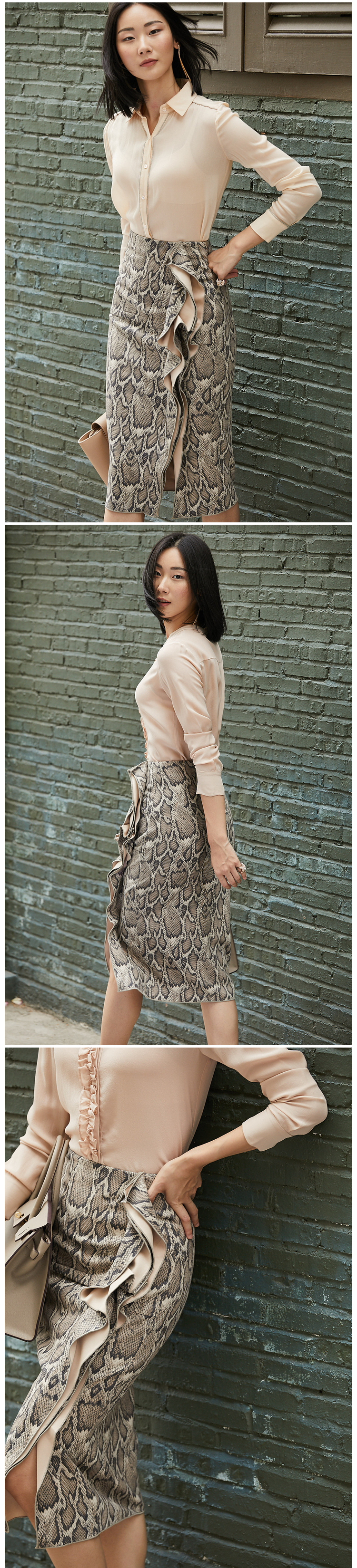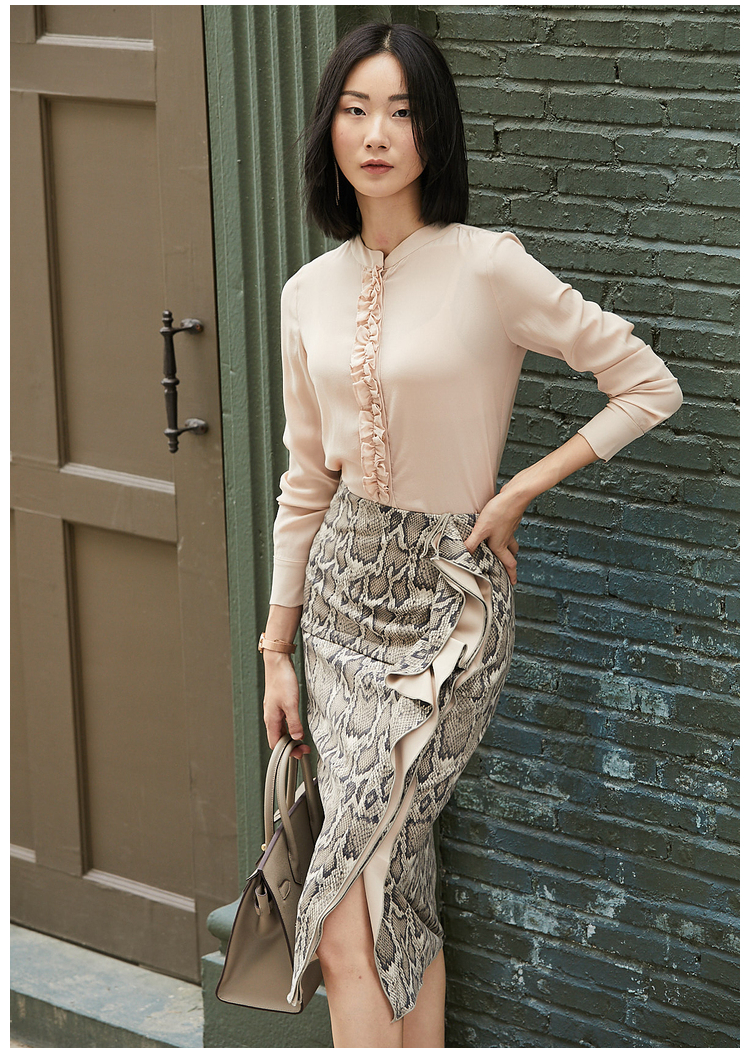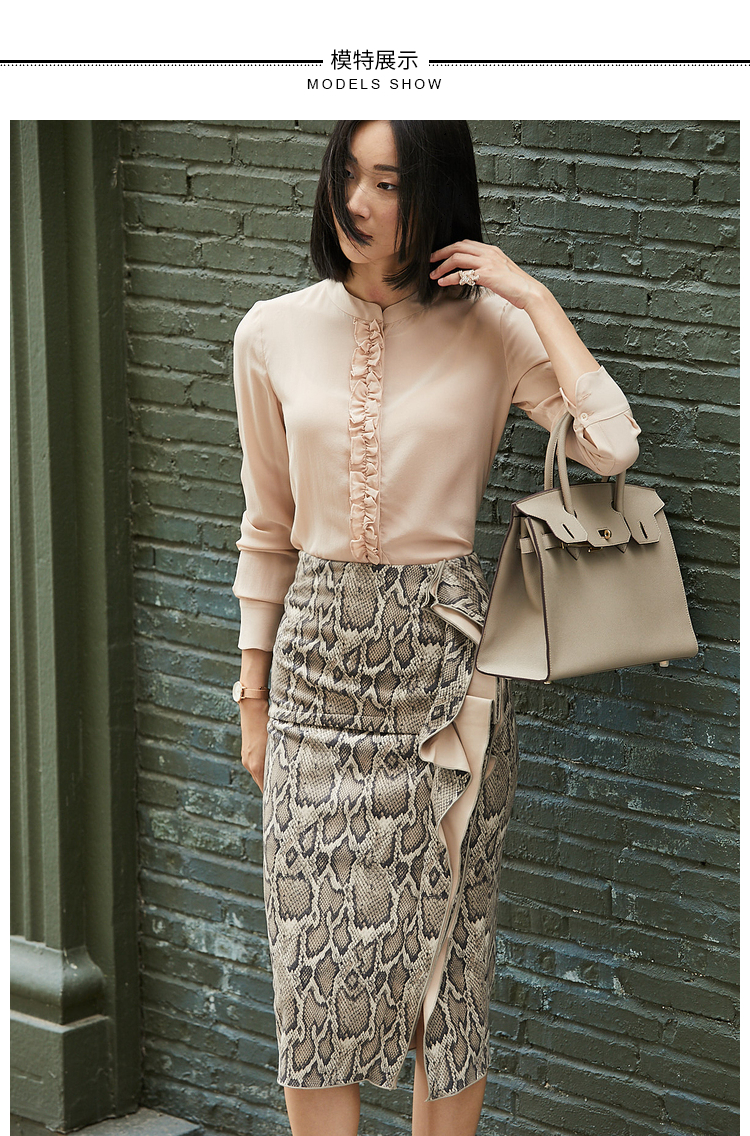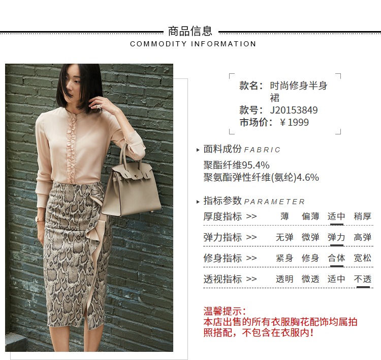 孤品-J20153849A颈袖添香冬款OL时尚修身气质蛇纹中长款半身裙子新款包臀裙J20153849A