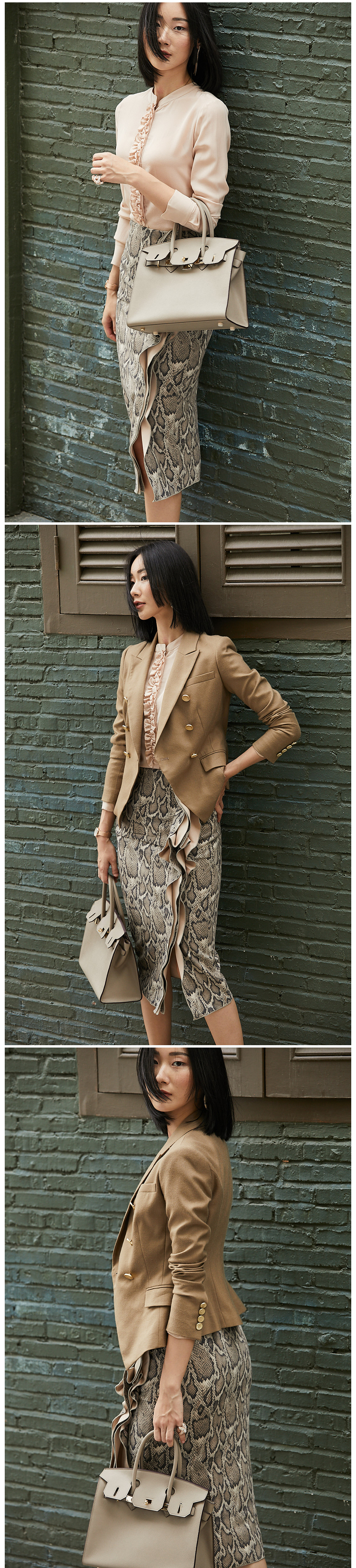 我们的产品:全网最具“质价比”的精英女装,只为有场合的“三高”女性打造,高知,高姿,高资。
