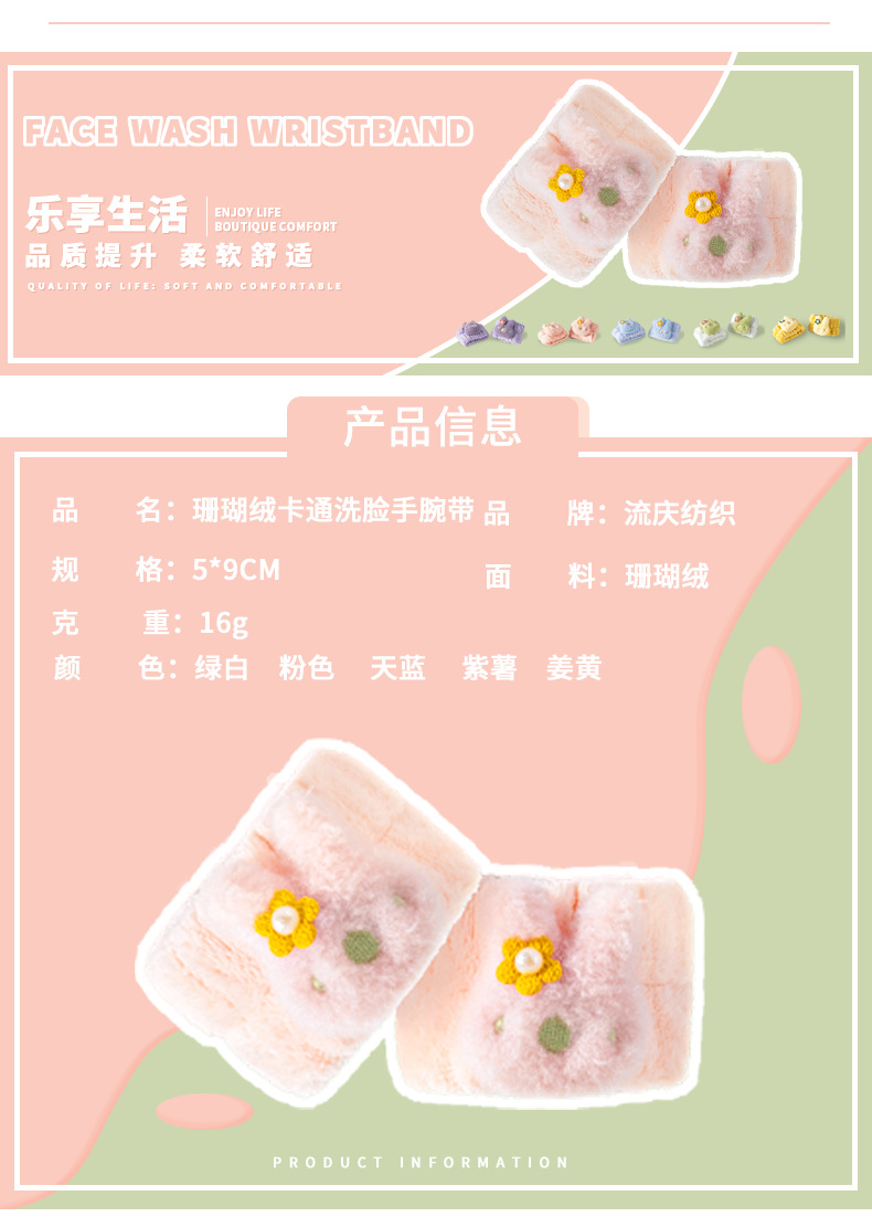 「一对装!数款配色」毛绒手腕带洗脸女卡通玩偶手腕法兰绒擦汗腕带居家布艺